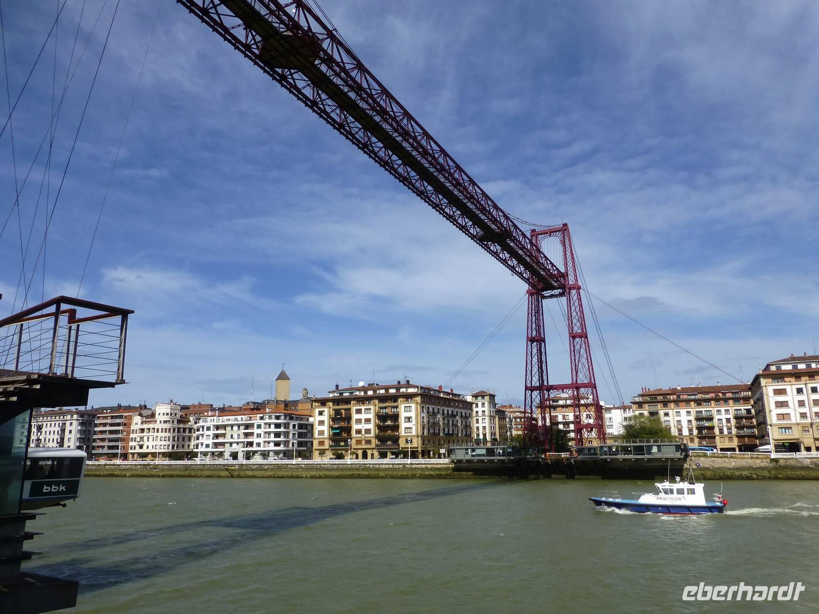 In unserer Freizeit hatten wir die Möglichkeit in einer der zahlreichen Bars die pintxos (Happen) und Tapas zu probieren. San Sebastian ist die nordspanische Hauptstadt für diese Spezialitäten. Die Auswahl war überwältigend. Nach dieser Stärkung verließen wir San Sebastian mit einem weinenden Auge und fuhren nach Bilbao. Dort erwartete uns bereits Cristina zur Stadtführung. Das erste Highlight war die Hängebrücke Puente Colgante an der Mündung des Rio Nervion. Bei diesem Brückenunikum handelt es sich um die älteste Schwebebrücke der Welt. In der Gondel überquerten wir den Fluss. Diese Brücke von 1893 ist heute immer noch ein wichtiges Transportmittel für die Einwohner.