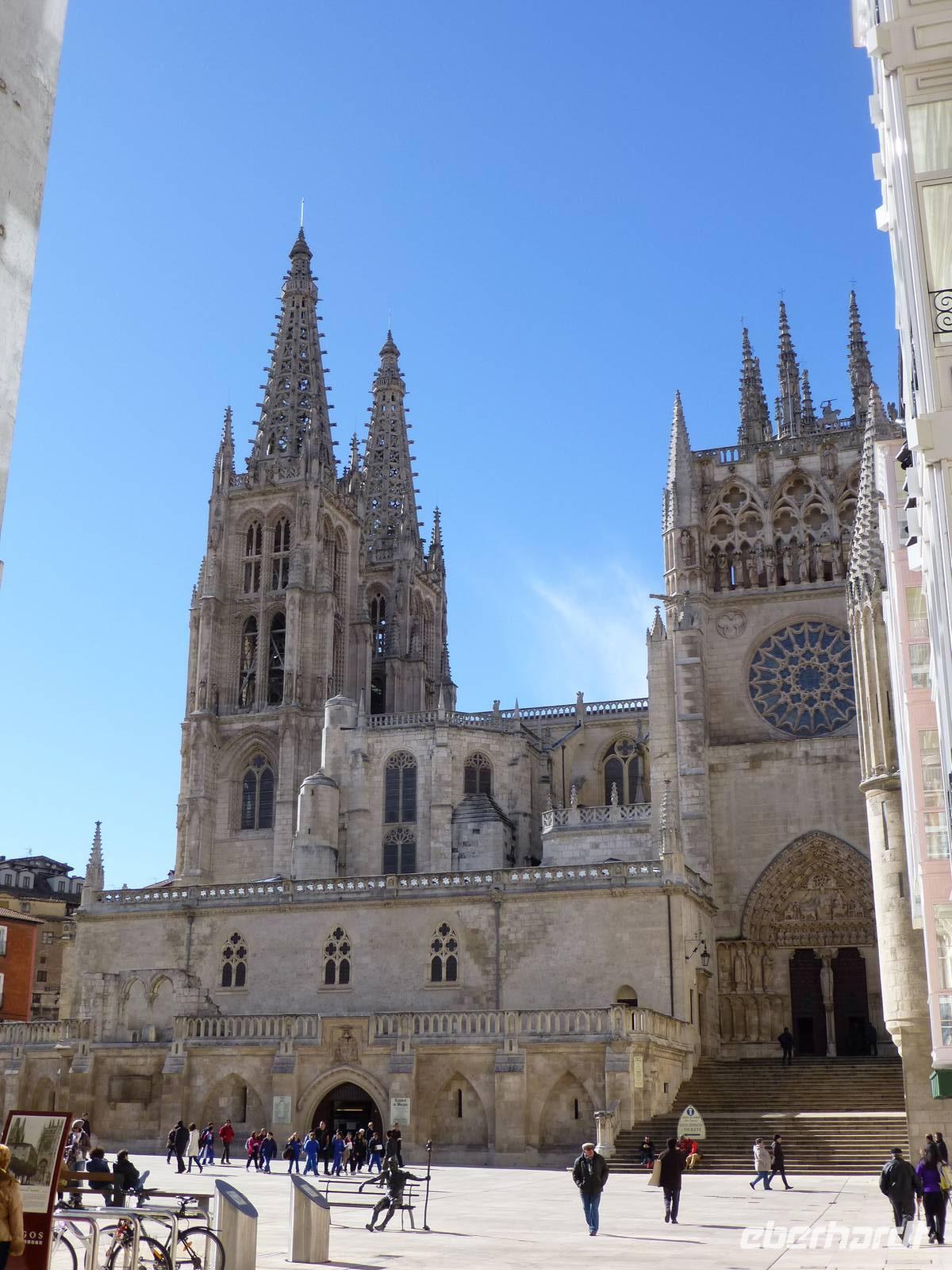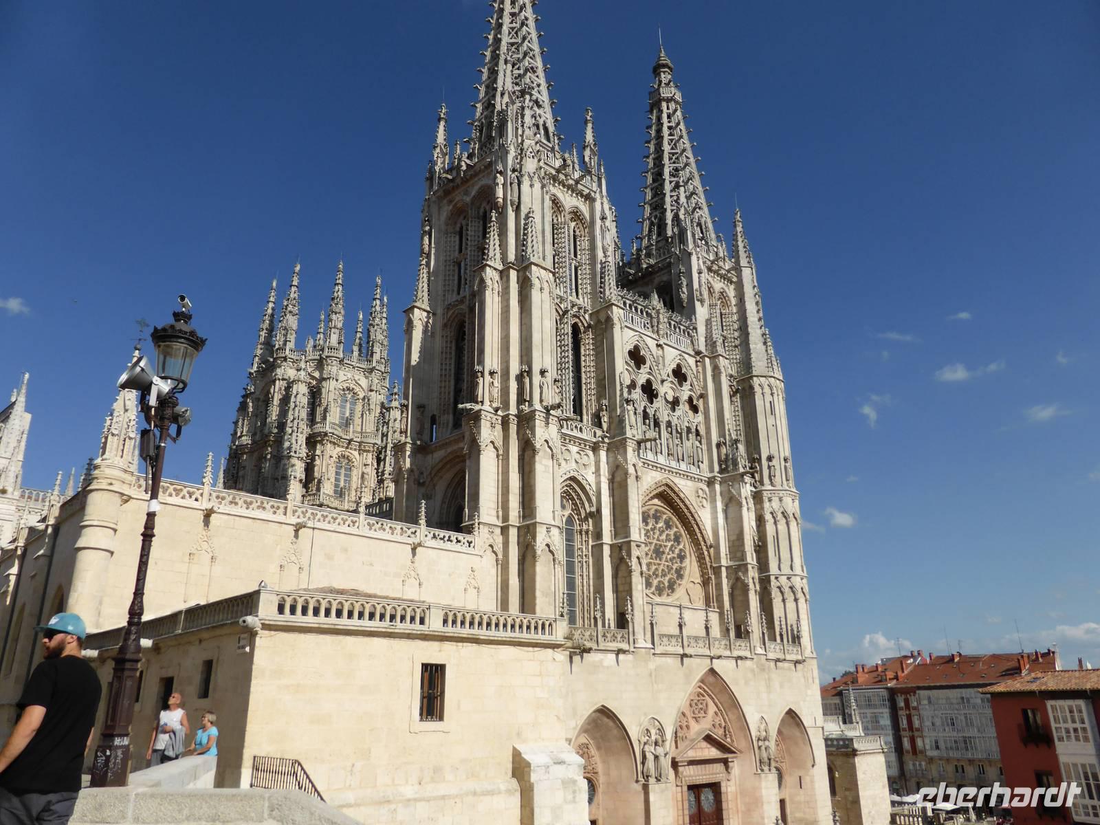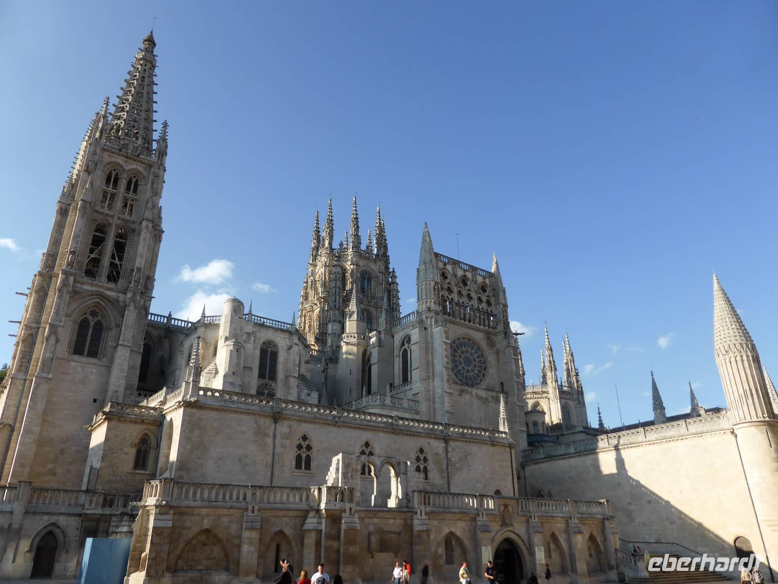 Der Höhepunkt der Stadtbesichtigung war natürlich die Kathedrale von Burgos, eine der eindrucksvollsten gotischen Kirchen. Wir bewunderten den reich vergoldeten Hochaltar in der Capilla Mayor, die „Papamoscas-Uhr" (Fliegenfänger), die Goldenen Treppe, die im reichsten platereskem Stil ausgestattete Condestable Kapelle sowie den Kreuzgang.