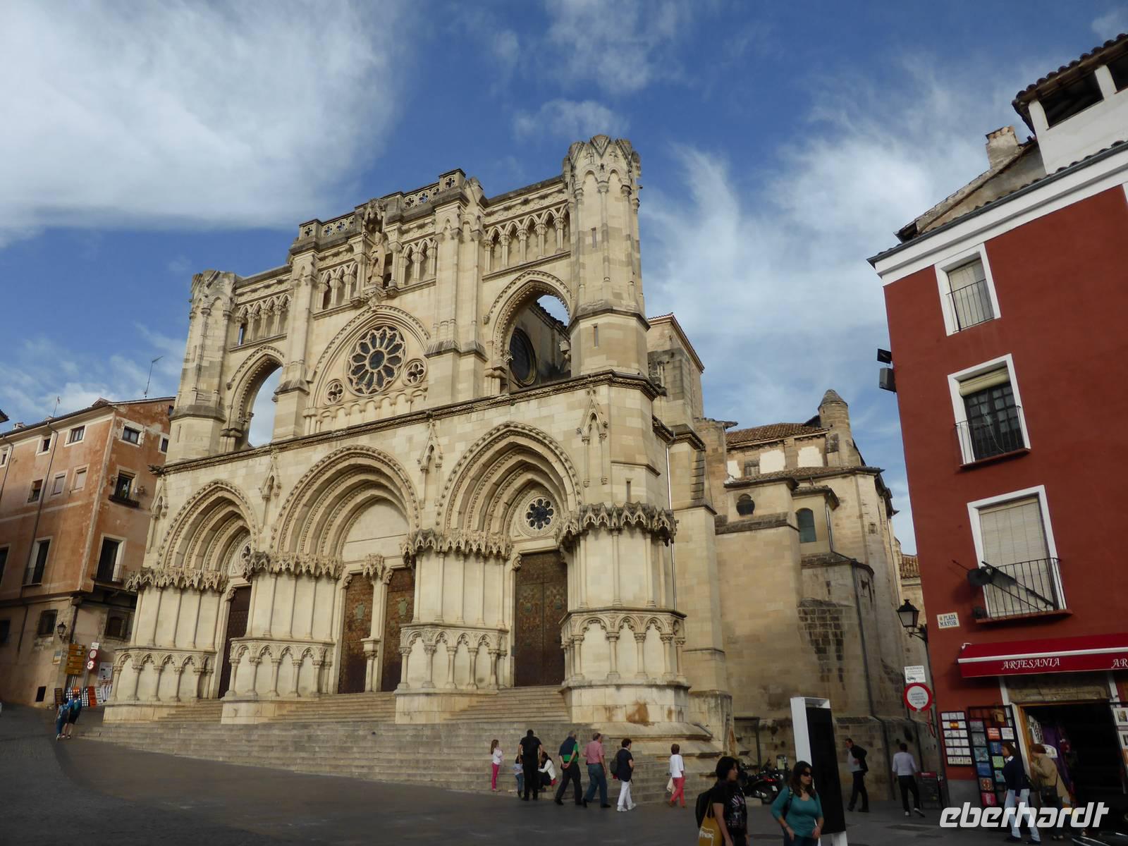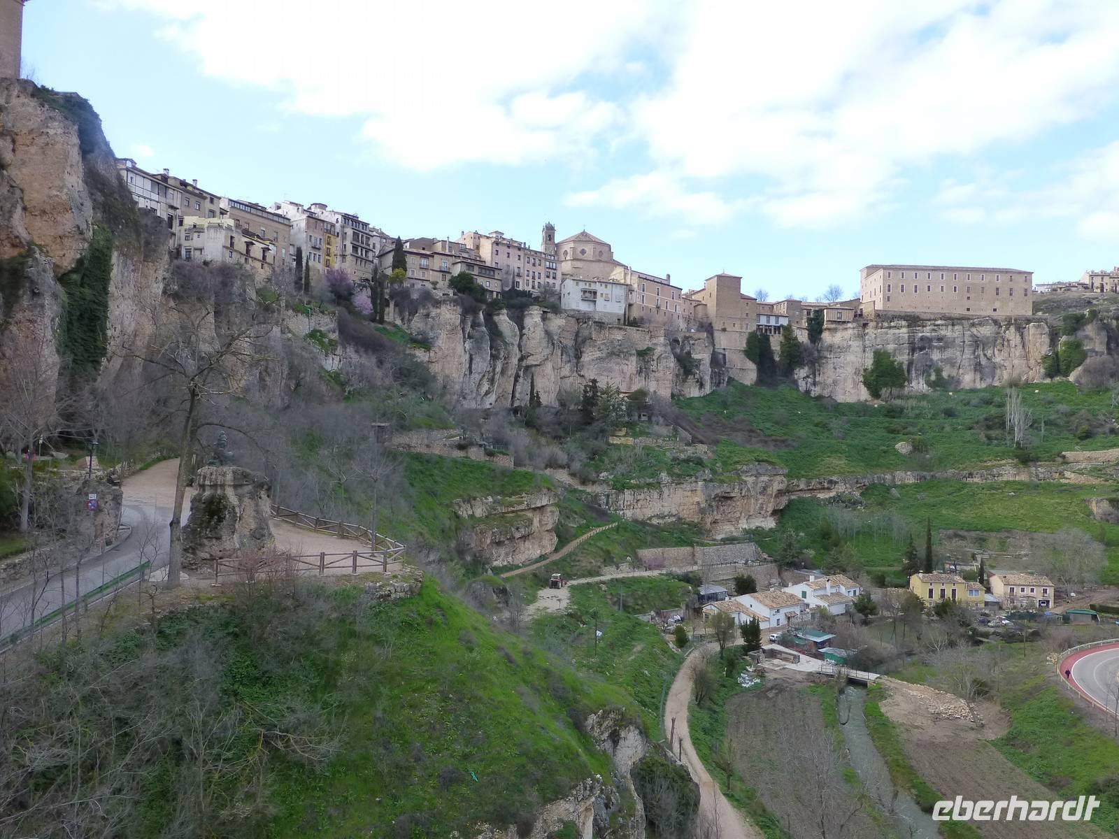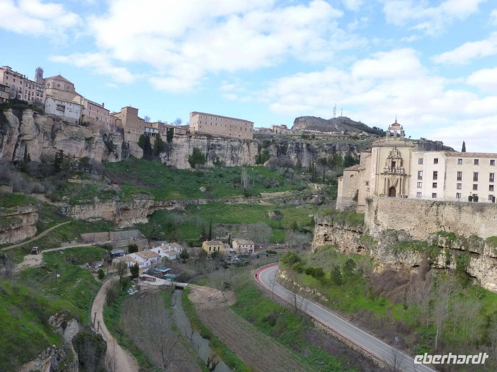Am Vormittag statteten wir dem Atocha Bahnhof noch einen Besuch ab. Im alten Bahnhofsgebäude wurde ein tropischer Palmengarten mit Schildkrötenteich angelegt. Die bekannten Baby Sklupturen von Antonio Lopez (Tag und Nacht) sowie das Denkmal für die Anschläge vom 11 März 2004 waren ebenfalls noch Ziele unseres Aufenthaltes. Im Anschluss fuhren wir weiter nach Cuenca in 1000 m Meereshöhe. Cuenca liegt überaus schön auf den steilen Felsen der Serrania de Cuenca über den tiefen Tälern des Rio Jucar und des Rio Huecar. Sie ist eine der malerischsten spanischen Städte und berühmt für die „hängenden Häuser" („Casas Colgadas"). Nach dem Zimmerbezug in unserem Hotel Alfonso VIII. trafen wir uns mit unserem Stadtführer Pablo. Er brachte uns seine Heimatstadt auf sehr unkomplizierte Art und Weise näher. Wir fuhren durch die wunderschöne Huecarschlucht und spazierten anschließend durch die Altstadt. Er zeigte uns auch die wunderschöne Kirche. Am Torre Mangana, dem Wachturm der einstigen arabischen Festung beendeten wir unsere Führung. Pablo überraschte uns mit einigen Spezialitäten (Aluja - Mandelkuchen) von Cuenca in seinem Geschäft. Ein kurzer Spaziergang brachte uns zurück an unser Hotel. Während des Abendessens konnten wir von der Terrasse des Hotels einen schönen Blick auf das beleuchtete Cuenca genießen.