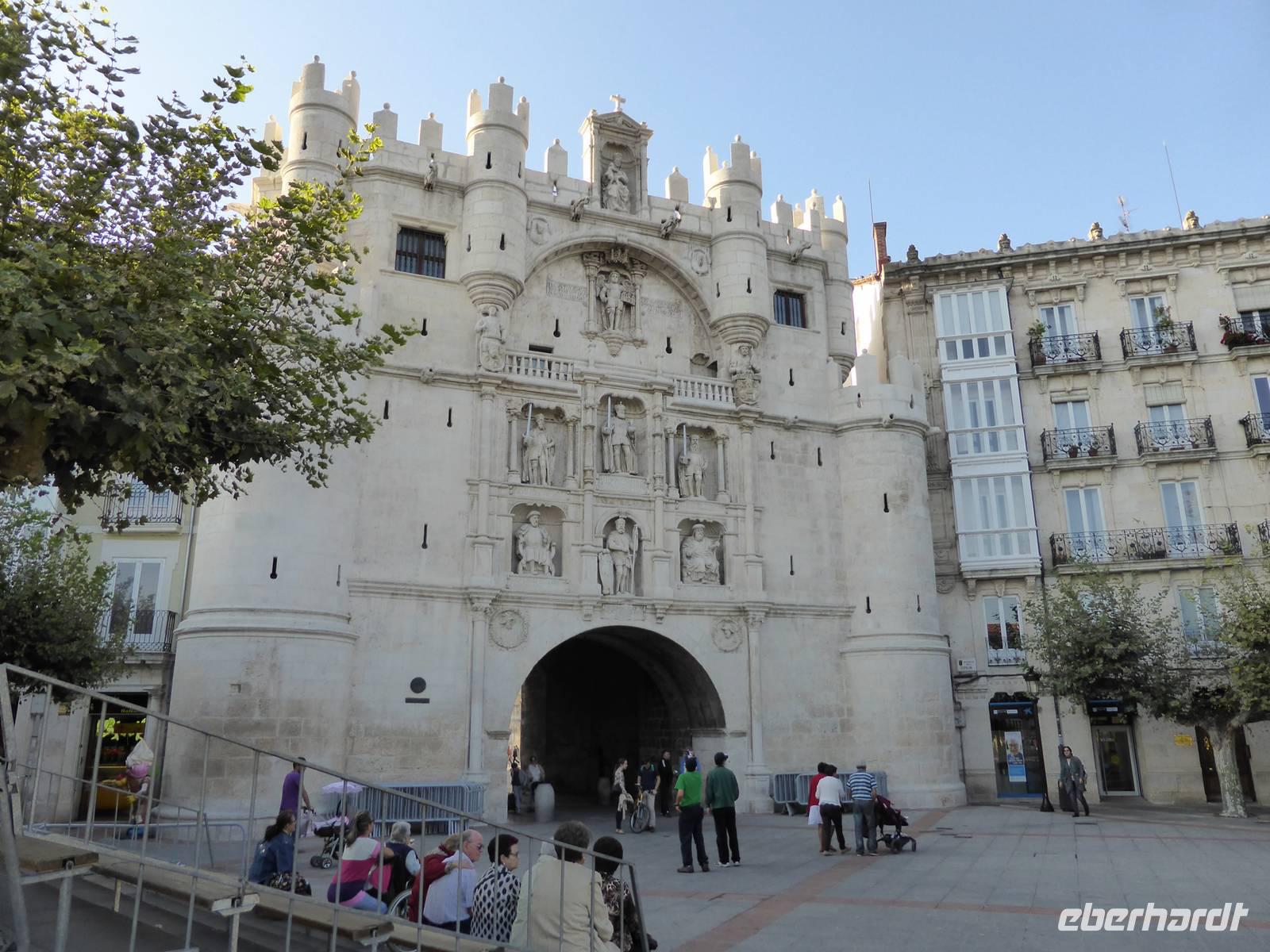 Anschließend setzten wir unsere Reise nach Burgos inmitten der nordkastillischen Hochebene fort. Nach dem Zimmerbezug in unserem Hotel Corona di Castilla stand die Stadtbesichtigung auf dem Programm. Den Beginn der Promenade Paseo del Espolon markierte der aus dem 14. Jahrhundert stammende Arco de Santa Maria. Hier wurden wir bereits von unserer Stadtführerin Maria erwartet. Bevor es in die berühmte Kathedrale ging, unternahmen wir einen Rundgang durch die Altstadt und spazierten entlang des Jakobsweges. Entlang der Flaniermeile bummelten wir zum Casa del Cordón, in dem Christoph Kolumbus nach seiner Rückkehr von seiner zweiten Reise in die Neue Welt empfangen wurde. Anschließend erreichten wir den arkadengesäumten Plaza Mayor, den Mittelpunkt der Stadt.