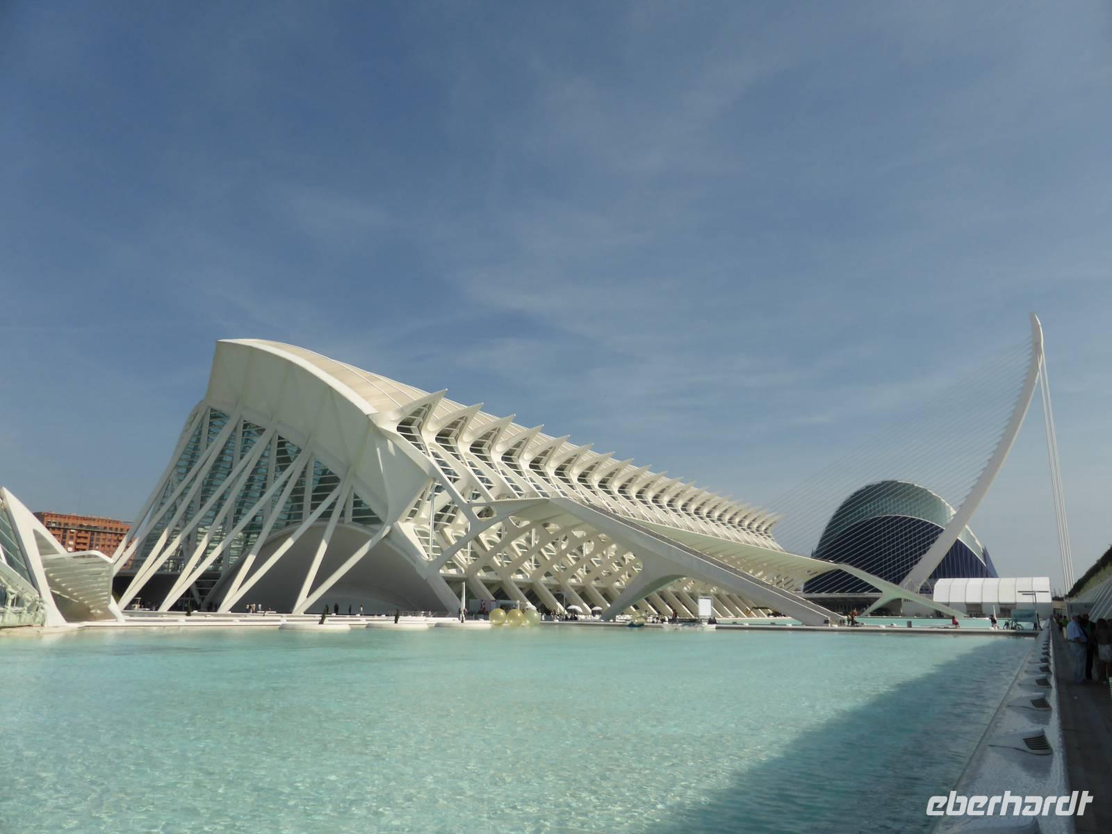 Vor unserer Stadtführung erkundeten wir die drittgrößte Stadt Spanien auf eigene Faust. In der Markthalle oder auf dem Plaza de Virgen stärkten wir uns zur Mittagspause bevor unsere örtliche Stadtführerin Angela uns dann alle Sehenswürdigkeiten der Stadt zeigte. Wir begannen mit der Rundfahrt und legten unseren ersten Stopp im neuen Valencia von Santiago Calatrava, einem Sohn der Stadt, ein. Der Fluß Turia zerstörte 1957 bei einer Überschwemmung einen Teil der Stadt. Auf dieser Fläche wurde die Stadt der Wissenschaften und Künste neu konzipiert. Es entstanden ein neues Opernhaus, ein Planetarium mit Kino, das Wissenschaftsmuseum sowie ein Aquarium. Mit diesem Projekt wurde eine Verbindung zwischen dem Hafen und der Altstadt geschaffen.