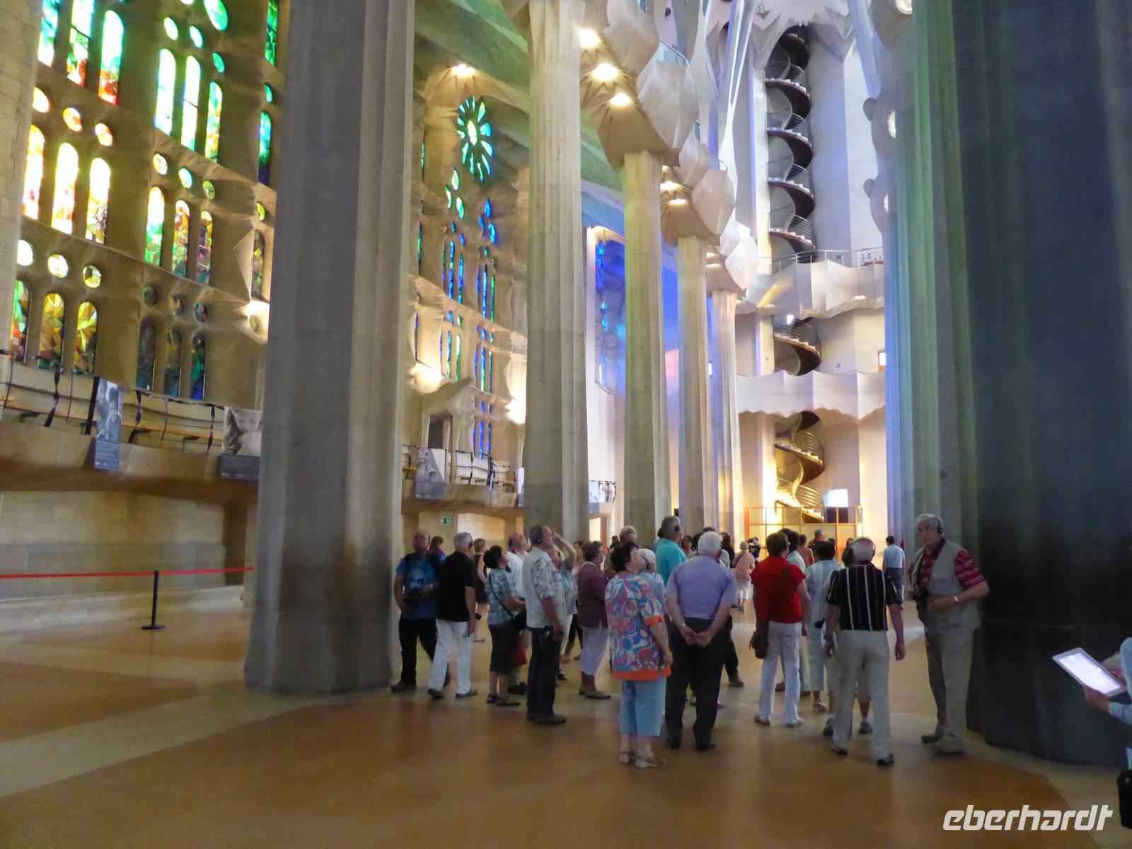 Am Spanischen Platz nahmen wir unseren Reiseleiter Ingo auf. Die Stadtrundfahrt führte uns zunächst auf den Berg Montjuic mit den Olympischen Stätten, dem Sendemast von S. Calatrava sowie dem „Spanischen Dorf". Vom 213 m hohen „Berg der Juden" genossen wir einen hervorragenden Ausblick auf die Millionenstadt. Während der Stadtrundfahrt erzählte uns Ingo viel über die Metropole sowie die zahlreichen Sehenswürdigkeiten. Ein kleiner Spaziergang durch den Park Güell war einer der Höhepunkte der Stadtbesichtigung ab. Das fehlgeschlagene Projekt einer Gartenstadt wurde zu einem symbolträchtigen öffentlichen Park. Gaudi orientierte sich bei der Planung des Parks am Jardin de la Fontaine von Mimes und auch an den griechischen und ägyptischen Tempeln. Der lebendig gestaltete Eingang mit den exotischen Formen trennt die graue und weltliche Stadt von der Wohnsiedlung, die Gaudi als idealen Lebensraum erachtete. Durch die Stadt führte uns die Rundfahrt zum Templo de la Sagrada Familia (Kirche der Heiligen Familie), ein unvollendeter monumentaler Kirchenbau im neukatalanischen Stil. Die „Kirche der Armen" gilt als Hauptwerk des katalanischen Architekten Antoni Gaudi. Beeindruckt waren wir bereits von den zahlreichen Details in der Geburtsfassade auf die uns Ingo hinwies. Die Atmosphäre des Kircheninneren ließen wir auf uns wirken und kamen aus dem Staunen nicht heraus. Gaudi widmete 43 Jahre und damit fast sein ganzes Berufsleben diesem besonderen Projekt. Auf dem Weg zu unserem Hotel fuhren wir noch am Casa Battlo, einem weiteren Meisterwerk von Antoni Gaudi vorbei.Nachdem wir unsere Zimmer im Hotel Montblanc beim gotischen Viertel unweit der Rambla bezogen hatten, fuhren wir zum Abendessen in eine typische Tapasbar.