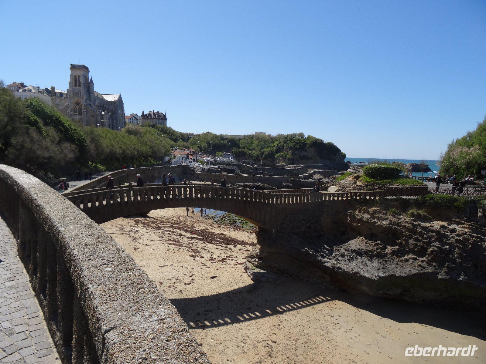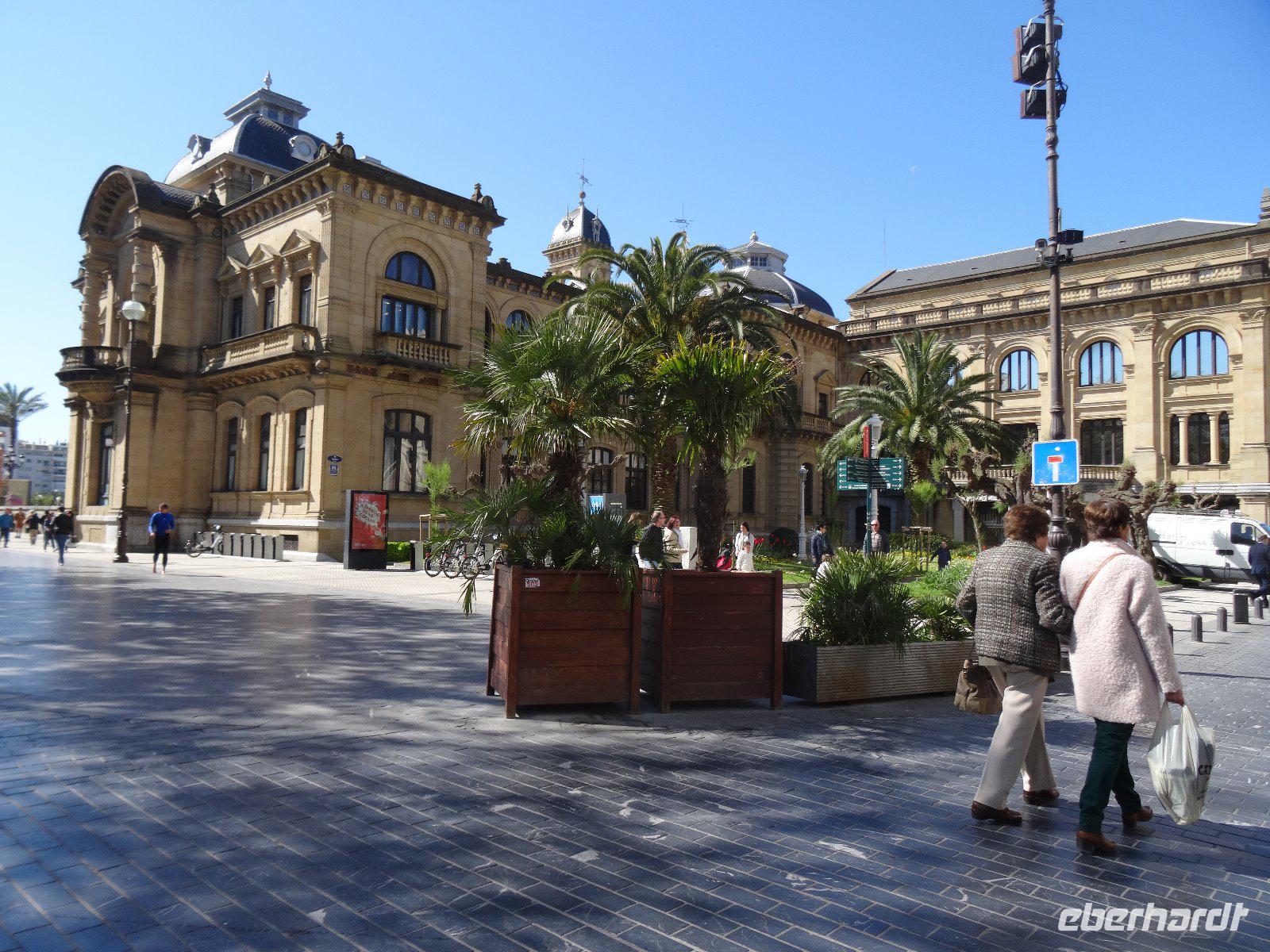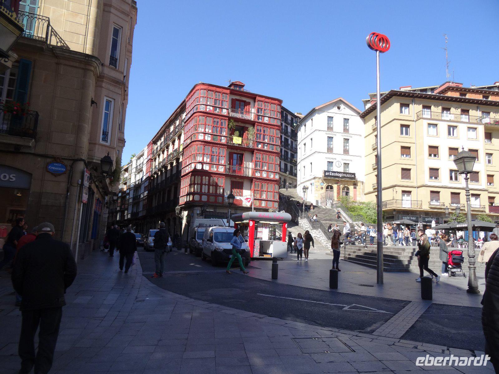 Nun wenden wir uns der Atlantikküste zu. Das erste Ziel heißt Biarritz, wo wir einen schönen Spaziergang durch den Ort unternehmen, einige lassen sich einen Kaffee gut schmecken oder essen eine Kleinigkeit. Die schmucken Gebäude lassen kaum mehr erkennen, dass der Ursprung des Ortes ein Walfängerdorf war. Mit vielen Eindrücken verlassen wir Frankreich und betrachten unser erstes Ziel in Spanien: Hondarribia. Die kleine Stadt nimmt uns gleich mit ihrem Charme gefangen, sie hat nur etwa 16.000 Einwohner, die in zwei Stadtteilen wohnen, der historischen Altstadt auf dem Berg und der neueren Stadt um den Hafen herum. Die Altstadt kann einiges aufweisen - an der Plaza de Armas steht der Königspalast Karls des Fünften, heute ein Hotel. Es gibt auch eine gotische Pfarrkirche Santa Maria Asunción und das barocke Rathaus und, recht inspirierend, ein historisches Wirtshaus, in dem wir uns noch einmal zu einem Txakoli versammeln. In einer der größten Städte des Baskenlandes, San Sebastian oder baskisch Donostia, liegt unser heutiges Tagesziel. Die Basken sind nicht nur wegen ihrer Mützen allen ein Begriff, die meisten verbinden damit den schrecklichen Terror, der von der Untergrundorgansation ETA ausging. Es bedurfte großer Anstregungen von beiden Seiten, um dem bewaffneten Kampf ein Ende zu bereiten. So können wir in Ruhe durch das Baskenland fahren, die zweisprachigen Straßenschilder studieren und daüber spekulieren, wo dieses Volk wohl seinen Ursprung hat.
