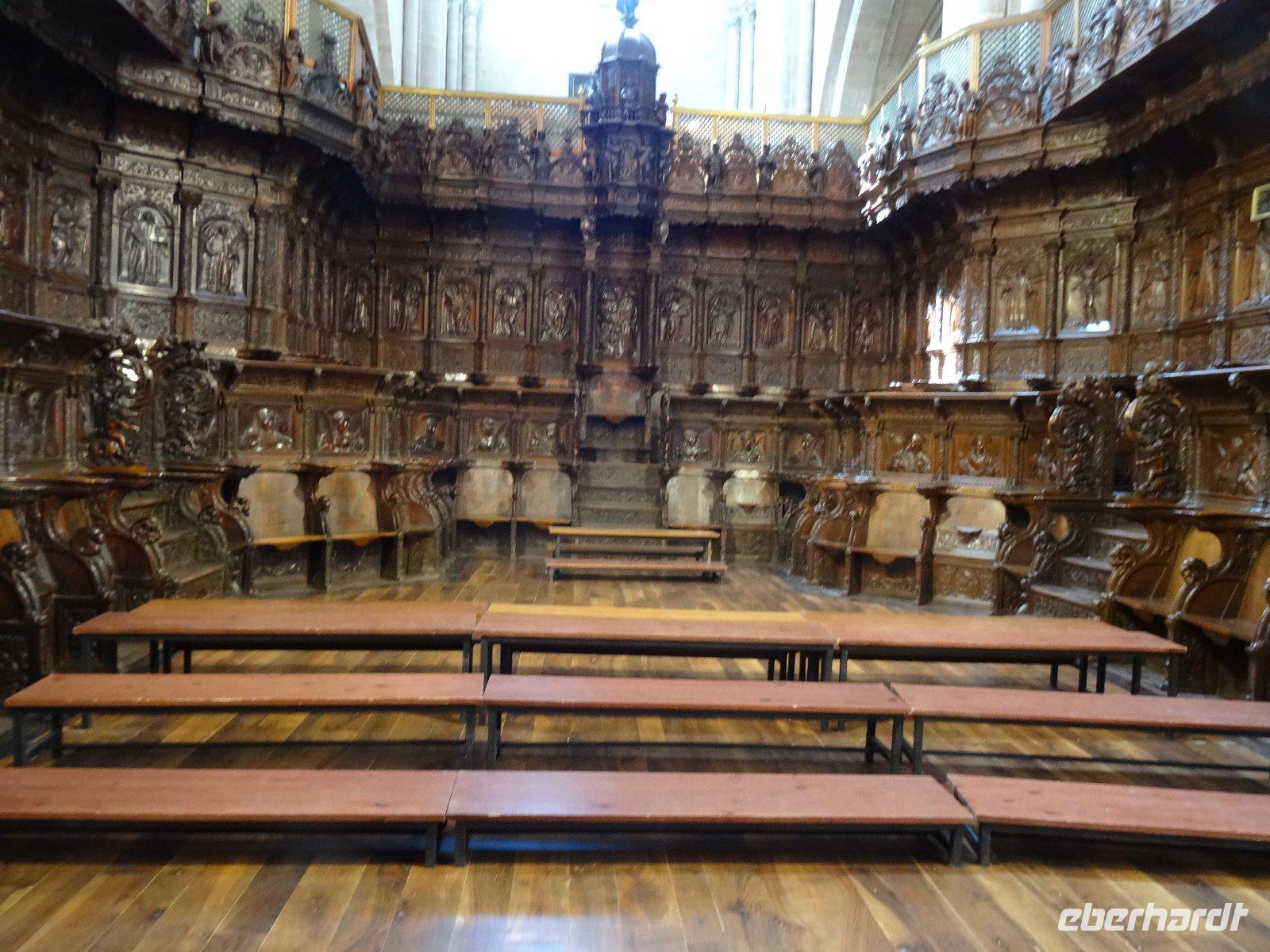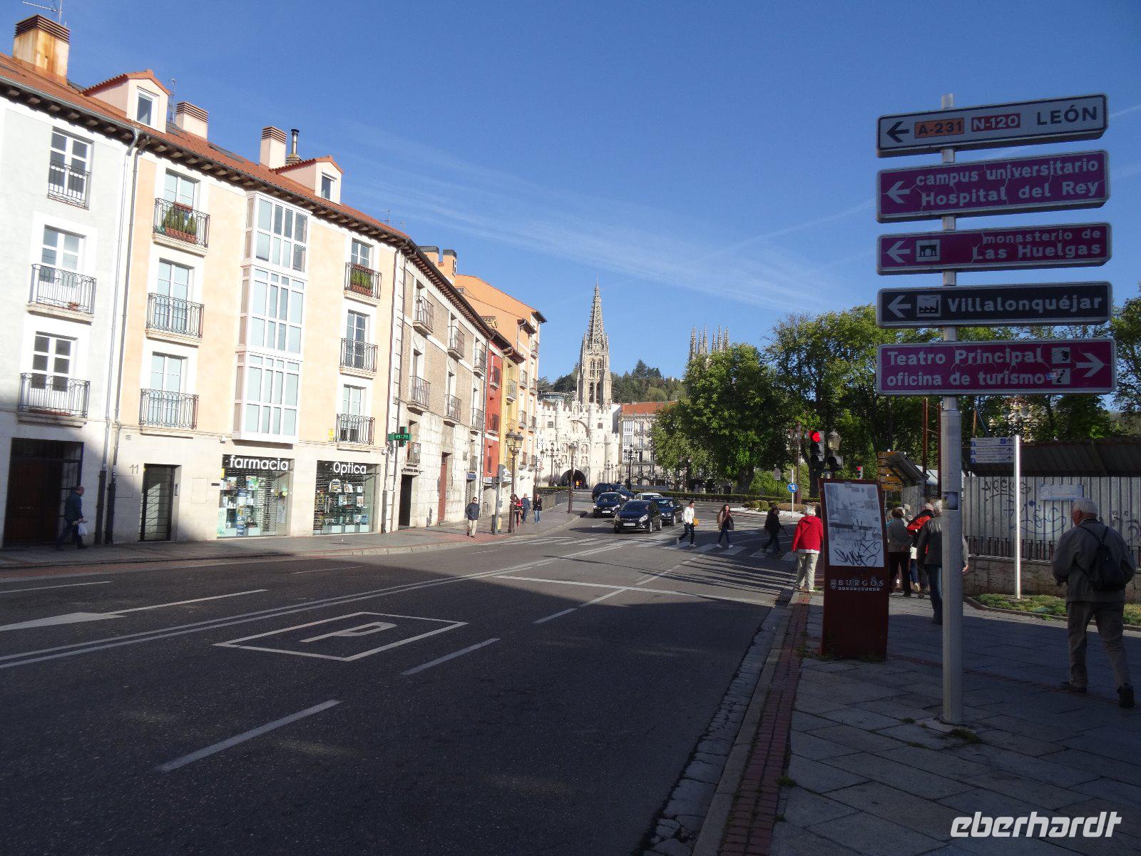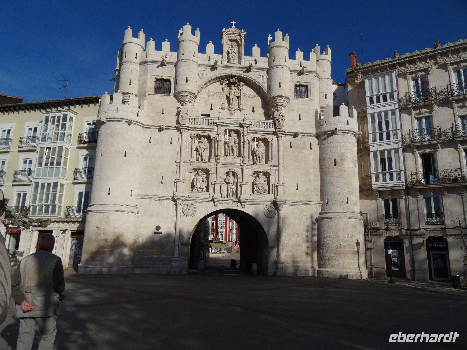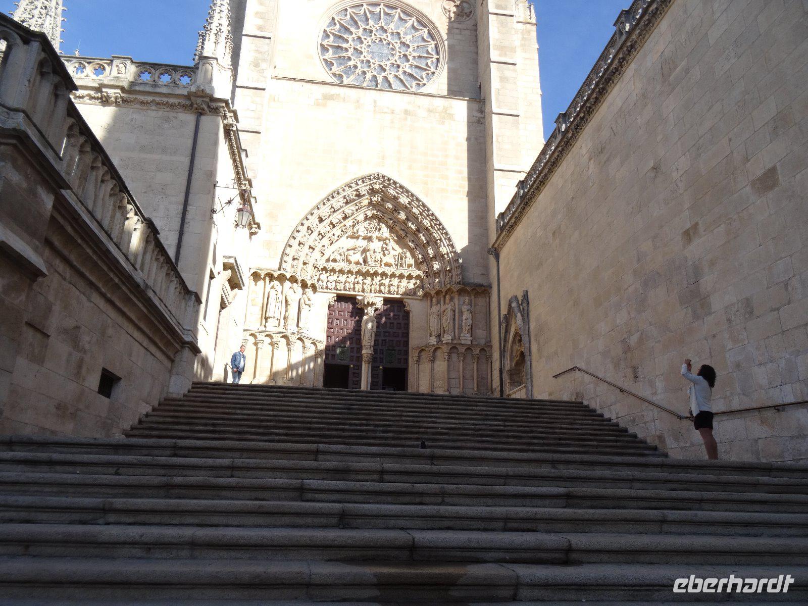 22.04.2017: Gut ausgeruht lernen wir heute unter der Leitung unserer Führerin Loreto die Stadt Burgos näher kennen und besuchen die eindrucksvolle Kathedrale Santa Maria.In der Kathedrale steht die lustige Figur des Papamosca, der mit jedem Glockenschlag der Uhr den Mund aufreißt. Beeindruckend sind die Grabfiguren des obersten Feldherren Kastiliens, Condestable Pedro Fernandez de Velasco und seiner Ehefrau. Auch das Denkmal für El Cid, der hier in der Nähe als Rodrigo Diaz 1043 das Licht der Welt erblickte, würdigen wir entsprechend.