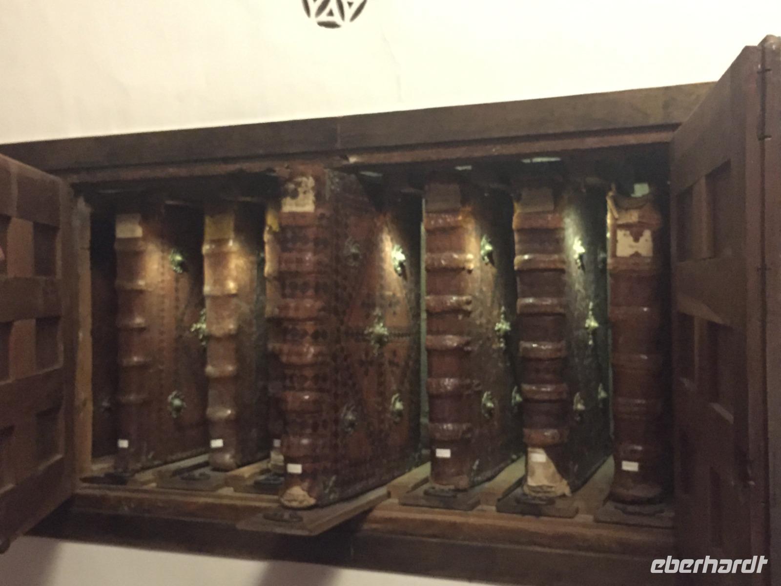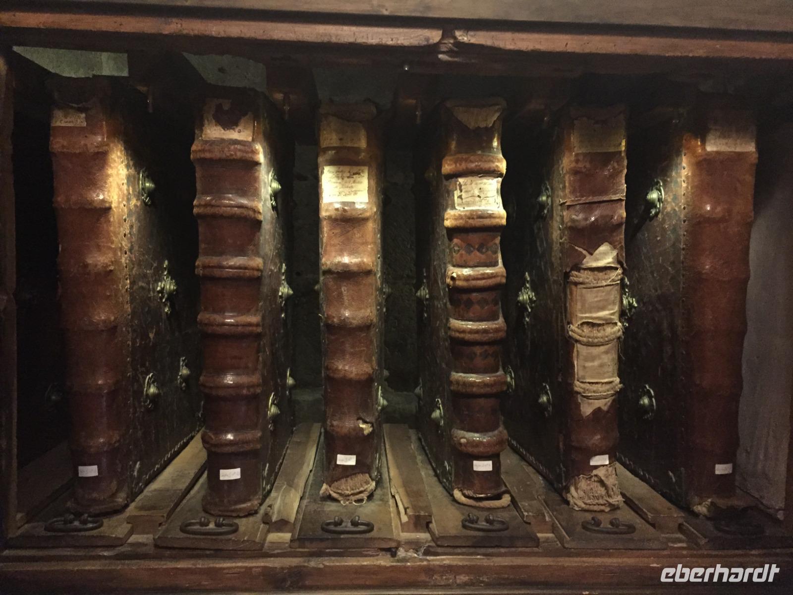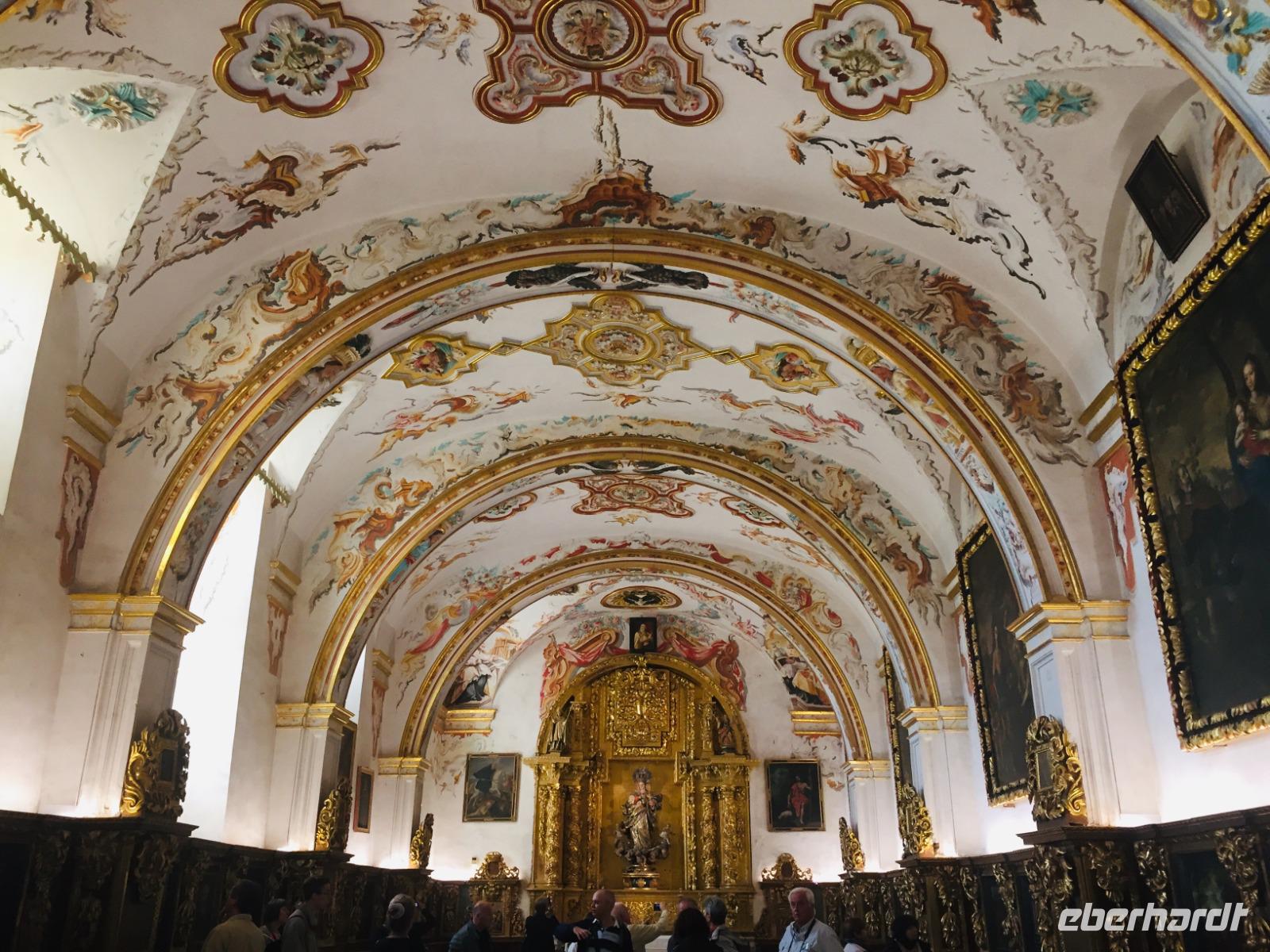 So ähnlich die Namen und so völlig unterschiedlich die beiden Klöster, die beim kleinen Ort San Millán de Cogolla angesiedelt sind. Alles begann bereits im 5. Jh. mit einem Schäfer, Einsiedler und später Abt, der damals über 100 Jahre alt wurde und in seinem Leben viele Wunder vollbrachte. Seither pilgern Gläubige zu dem Monasterio, Kloster Yuso ist zum Weltkulturerbe erhoben, da dort die ersten Aufzeichnungen in spanischer Sprache entdeckt wurden. Beide Klöster waren auf ihre unterschiedliche Art sehr interessant.