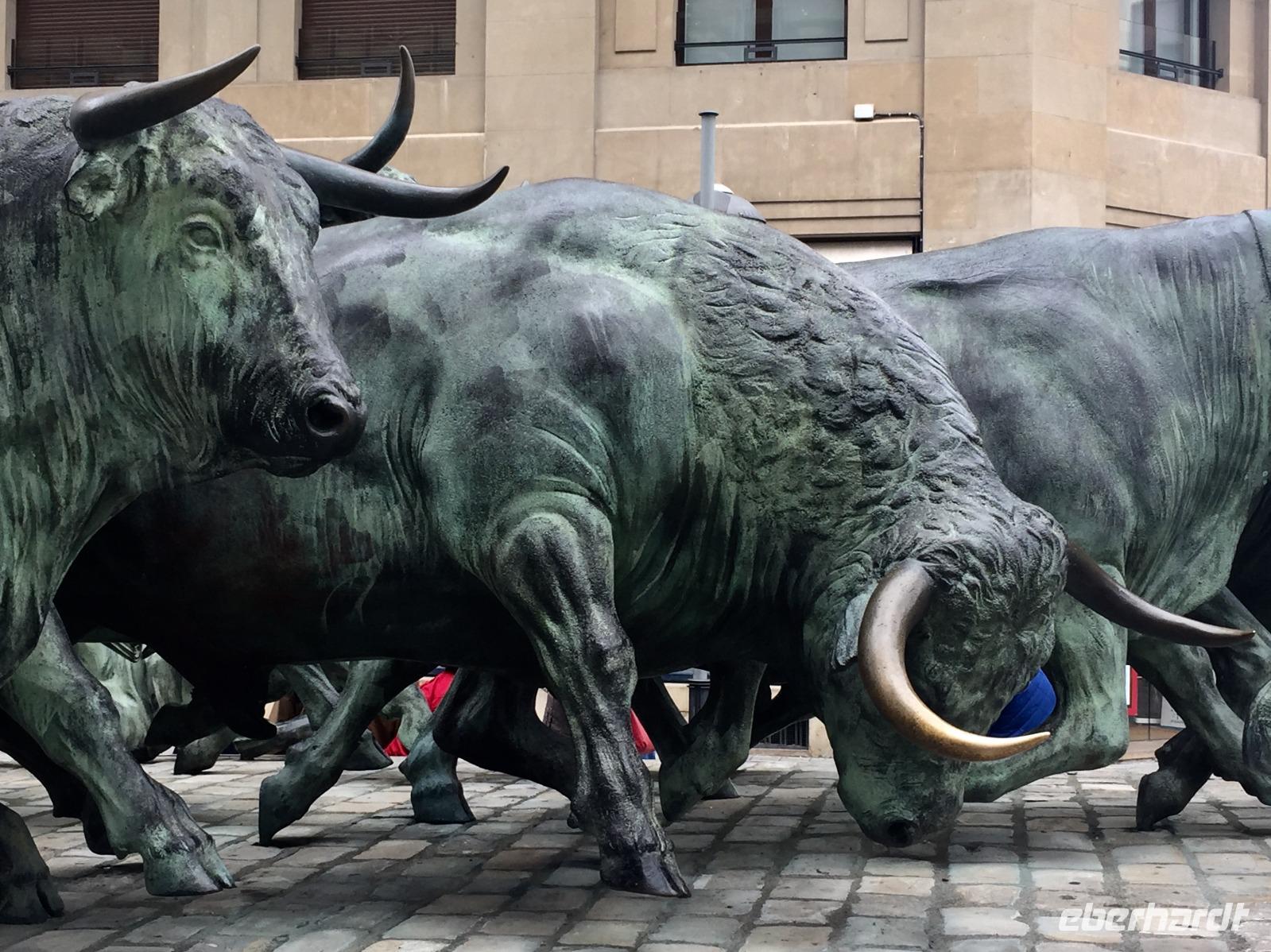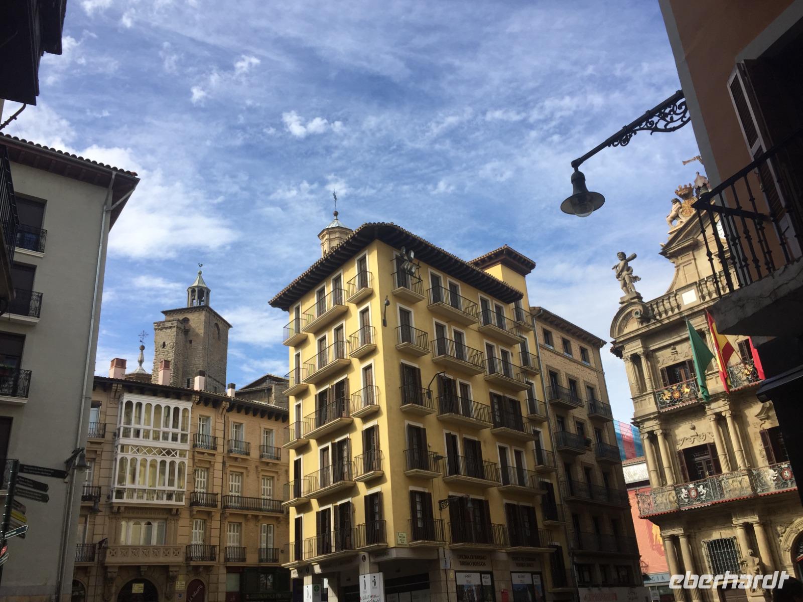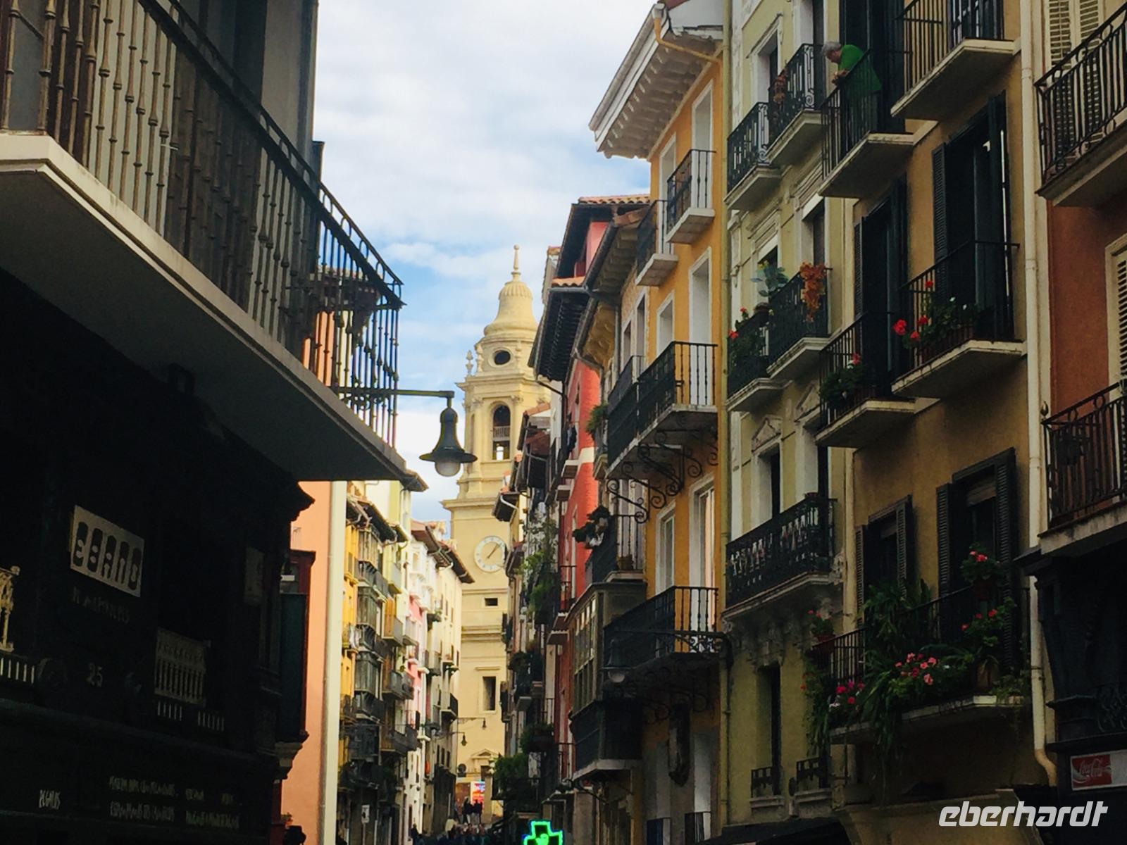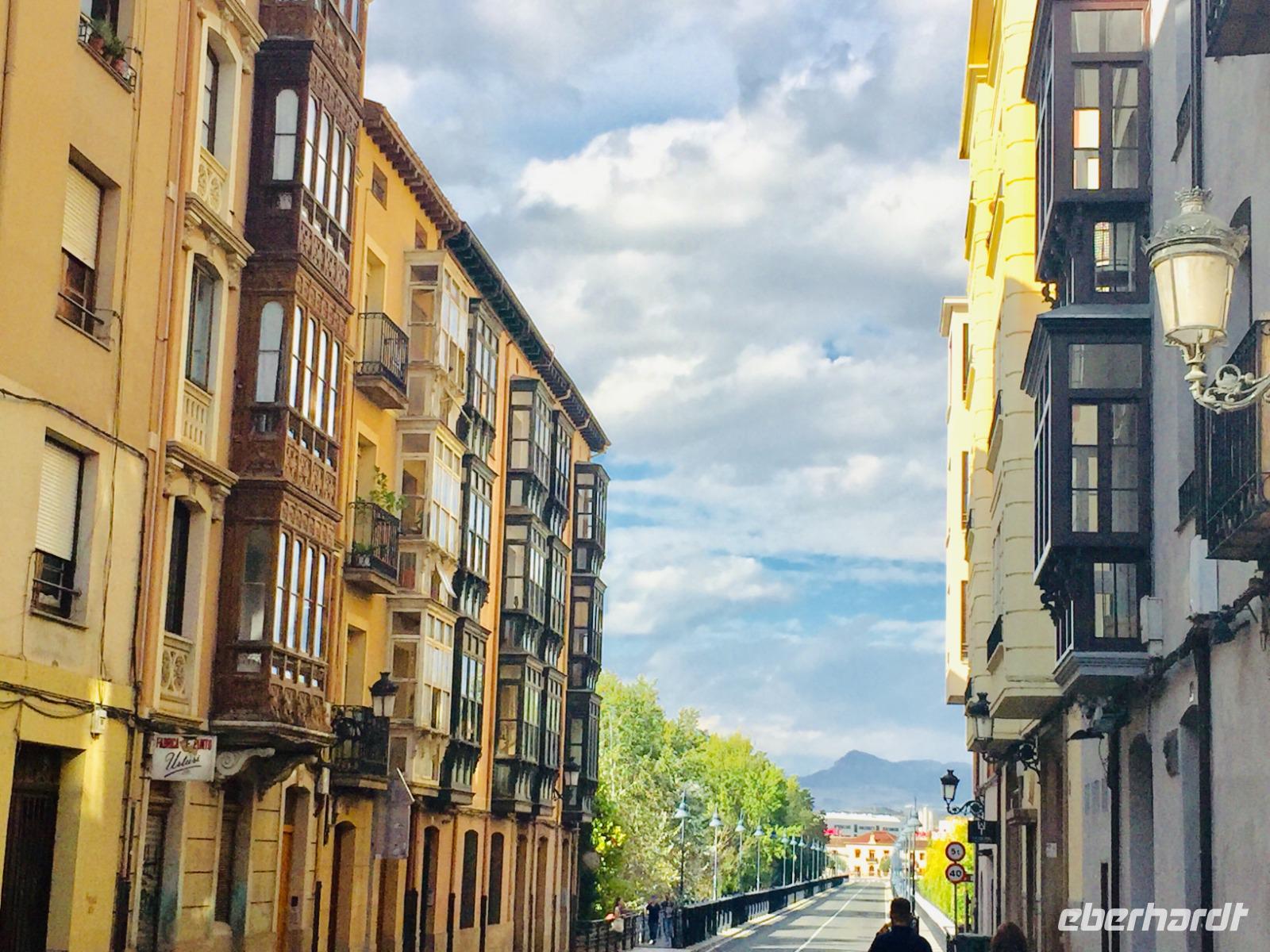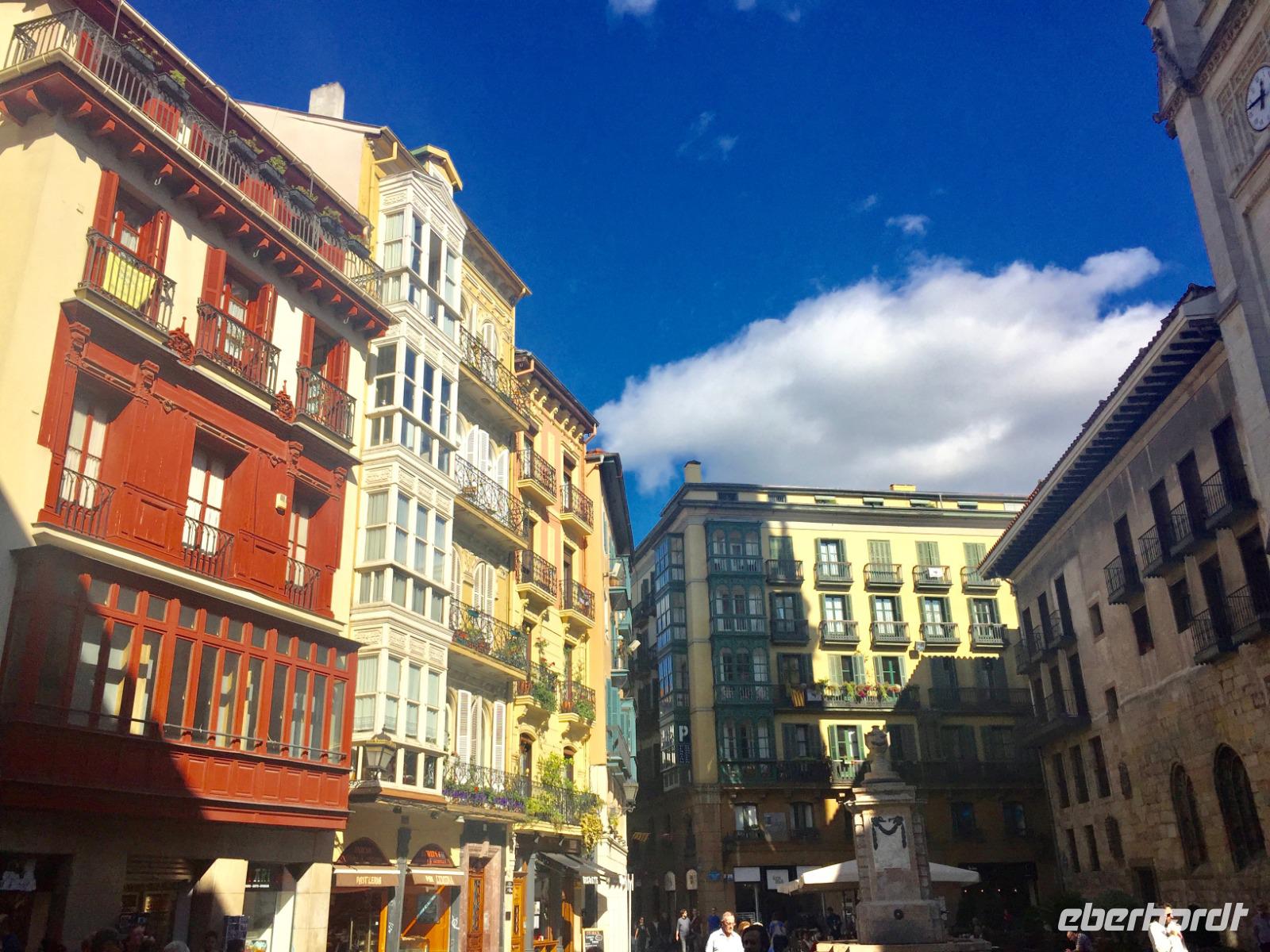 Wir nahmen Abschied von La Rioja und machten uns auf den Weg in die Region Navarra und die Hauptstadt Pamplona. Wir folgten dem Mythos Stierkampf und seinem Weg während des jährlichen Festes San Fermin, wenn wilde Stiere durch die Gassen der Stadt getrieben werden und junge Männer sich wagemutig darunter mischen. Dadurch wurde Pamplona weltweit bekannt. Doch zweifelsohne hat die Stadt viel mehr zu bieten. Beim Spaziergang durch die Altstadt von Iruña - so der baskische Name - bewunderten wir das Gewirr der Gassen, die schönen Balkone, das barocke Rathaus, besuchten die Kathedrale und den Aussichtspunkt mit Blick auf das Portal de Francia, durch das die Pilger des Jakobsweges in die Stadt gelangen. Der Jakobsweg geht quer durch die Stadt. Und auch der amerikanische Schriftsteller Hemingway trug zur Bekanntheit Pamplonas bei. Im altehrwürdigen Café Iruña an der Plaza del Castillo war sein Lieblingsplatz. Sein Roman „Fiesta" bezieht sich auf die Fiesta de San Fermin. Zu schnell schon müssen wir weiter: Adiós Pamplona!