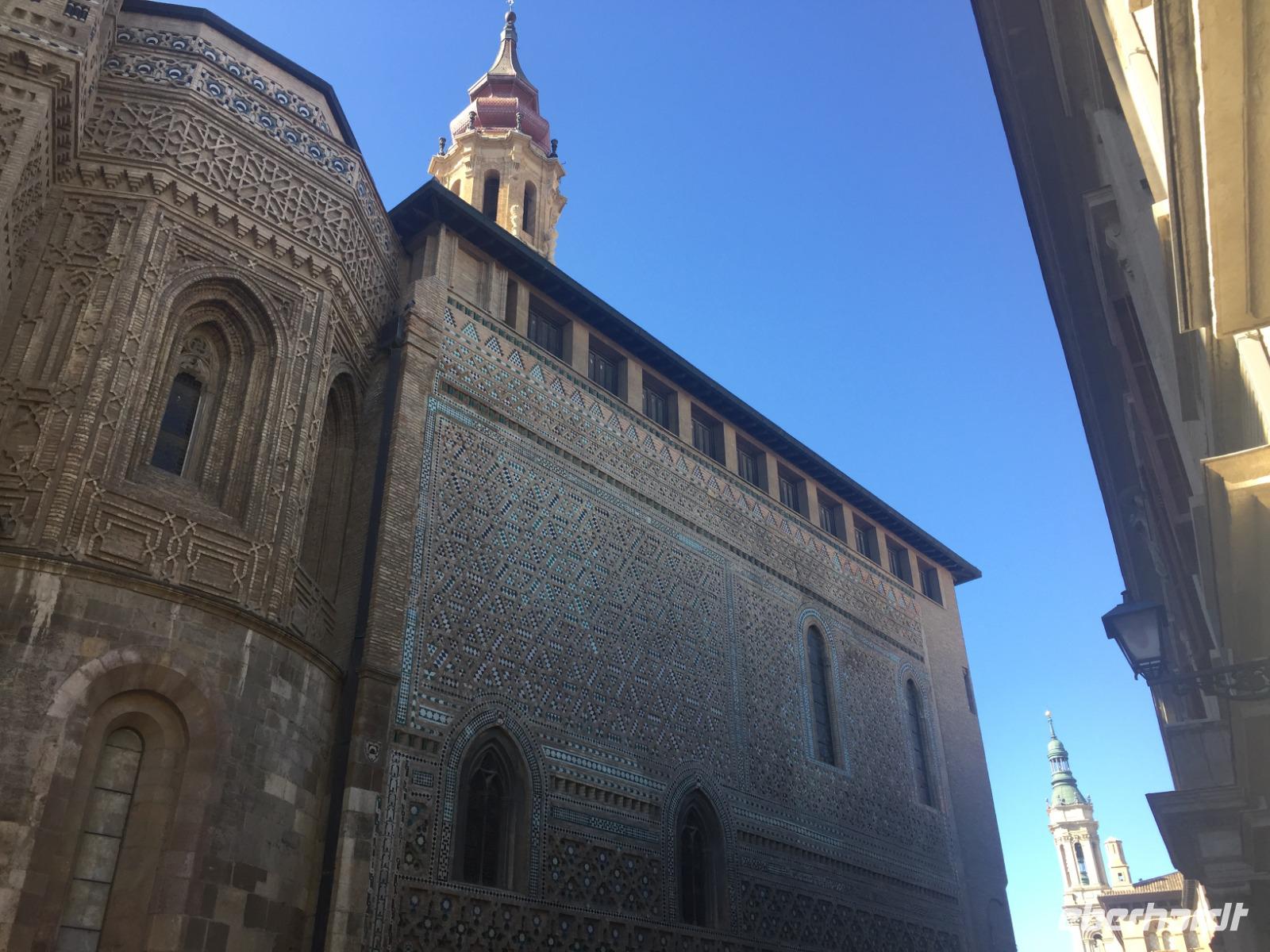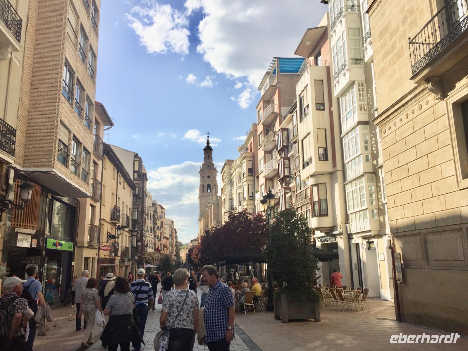 Ein kurzer Abstecher noch zur Kathedrale La Seo, die mit ihrem markanten, schlanken Turm auf quadratischem Fundament die maurische Vergangenheit reflektiert. Wunderschön auch die Fliesenarbeiten an der Seitenwand. Und natürlich der Maler Goya nicht zu vergessen, er ist in der Nähe der Stadt geboren und seine Statue vor der Kathedrale zu finden.