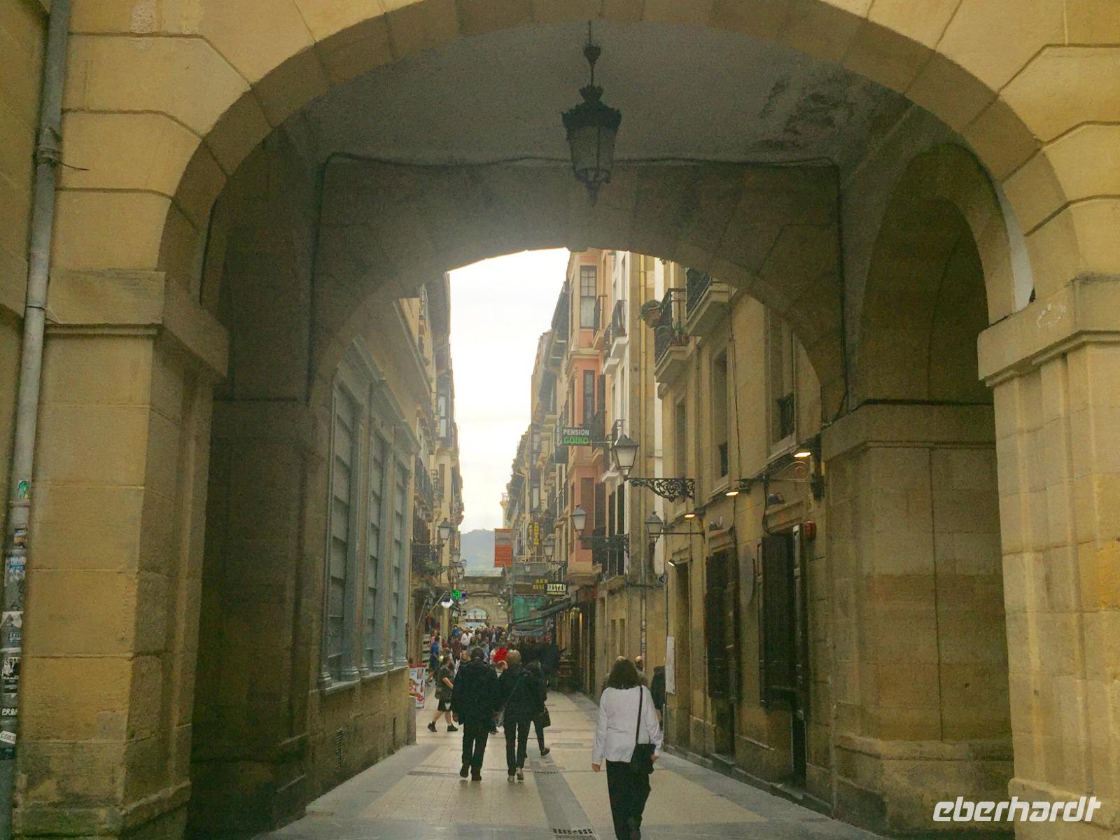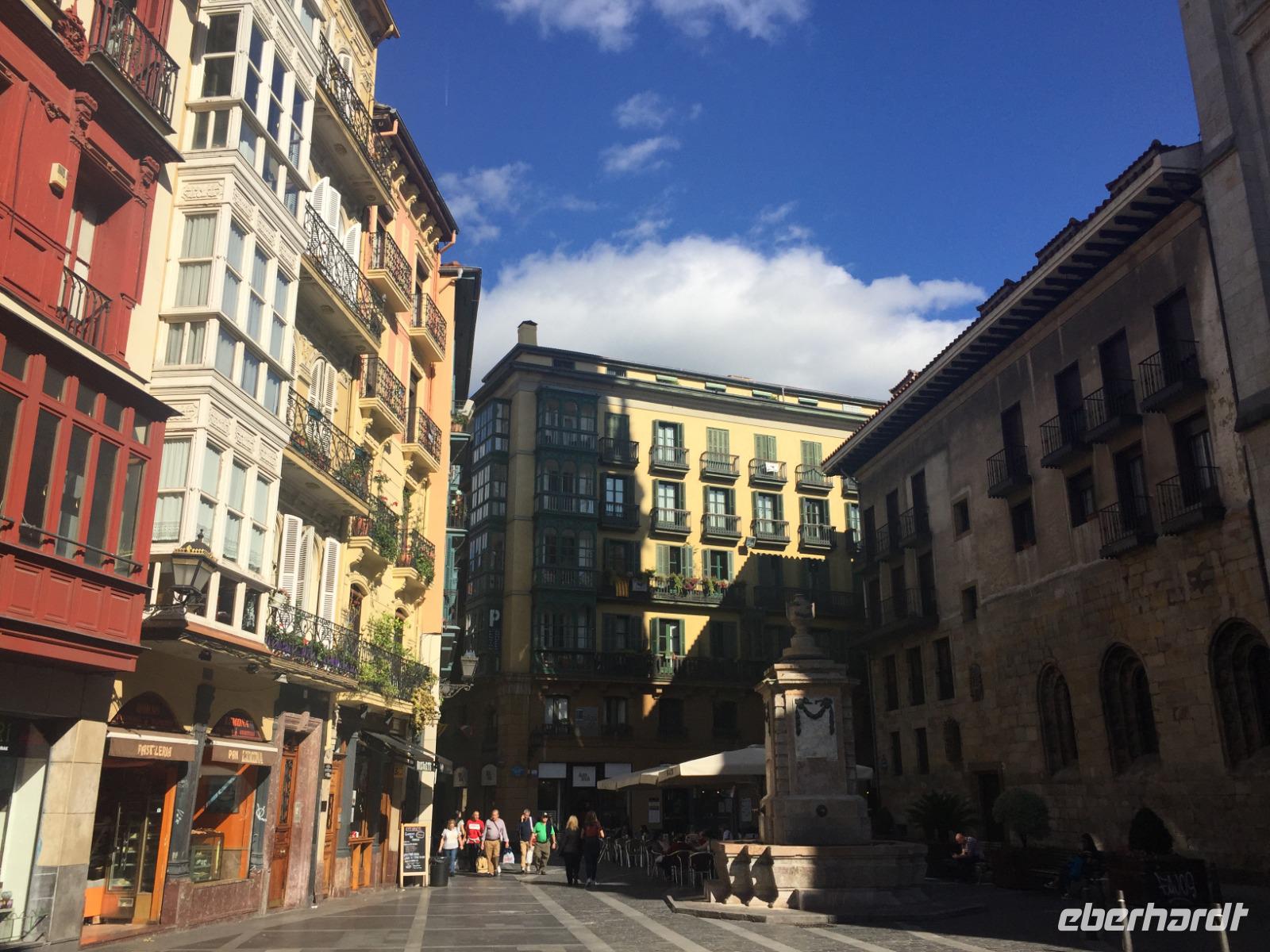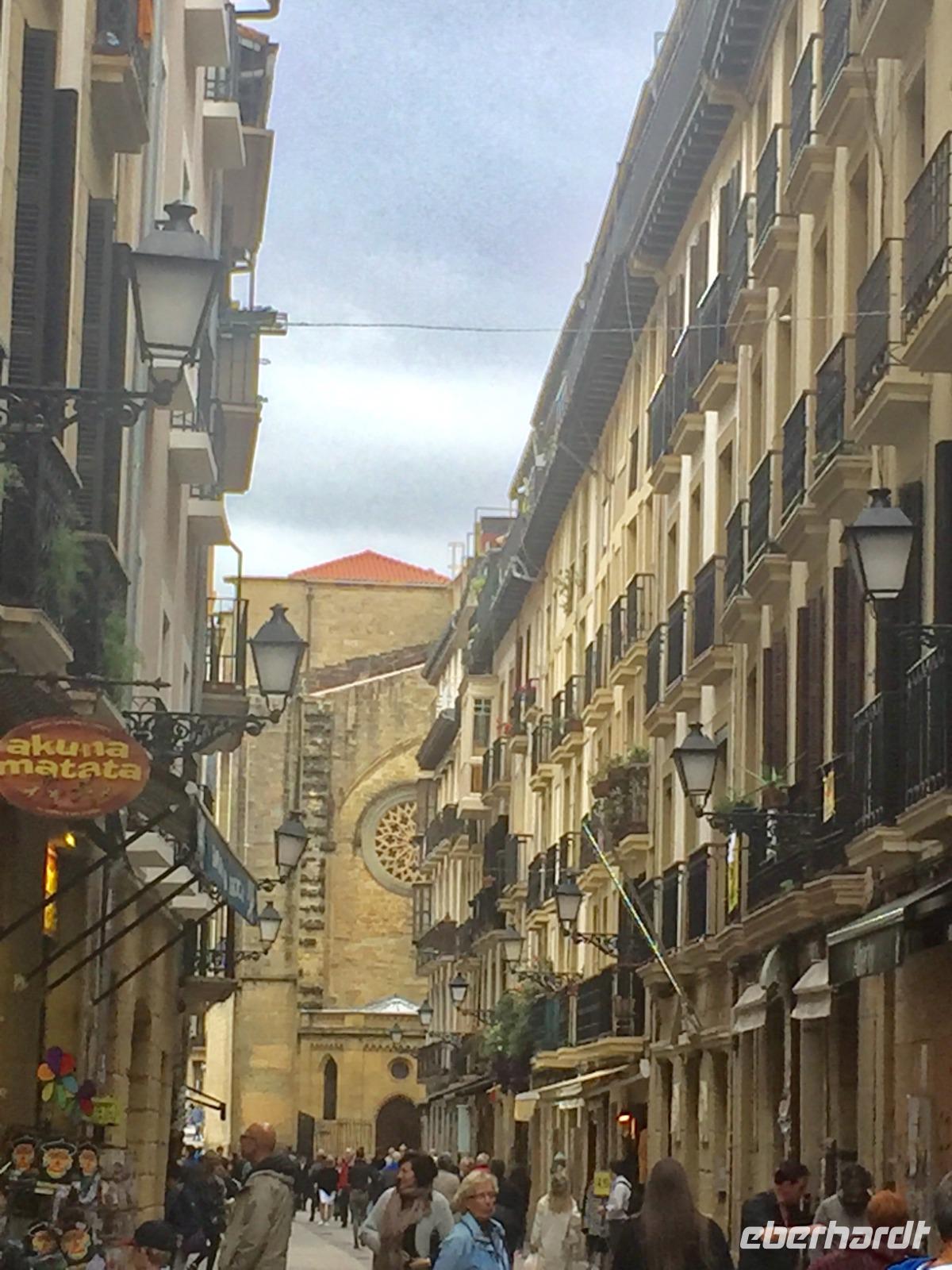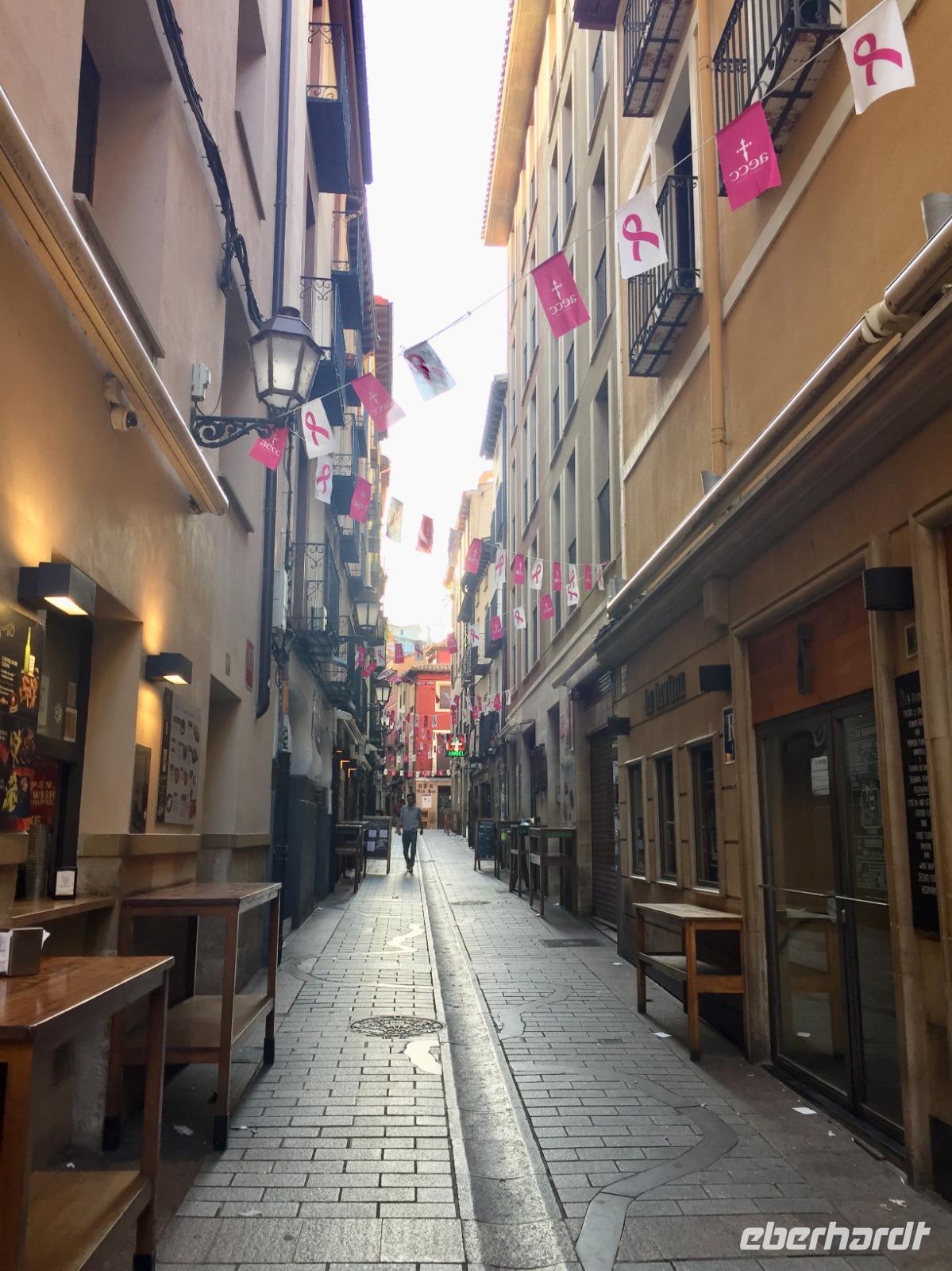 Inzwischen war es später Nachmittag und langsam waren wieder Leute auf der Straße, sie flanierten auf der Calle Portales. Die „Kneipenstraße" Calle Laurel war wie leergefegt, alle Türen zu und die Besucher vom Mittag hatten nach altem spanischen Brauch ihren Papierabfall hinterlassen. Schade...zum Mittagessen kamen wir zu spät - zum Abendessen viel zu früh. Dennoch fanden wir ein nettes Lokal um den größten Hunger mit leckeren Pintxos zu stillen.