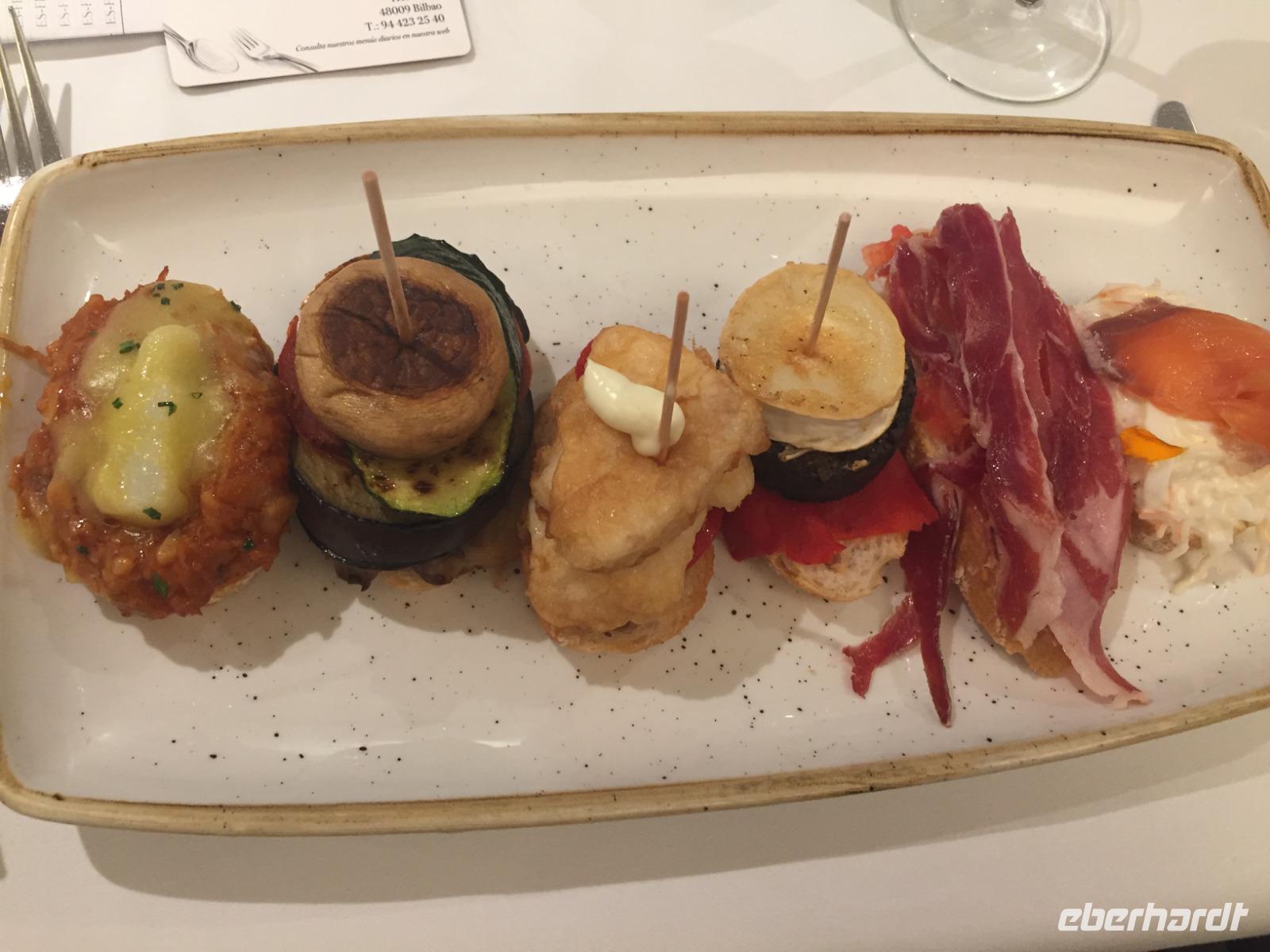 Und schon war unser Abschiedsabend gekommen. Ein kleiner Spaziergang führte uns in Bilbao vom Hotel in ein sehr schönes Lokal und wir erfreuten uns nochmals an der nordspanischen Spezialität der Pintxos. Daran könnte man sich gewöhnen!