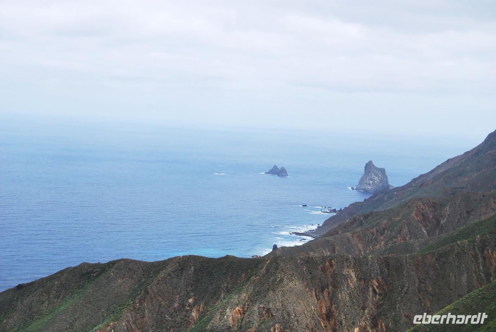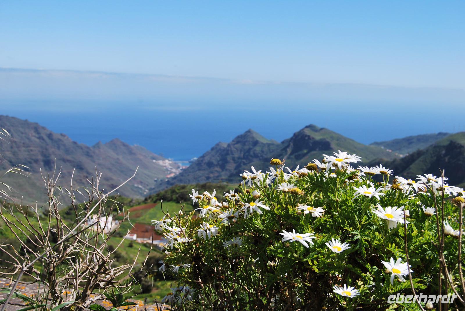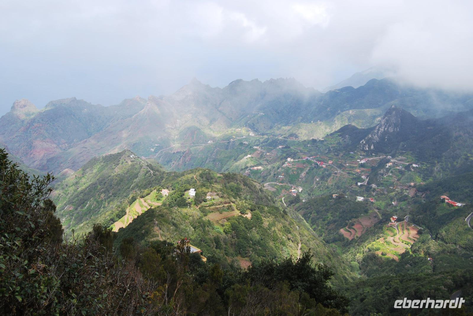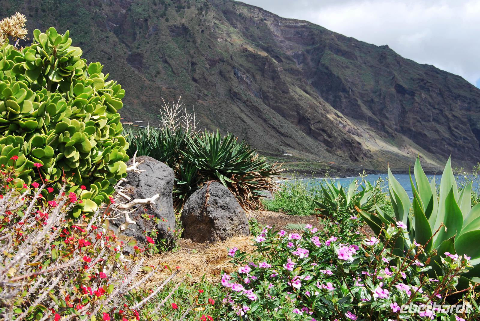 Am Morgen starteten wir unsere Inselrundfahrt in nördlicher Richtung. Erst einmal mussten wir unser Tal verlassen, denn es gab nur einen einzigen Ausgang. Der erste Stopp war dann in der beschaulichen Verwaltungszentrale der Insel, in Valverde. Es ging zum Mirador de Isora und anschließend zum Mirador de Las Playas von wo wir noch einmal unser Hotel von oben sehen konnten und einen herrlichen Blick über das Meer und die Küste hatten. Die Sonne schien hell und die Sicht war ziemlich klar. Der Mirador de Las Playas lag schon in einem kleinen Kiefernwäldchen und Ralf, unser örtlicher Reiseleiter, erklärte und schon einiges über die kanarische Kiefer und einige Pflanzen der Kanaren.