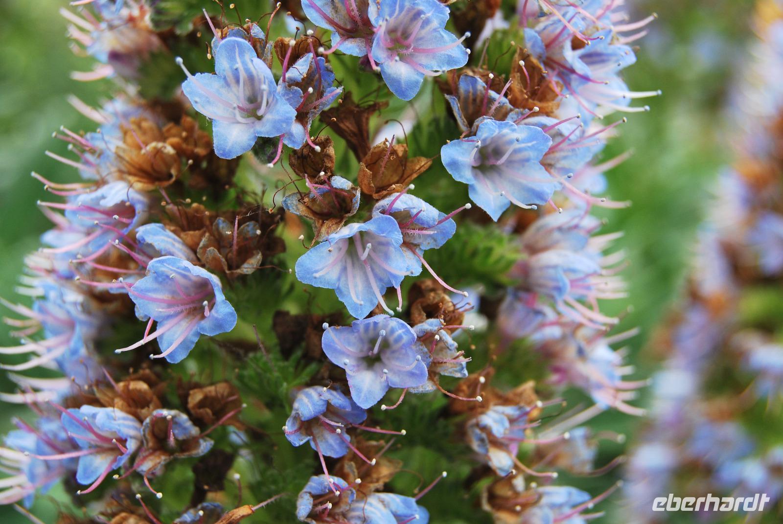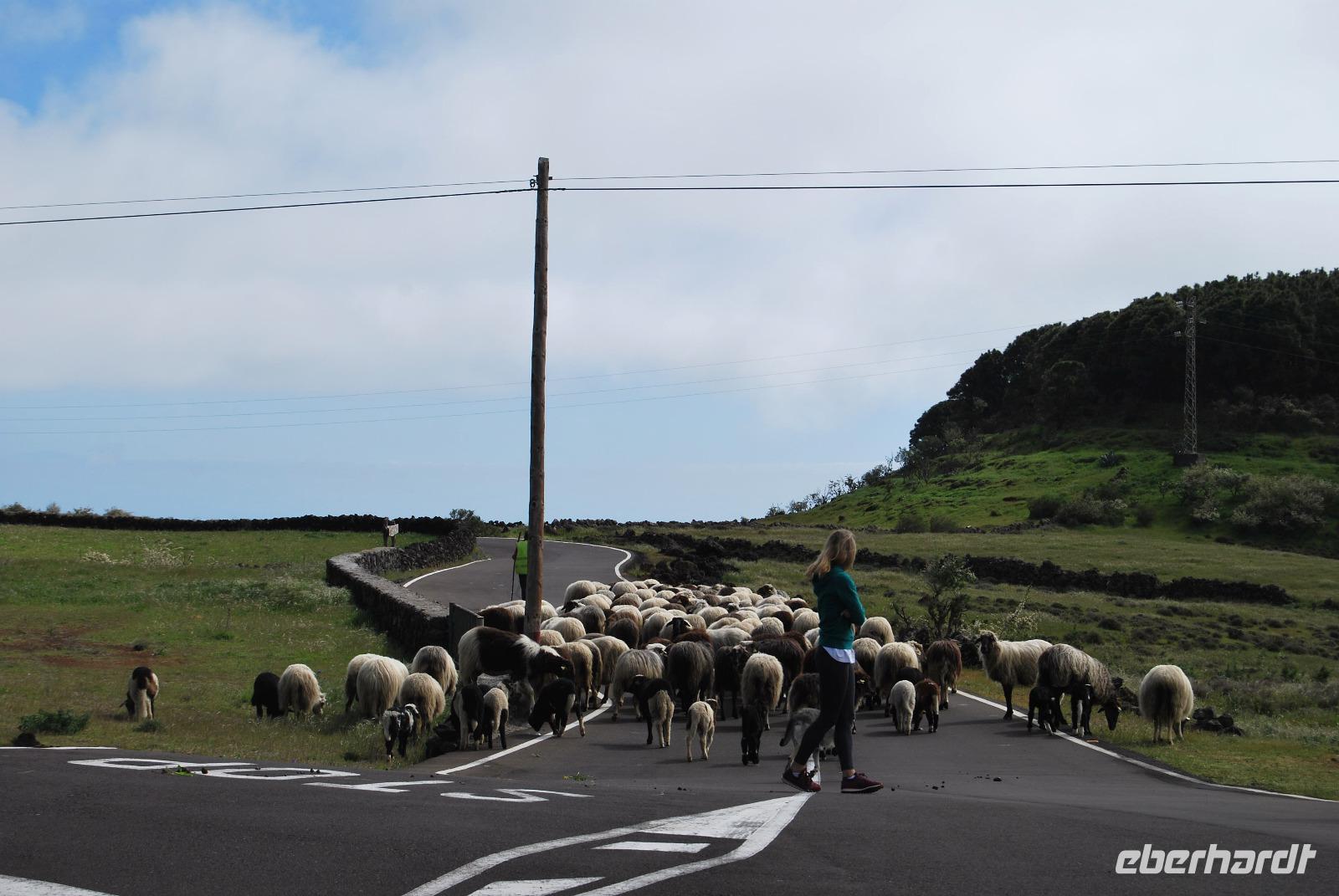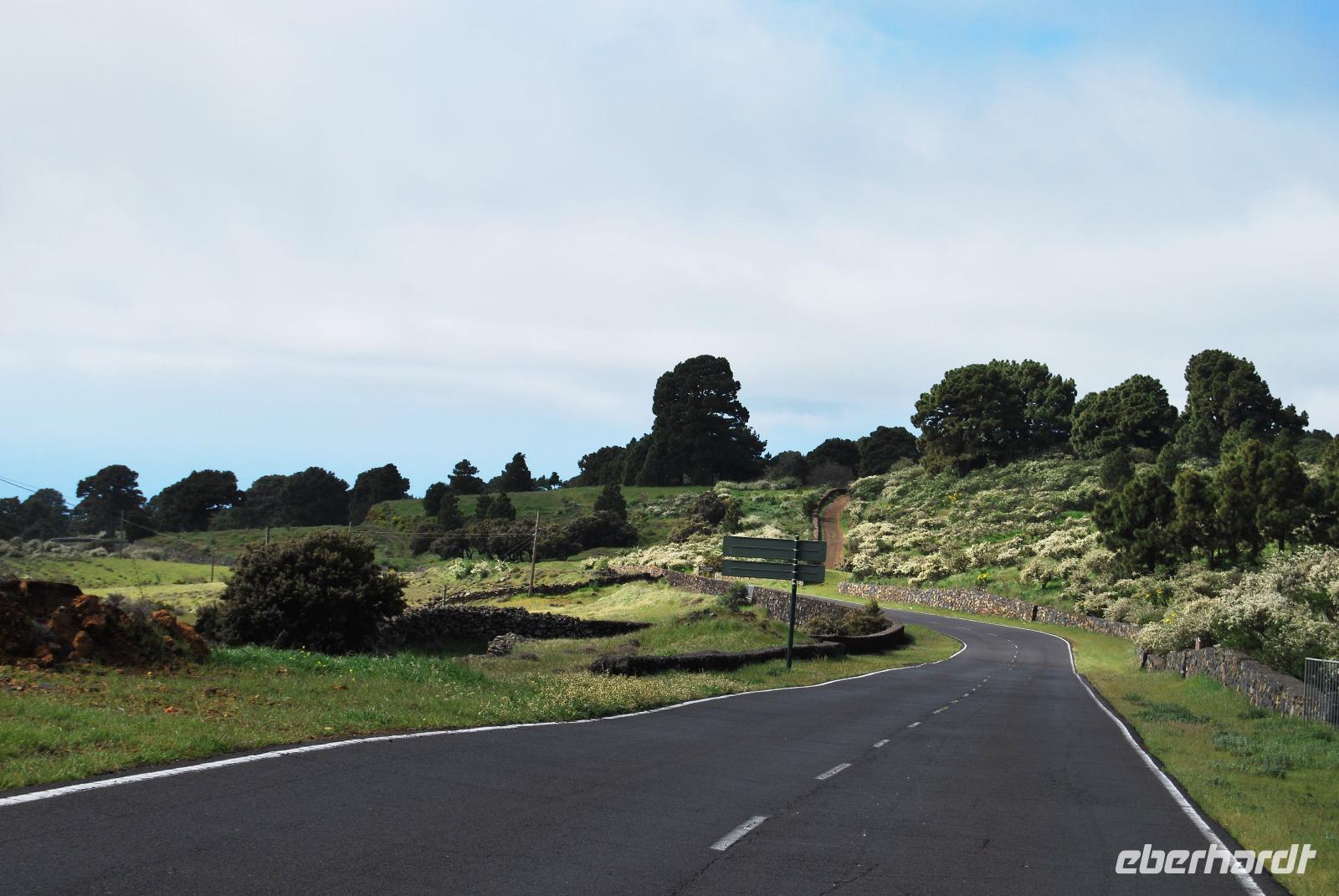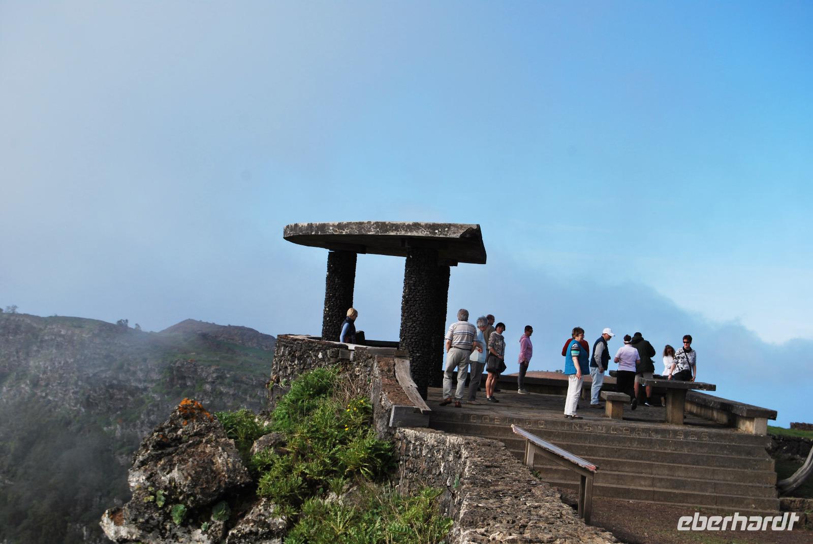 Zum Abschluss unser heutigen Rundfahrt ging es in die Highlands von El Hierro. Die Landschaft ähnelt wirklich einer schottischen, doch regnet es hier wohlmöglich nicht ganz so häufig. Wir passierten Las Montañetas, fuhren am ehemaligen Rathaus vorbei, welches abgebrannt war und damit der Ort vor langer Zeit aufgegeben wurde. In dieser Gegend befindet sich die Viehzucht der Insel. Ein violetter Natternkopf bedeckt den Boden und verleiht dem satten Grün ein Farbtupfer. Nebelschwaden zogen über die Berge. Der letzte Aussichtspunkt für heute hieß Jinama, wo wir noch ein Gruppenfoto schossen, dann ging es über Valverde zurück ins Hotel.