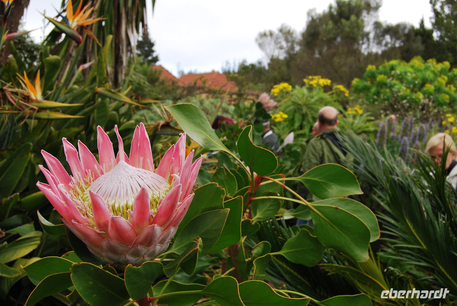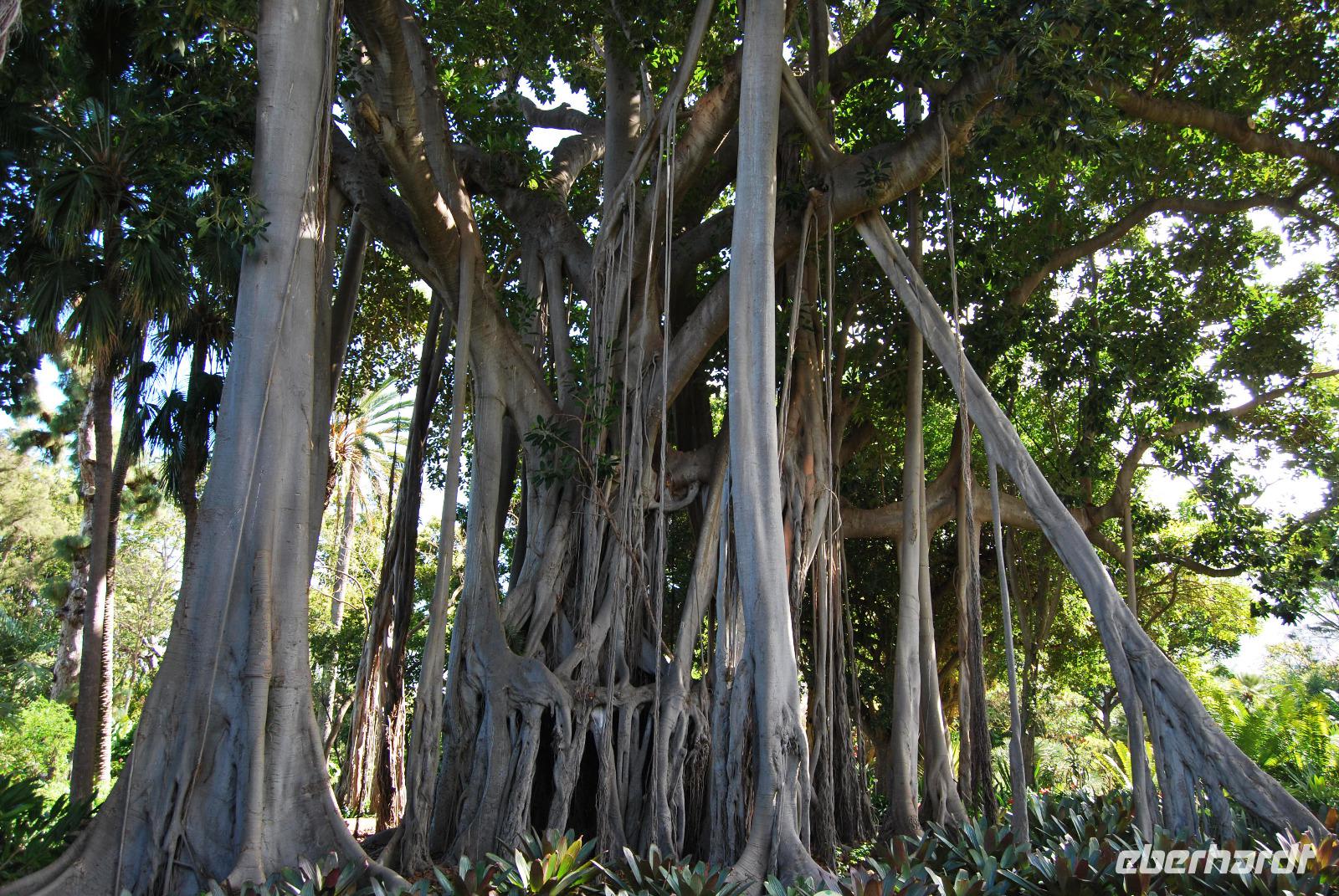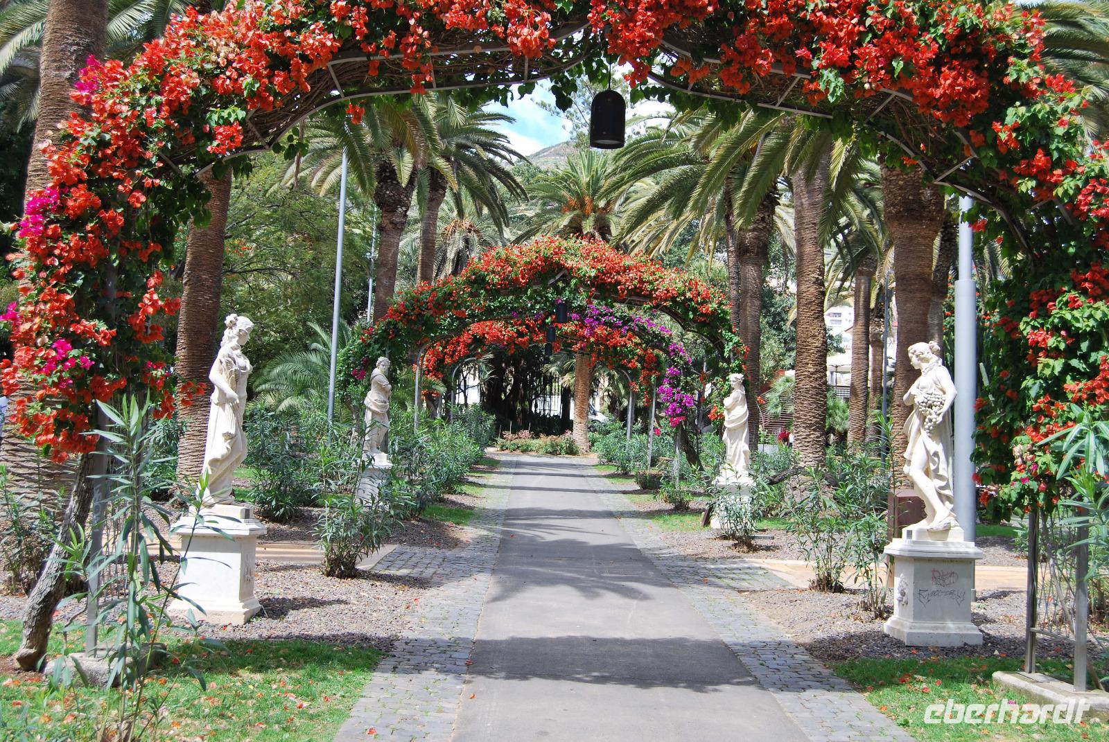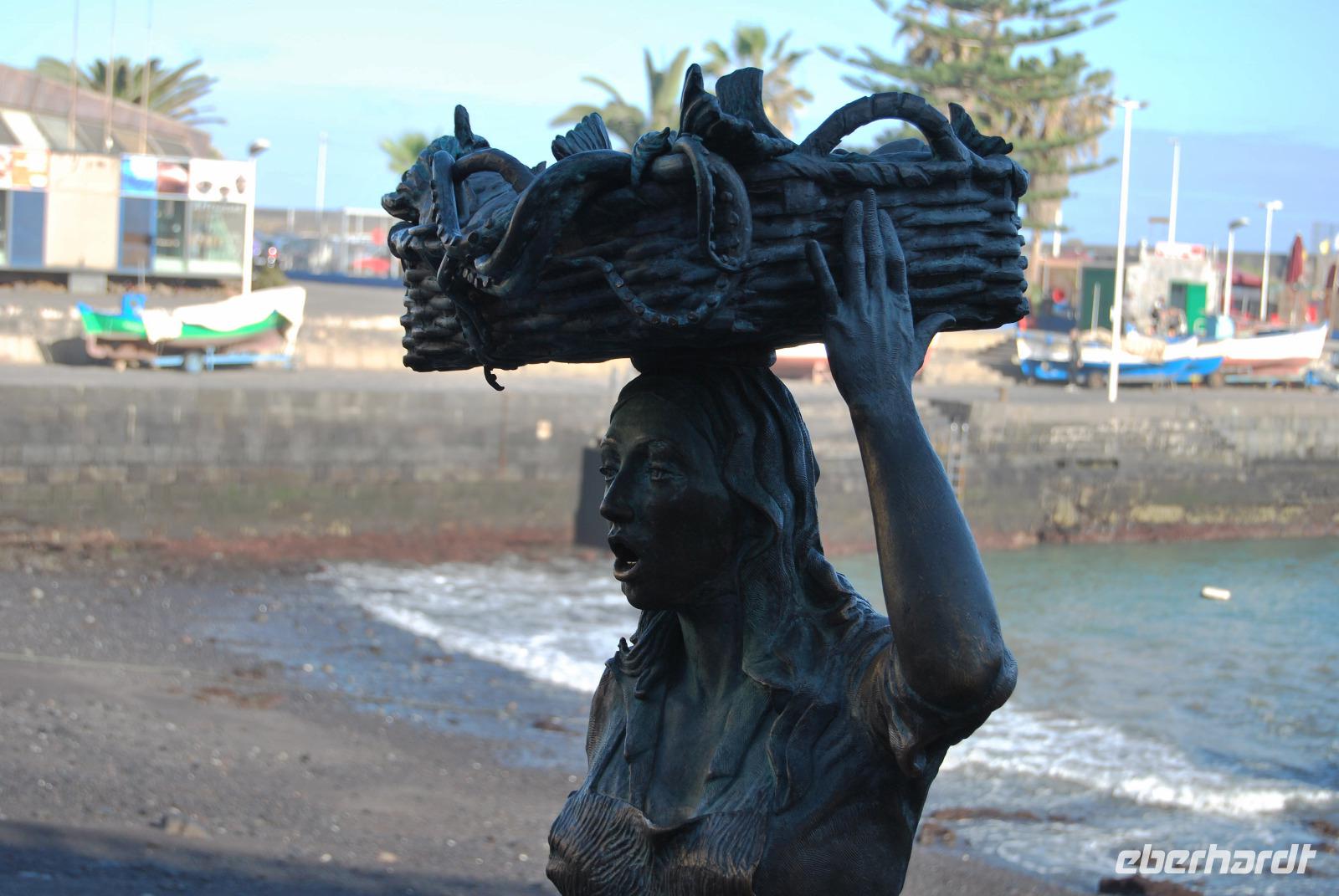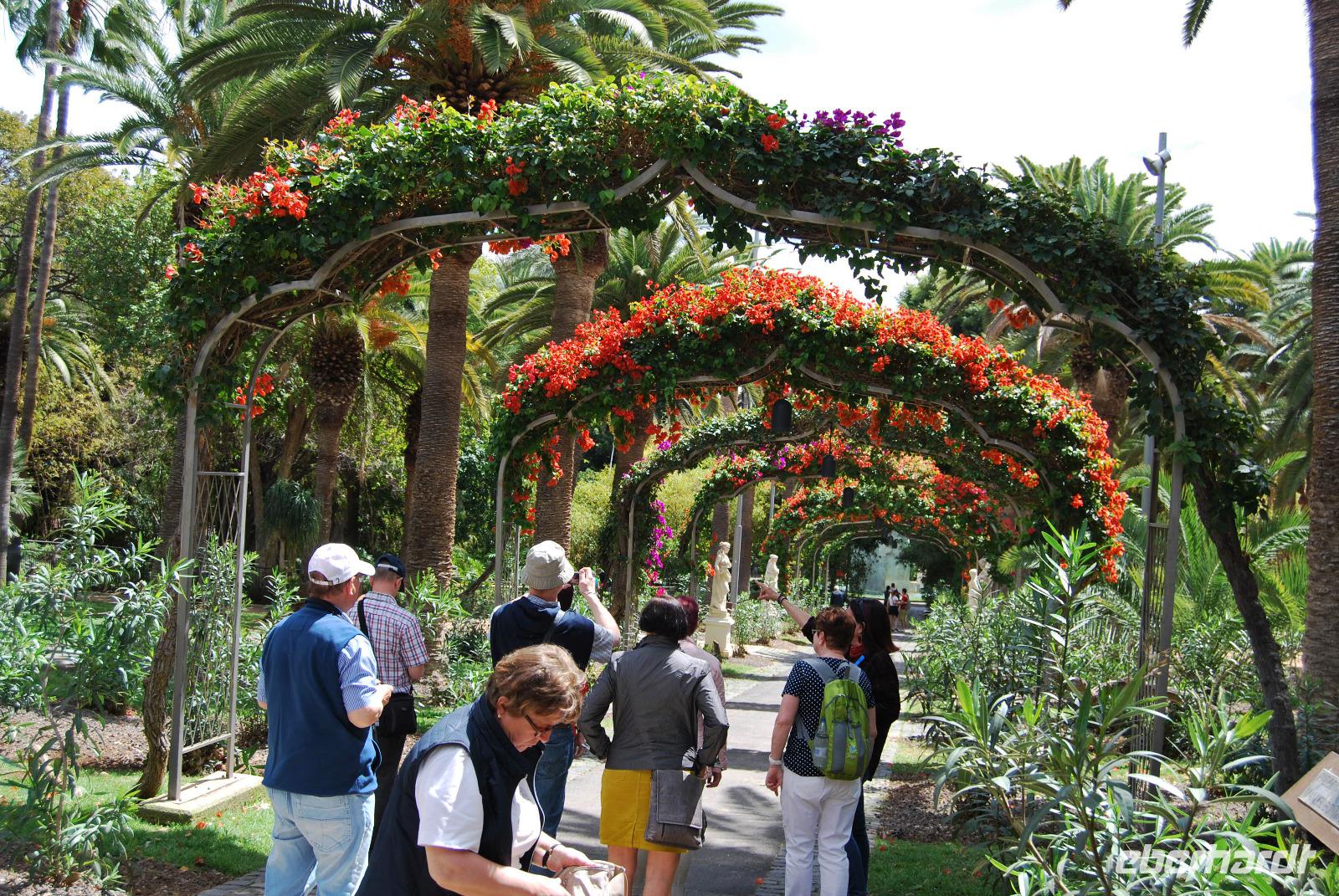 Für heute stand ein Rundgang in Puerto de la Cruz auf dem Programm sowie eine Bananenplantage und ein botanischer Garten. Wir begaben uns zuerst zur Plaza de Charco, von wo wir zum n Altstadt-Hafen schlenderten. An der Playa del Muelle schossen wir ein paar Fotos von der Fischfrau. Dies ist auch der Ort an dem die Ziegen traditionell getauft werden. Es ging weiter am alten Zollhaus vorbei zur Bateria de Santa Barbara und zum Rathaus. Wir spazierten die Promenade - Playa San Telmo - entlang bis zur kleinen Kirche de San Telmo aus dem 18. Jahrhundert. Unser Rundgang ging dann weiter an den Meeresschwimmbecken vorbei, die auch von César Manrique entworfen wurden, bis hin zur Avenida de Christobal Colón. Wir stiegen wieder in den Bus und fuhren zum botanischen Garten von Puerto de la Cruz, dem Jardin de Aclimatación de La Orotava. Der auf Anordnung des Königs Karl III. von Spanien Ende des 18. Jahrhunderts angelegt wurde und als Akklimatisierungsraum für Pflanzen dienen sollte. Heute birgt der wundervolle Garten tropische und subtropische Pflanzen, die aufgrund ihrer Schönheit, Größe und Alters herausstechen. Pflanzen aus Europa, Afrika und Amerika können auf den rund 60.000 Quadratmetern wachsen, dabei sind über 5.000 Pflanzenarten, 120 Baumarten und eine Sammlung von über 50.000 Gewächsen zu entdecken.