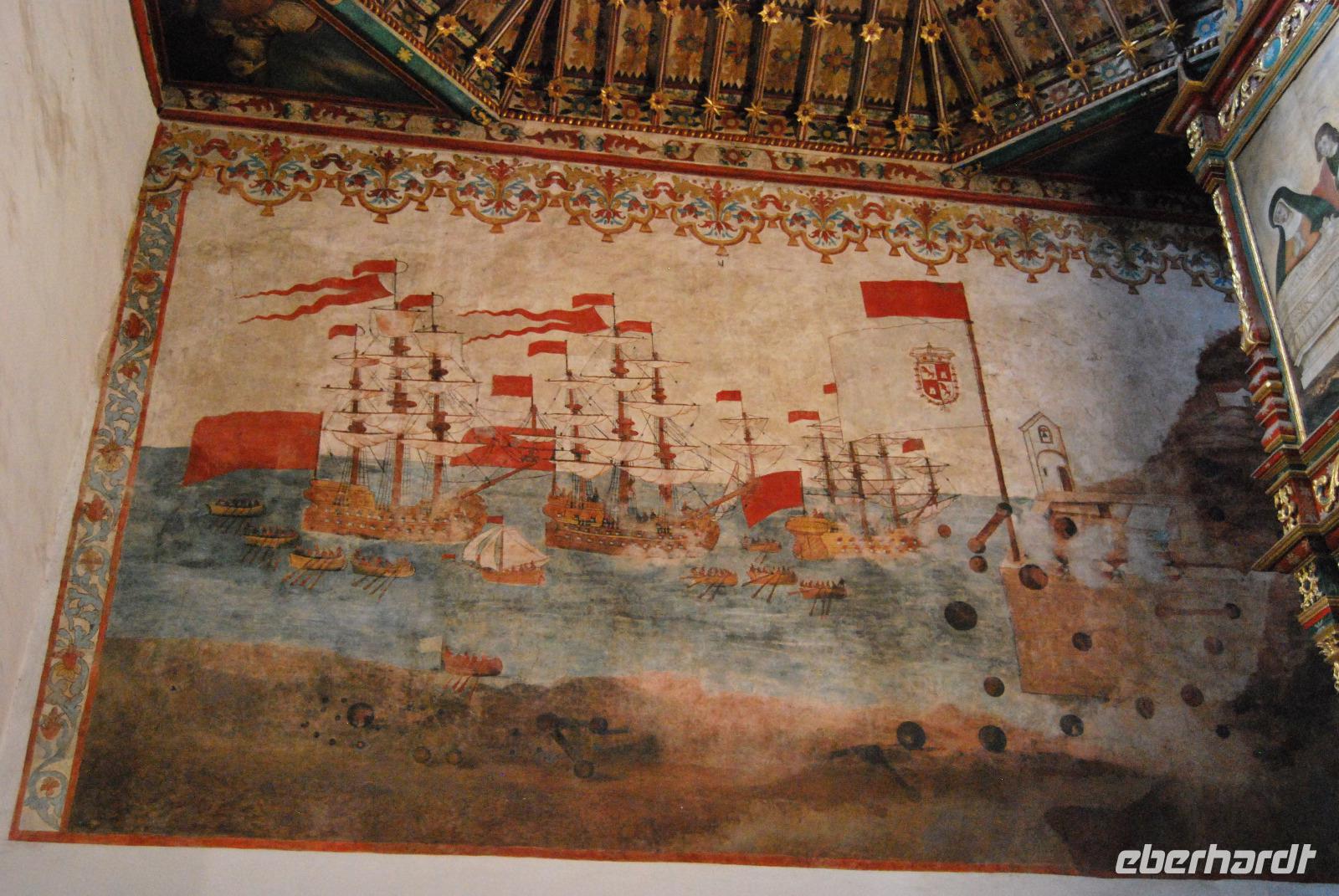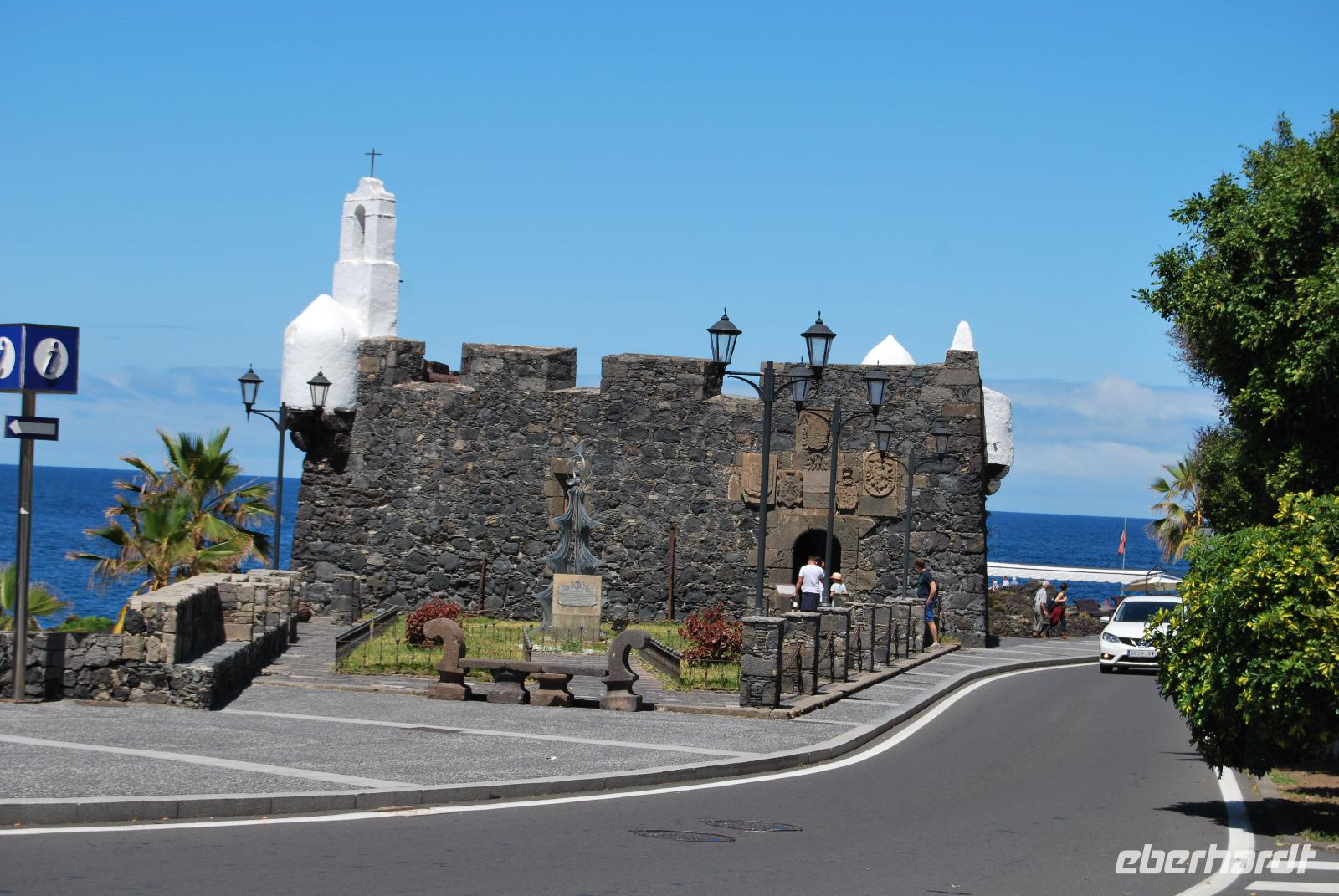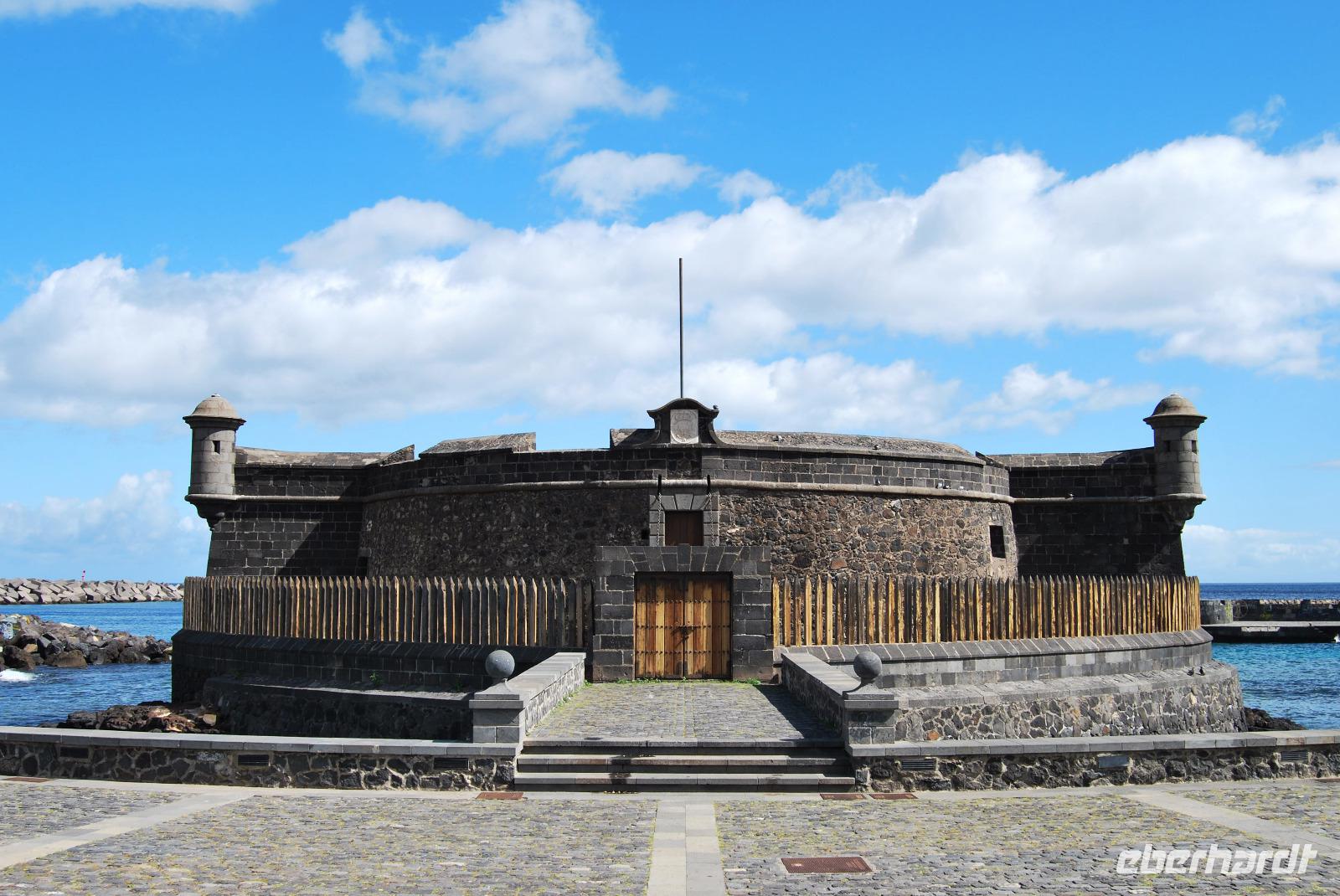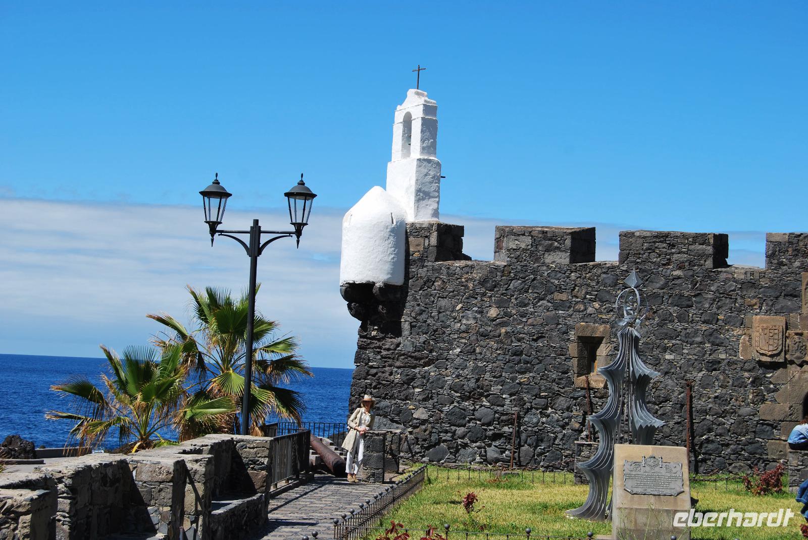 Nach der angenehmen Führung verkosteten wir noch einen Bananenlikör und natürlich ein paar frische kanarische Bio-Bananen. Dann ging es nach Santa Cruz - im Parque Garcia Sanabria begann unser Stadtrundgang. Das lag ganz in der Nähe von dem Hotel, in dem wir die erste Nacht verbrachten. Wir liefen bis zur Plaza el Chicharo, wo auch ein Denkmal des Chicharo-Fisches zu sehen ist. Denn dies ist eine Makrelen-Art die hier besonders gern gegessen und gefangen wird. Deshalb werden die Bewohner von Santa Cruz liebevoll Chicharritos genannt. An der Plaza España legten wir unsere Mittagspause ein und genossen die umliegenden Lokalitäten. Zum Abschluss des heutigen Tages fuhren wir mit dem Bus zum Auditorium von Santa Cruz. Das Wahrzeichen der Stadt wurde ebenfalls von Manrique entworfen und liegt als unverwechselbare weiße Welle direkt am Hafen der Stadt. Nebenan ist noch ein alter Zeitzeuge aus der jungen spanischen Besatzerzeit zu sehen - das Castillo de San Juan von 1643. Einst haben hier zwölf dieser Castillos den damaligen Hafen der Stadt La Laguna beschützt.