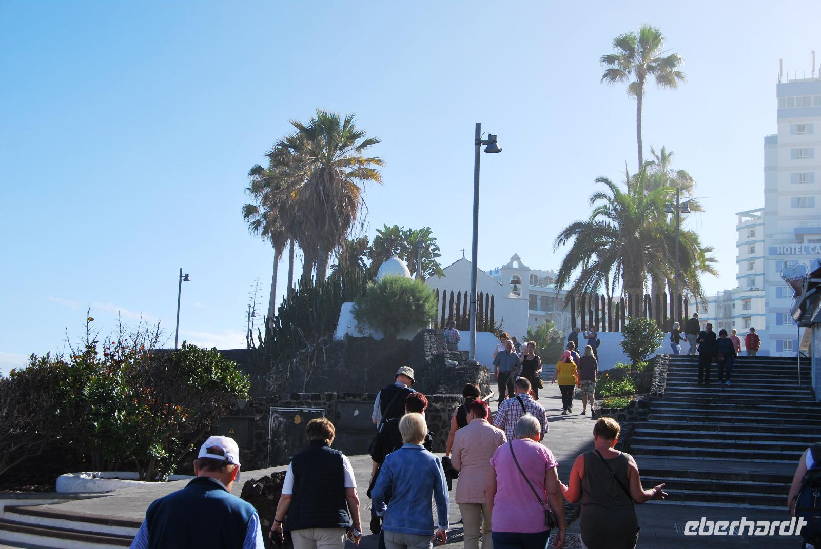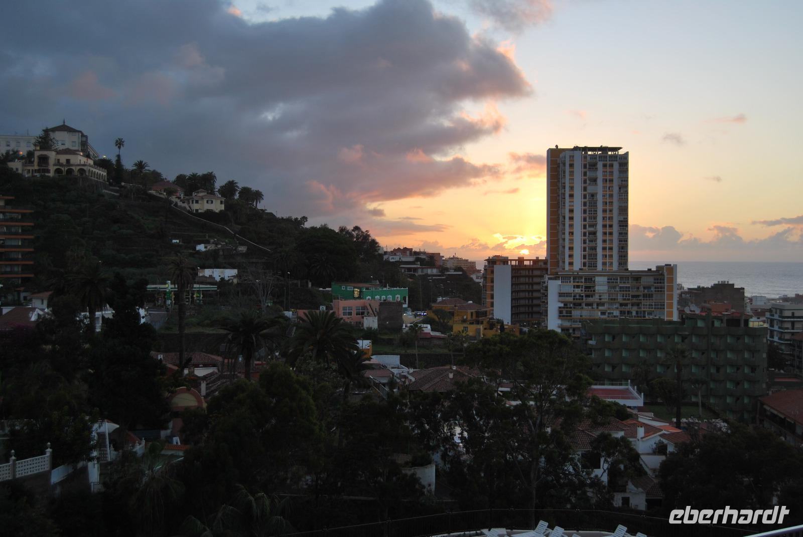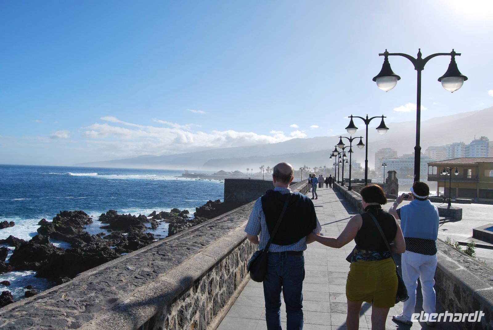 Am Vormittag ging es wieder zu dem kleinen und beschaulichen Flughafen von El Hierro. Eigentlich konnte man sich hier auch nicht verlaufen, denn an diesem Vormittag gab es auch nur eine einzige Maschine. Als sie landete und alle Gäste ausgestiegen waren, wurde sie auch gleich mit unserem Gepäck beladen und wir konnten an Bord gehen. Die Propellermaschine brachte uns rasch wieder nach Teneriffa. Um 12 Uhr landeten wir auf dem Nordflughafen, von wo aus wir in den Westen der Insel fuhren. In Puerto de la Cruz angekommen, bezogen wir unsere Zimmer und machte erste Erkundungen der Stadt. Das wundervolle Städtchen liegt nett gelegen am La Orotava-Tal und vereint damit eine herrliche Kulisse mit dem Teide im Hintergrund, wenn ihn nicht gerade die Passatwolken verdecken. Am Abend konnten wir von einem reichlich gedeckten Buffet-Tisch speisen.