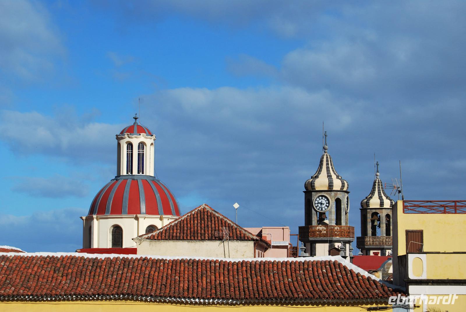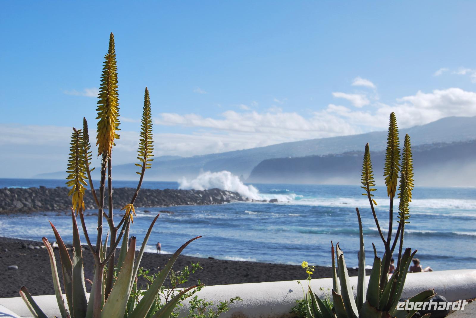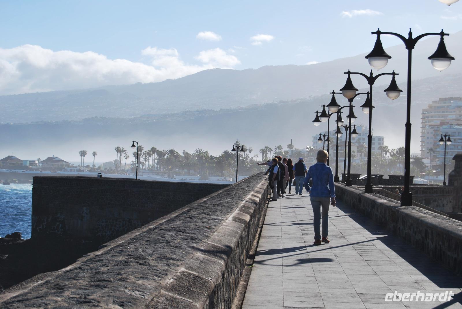 Am Vormittag ging es wieder zu dem kleinen und beschaulichen Flughafen von El Hierro. Eigentlich konnte man sich hier auch nicht verlaufen, denn an diesem Vormittag gab es auch nur eine einzige Maschine. Als sie landete und alle Gäste ausgestiegen waren, wurde sie auch gleich mit unserem Gepäck beladen und wir konnten an Bord gehen. Die Propellermaschine brachte uns rasch wieder nach Teneriffa. Um 12 Uhr landeten wir auf dem Nordflughafen, von wo aus wir in den Westen der Insel fuhren. In Puerto de la Cruz angekommen, bezogen wir unsere Zimmer und machte erste Erkundungen der Stadt. Das wundervolle Städtchen liegt nett gelegen am La Orotava-Tal und vereint damit eine herrliche Kulisse mit dem Teide im Hintergrund, wenn ihn nicht gerade die Passatwolken verdecken. Am Abend konnten wir von einem reichlich gedeckten Buffet-Tisch speisen.