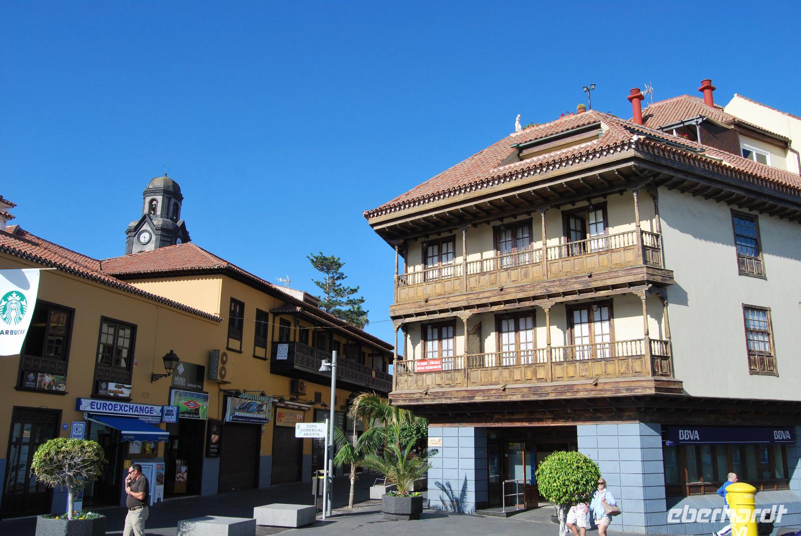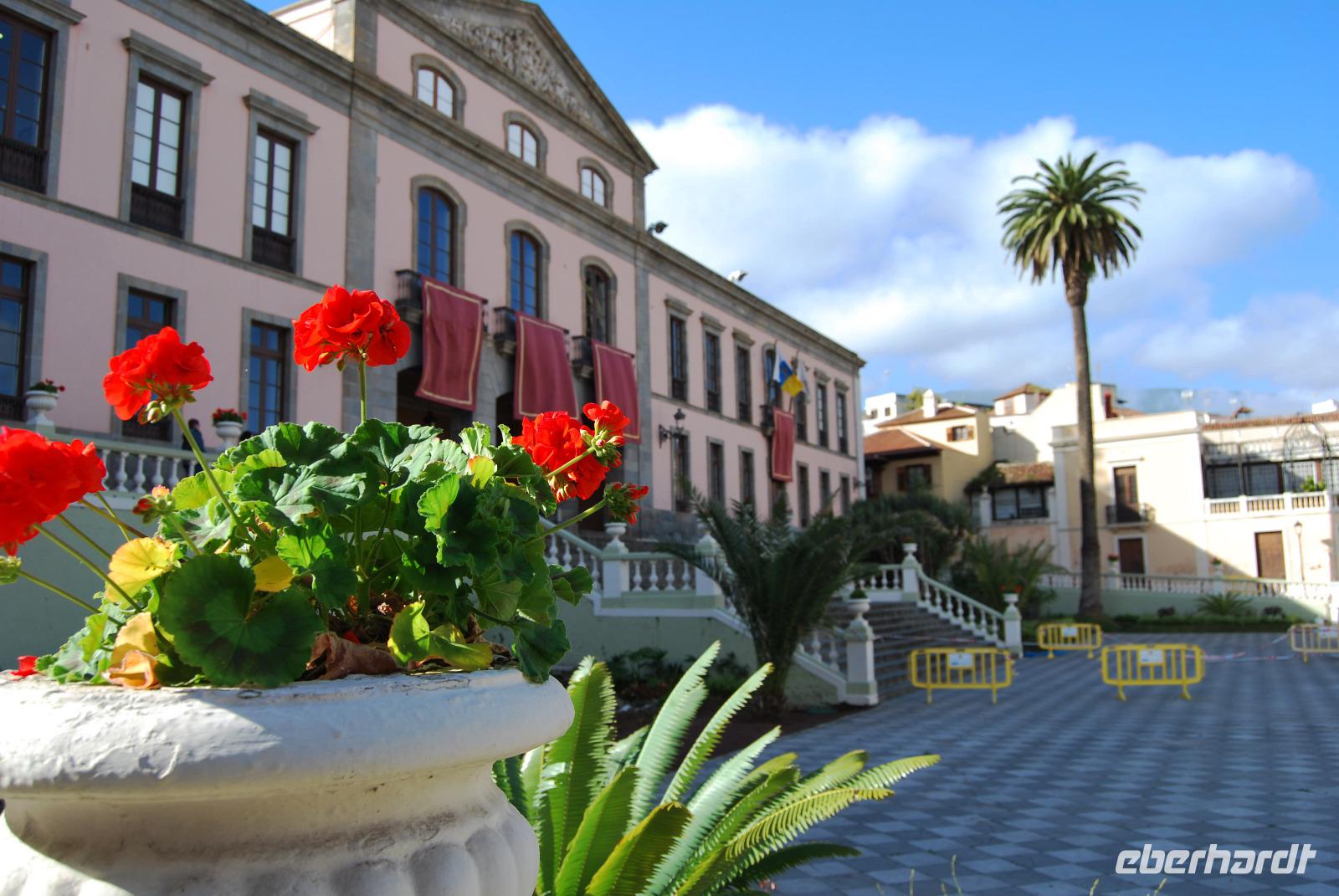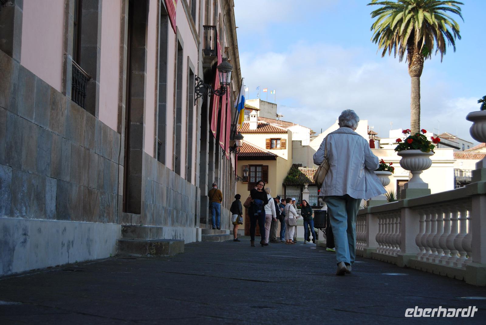 Heute Morgen fuhren wir nach La Orotava, was eigentlich direkt über uns lag. Dort besuchten wir als erstes die Plaza de la Constitución, wo sich auch das Kloster und die Kirche de San Agustin befindet. Es ging weiter zum Rathaus von La Orotava, wo auch jährlich die berühmten Sandbilder auf der freien Fläche davor geschaffen werden. Dann mussten wir ein Stück die steile Straße hinauf. In einer schmalen Gasse, kamen wir an einem kleinen, alten Haus vorbei, wo an einer kleinen Tafel geschrieben war: „Nord-Deutsche Compaña de Seguros en Hamburgo." Nicht weit entfernt lag das Casa de los Balcones, welches 1632 erbaut wurde und heute einige Kulturgüter der Kanarischen Inseln ausstellt. So kann man in einigen Räumen das damalige Leben und die Einrichtung eines Herrenhauses betrachten. Im unteren Teil des Gebäudes werden einige Stickereien und Handwerkskunst präsentiert. Im Gegenüberliegenden Haus, welches ein paar Jahre später erbaut wurde werden ein paar Bilder ausgestellt sowie die traditionelle Sandmalerei die nur hier in La Orotava in diesem Stile praktiziert wird. Des Weiteren sind auch hier zahlreiche Souvenirs zu erhalten. Dann stapften wir die steile Straße hinunter, kamen am Casa Monteverde vorbei, die hier einst auch Blumenbilder in die Kultur einführte, an der Iglesia de Nuestra Señora de la Concepción vorbei sowie dem Denkmal der Sandmaler bis hin zum Bus. Von dort fuhren wir in den Esperanza Wald. Wir unternahmen einen kurzen Spaziergang durch die hoch thronenden Kiefern. Es war nun schon sehr frisch, ein leichter und kühler Wind wehte uns um die Nase. Als wir zu einer Lichtung kamen waren wir froh über ein paar wärmende Sonnenstrahlen. Von dort aus konnten wir bis nach Santa Cruz blicken und sogar das Auditorium erkennen. Auf dem Nachhauseweg legten wir eine Kaffeepause bei dem Café von Betty ein - La Terraza de Betty.