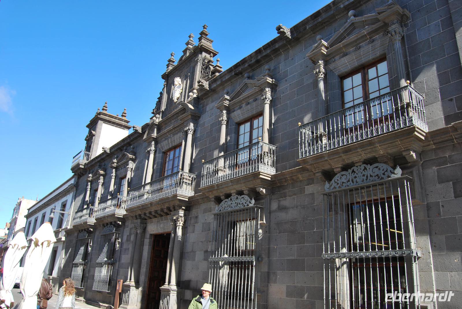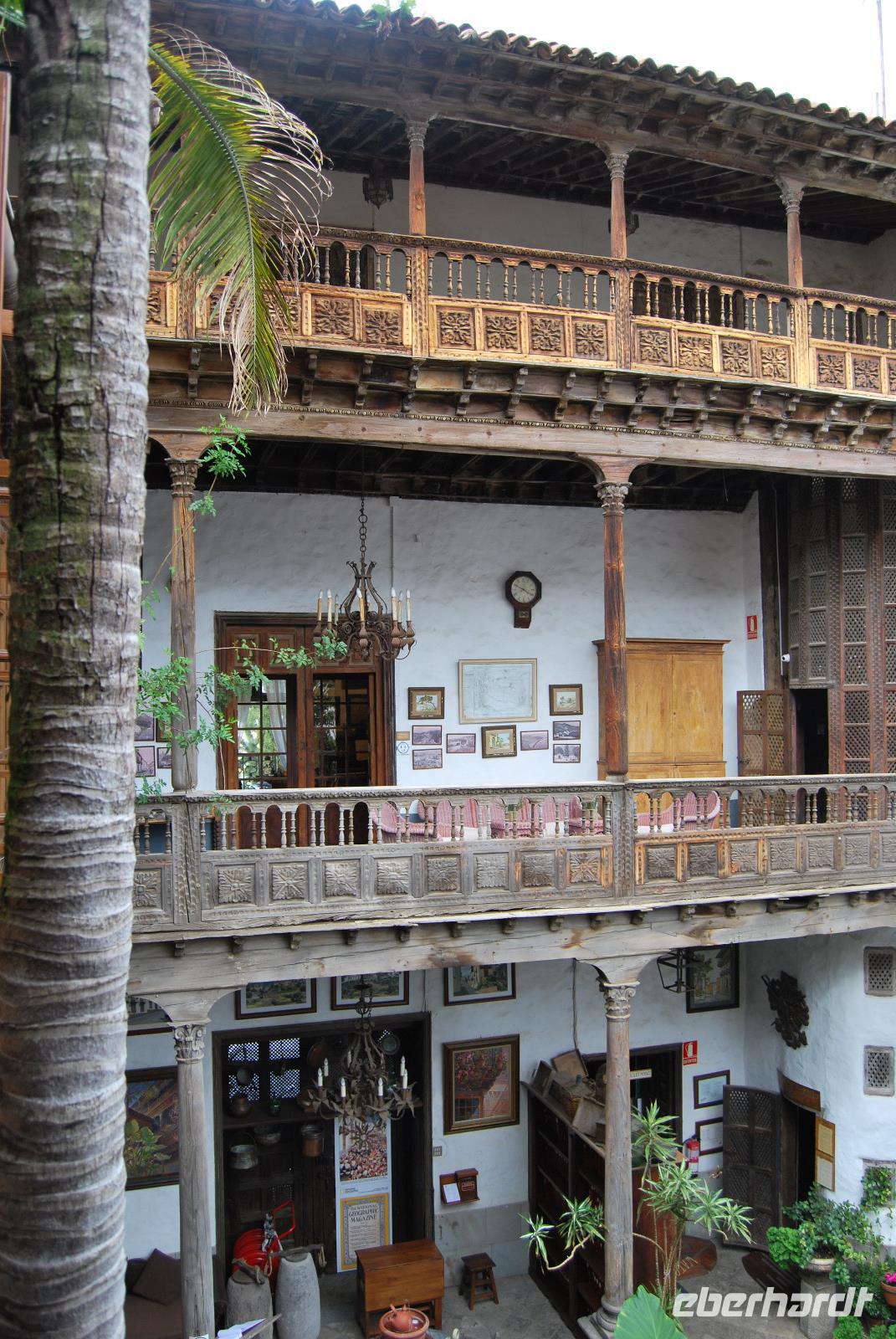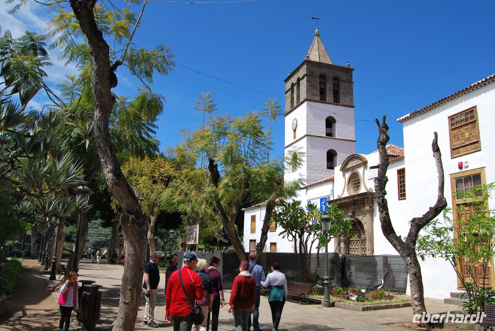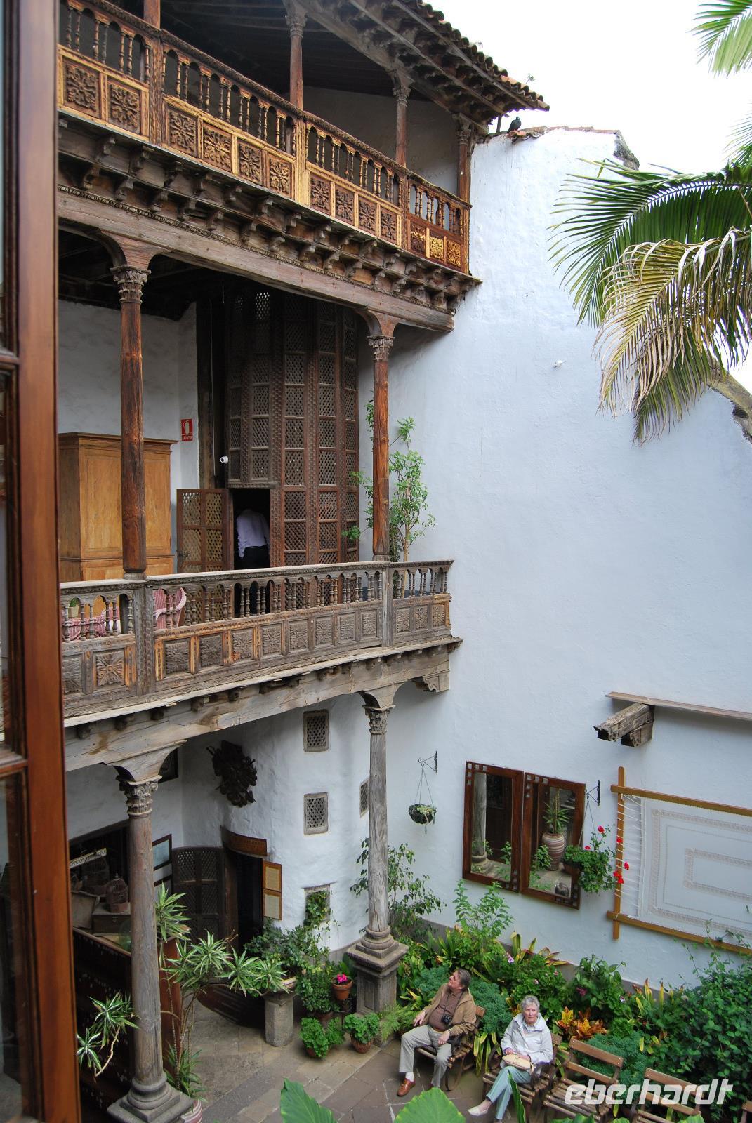 Heute Morgen fuhren wir nach La Orotava, was eigentlich direkt über uns lag. Dort besuchten wir als erstes die Plaza de la Constitución, wo sich auch das Kloster und die Kirche de San Agustin befindet. Es ging weiter zum Rathaus von La Orotava, wo auch jährlich die berühmten Sandbilder auf der freien Fläche davor geschaffen werden. Dann mussten wir ein Stück die steile Straße hinauf. In einer schmalen Gasse, kamen wir an einem kleinen, alten Haus vorbei, wo an einer kleinen Tafel geschrieben war: „Nord-Deutsche Compaña de Seguros en Hamburgo." Nicht weit entfernt lag das Casa de los Balcones, welches 1632 erbaut wurde und heute einige Kulturgüter der Kanarischen Inseln ausstellt. So kann man in einigen Räumen das damalige Leben und die Einrichtung eines Herrenhauses betrachten. Im unteren Teil des Gebäudes werden einige Stickereien und Handwerkskunst präsentiert. Im Gegenüberliegenden Haus, welches ein paar Jahre später erbaut wurde werden ein paar Bilder ausgestellt sowie die traditionelle Sandmalerei die nur hier in La Orotava in diesem Stile praktiziert wird. Des Weiteren sind auch hier zahlreiche Souvenirs zu erhalten. Dann stapften wir die steile Straße hinunter, kamen am Casa Monteverde vorbei, die hier einst auch Blumenbilder in die Kultur einführte, an der Iglesia de Nuestra Señora de la Concepción vorbei sowie dem Denkmal der Sandmaler bis hin zum Bus. Von dort fuhren wir in den Esperanza Wald. Wir unternahmen einen kurzen Spaziergang durch die hoch thronenden Kiefern. Es war nun schon sehr frisch, ein leichter und kühler Wind wehte uns um die Nase. Als wir zu einer Lichtung kamen waren wir froh über ein paar wärmende Sonnenstrahlen. Von dort aus konnten wir bis nach Santa Cruz blicken und sogar das Auditorium erkennen. Auf dem Nachhauseweg legten wir eine Kaffeepause bei dem Café von Betty ein - La Terraza de Betty.