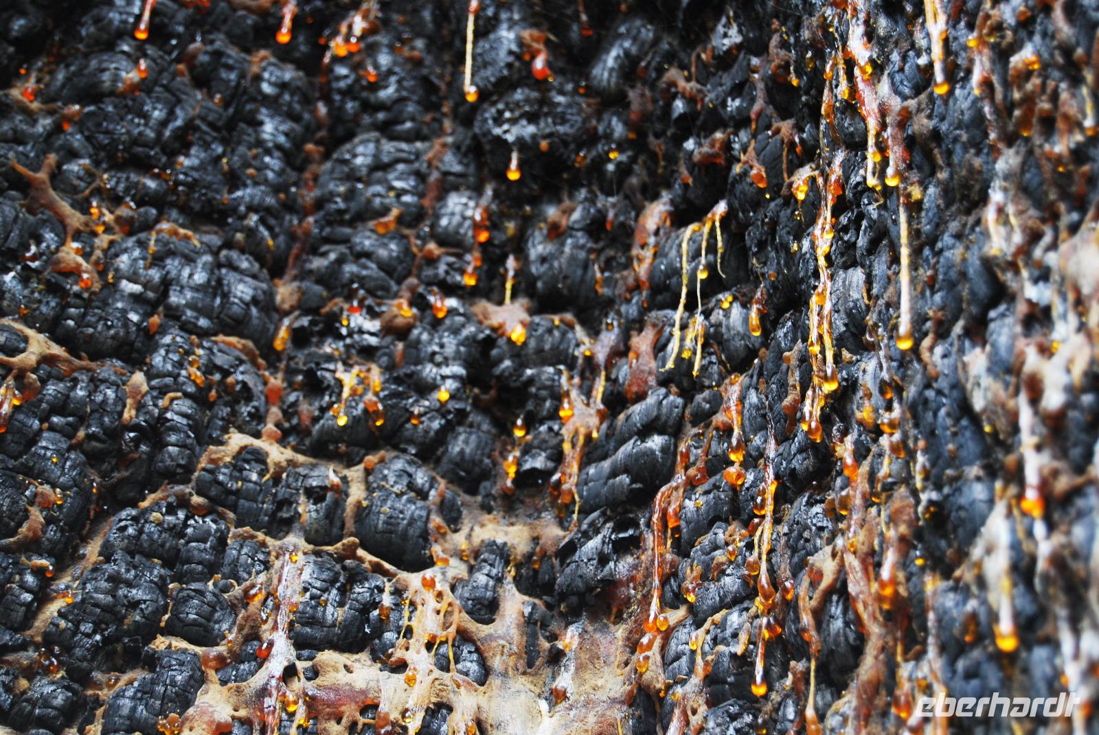 Vor dem Mittagsessen kamen wir an der Blutwurst Grube - hoya del morcillo - mitten im Kiefernwald vorbei. Ein beliebter Ausflugspunkt für die Einheimischen. Dann ging es weiter, der Wald veränderte sich wieder und wir durchquerten ein Stück Erica-Wald. Eine Baumheide die noch aus dem Tertiär (3 bis 66 Millionen Jahre) stammt und einst überall am Mittelmeerraum vertreten war.