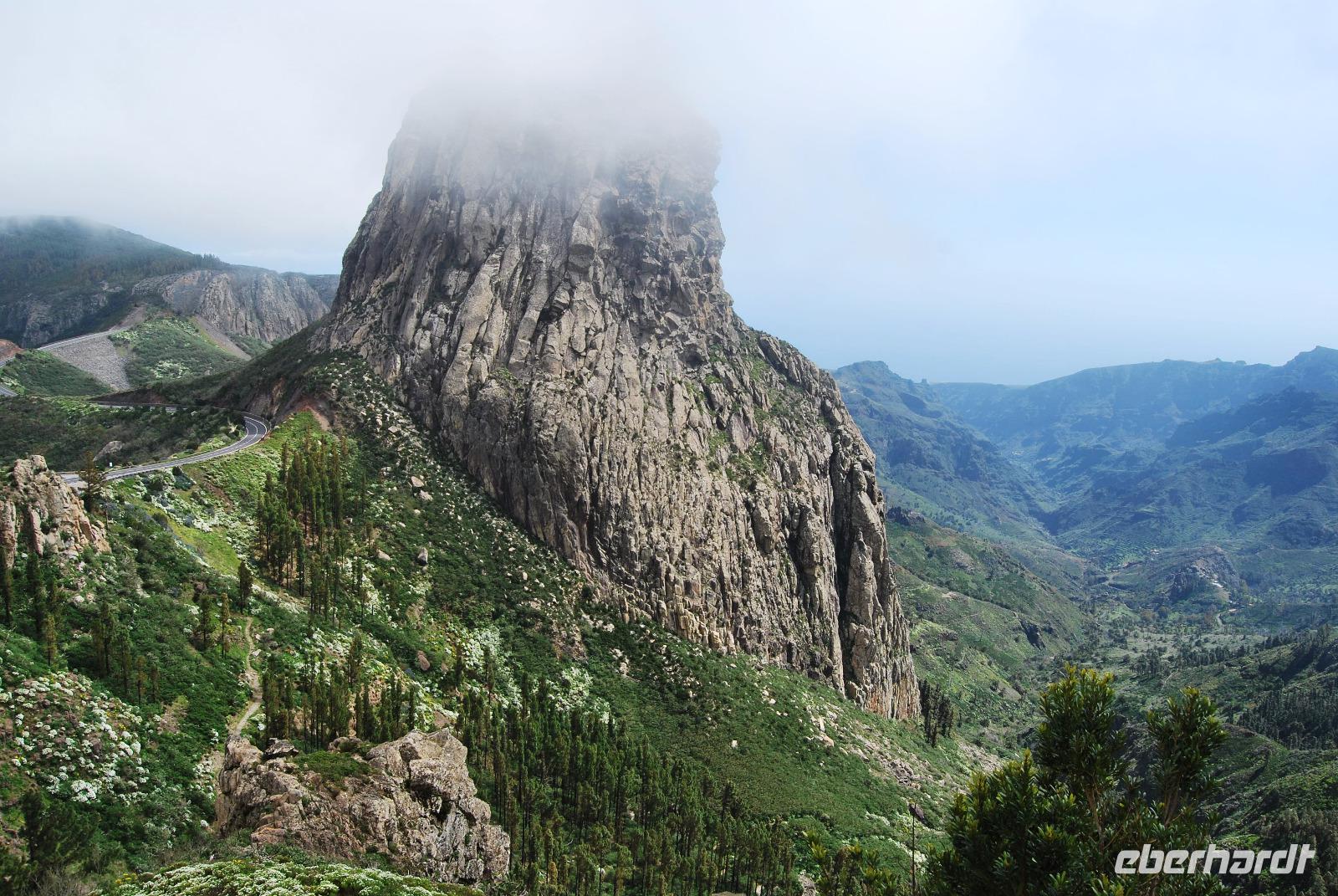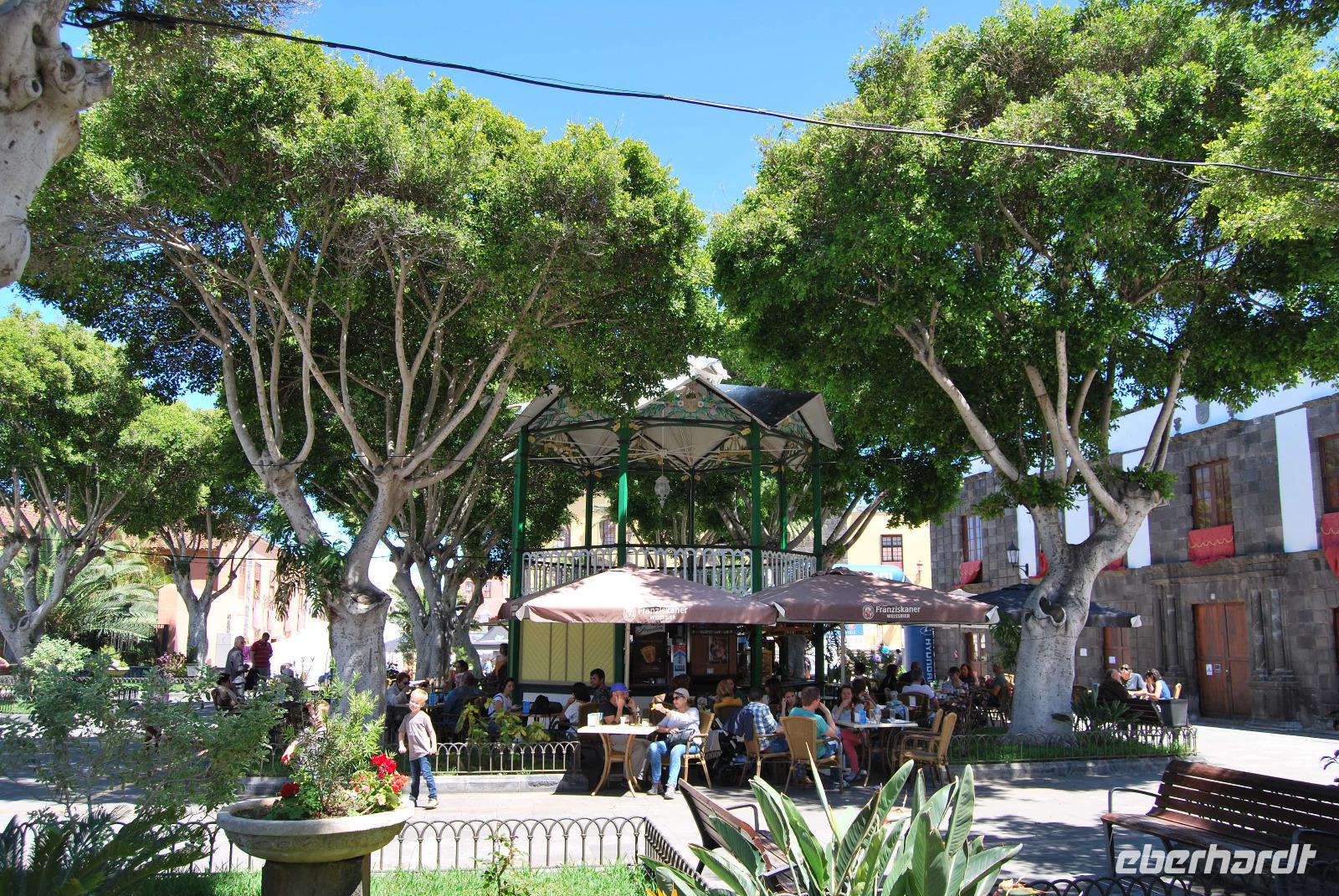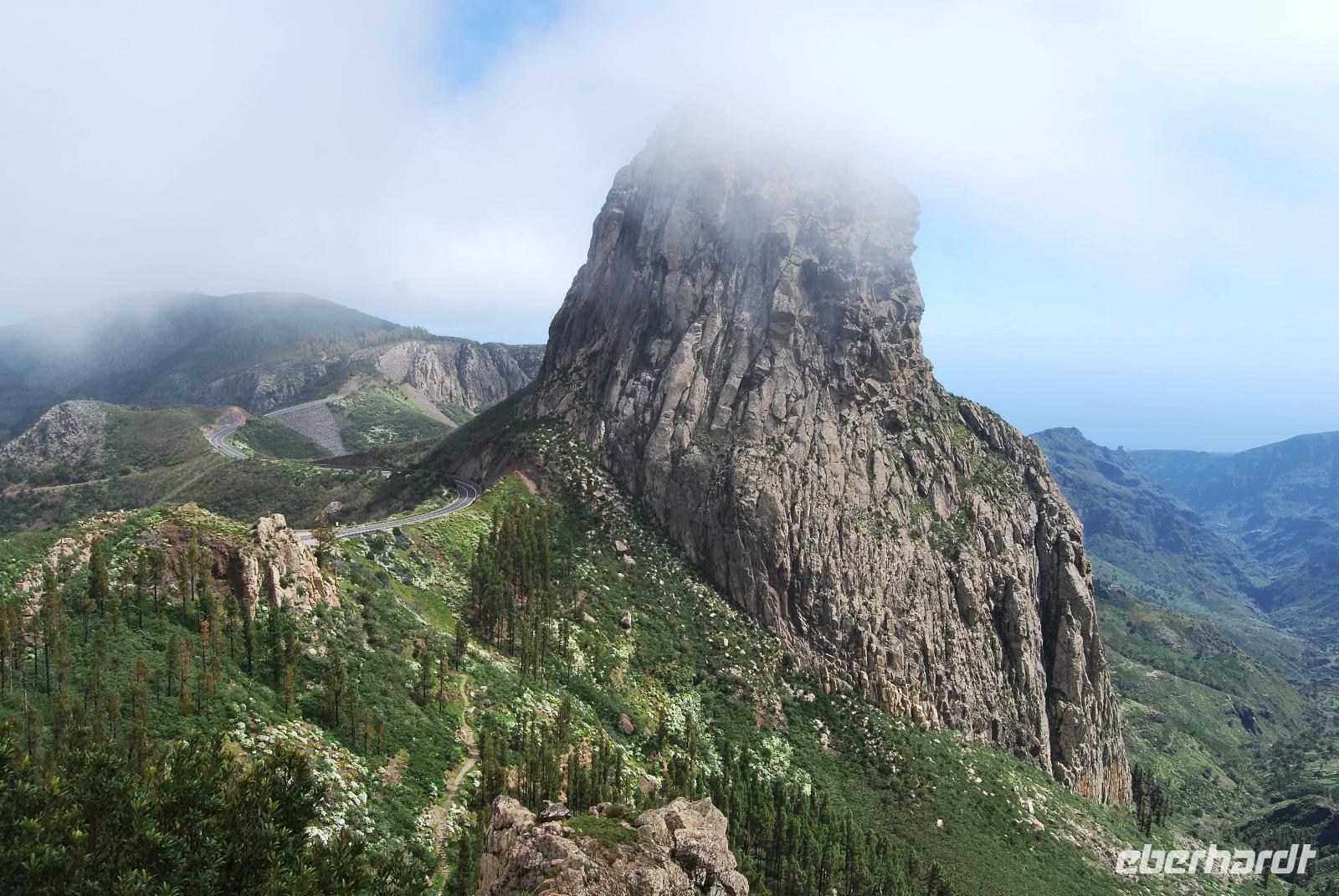 Nach dem Mittagessen besuchten wir noch das Museum des Nationalparks Garajonay und fuhren dann in den Lorbeerwald zum Hexenkessel. Die Laguna Grande, wie der Ort auch noch genannt wird ist ein ehemaliger Vulkankrater und absolut wasserdicht. Demzufolge kann sich an dieser Stelle auch kein Baum verwurzeln und es entstand eine Lichtung mitten im dichten Wald. Schon für die Uhreinwohner war dies ein magischer Ort. Heute ranken sich Geschichten wie die von Gara und Jonay um den Nationalpark, von der er auch seinen Namen bekommen hat. Über die Südstraße nach San Sebastian ging es wieder in die Hauptstadt. Ein kurzer Halt an den beeindruckenden Los Roques, mit dem Roque de Agando durfte natürlich nicht fehlen. Am Ende noch ein Foto des Roque de Sombrero und dann spazierten wir auch schon wieder im Sonnenschein durch San Sebastian. Gisela erläuterte uns noch einige Dinge über die Kirche De La Asunción, die schon zu Zeiten Kolumbus dort stand. Wir genossen noch ein wenig Freizeit und nutzten diese für ein Eis oder auch ein Kaffee. Dann verließen wir wieder die Kolumbus-Insel und setzten nach Teneriffa über. Am Abend kamen wir wieder in unserem Hotel in Puerto de la Cruz an.
