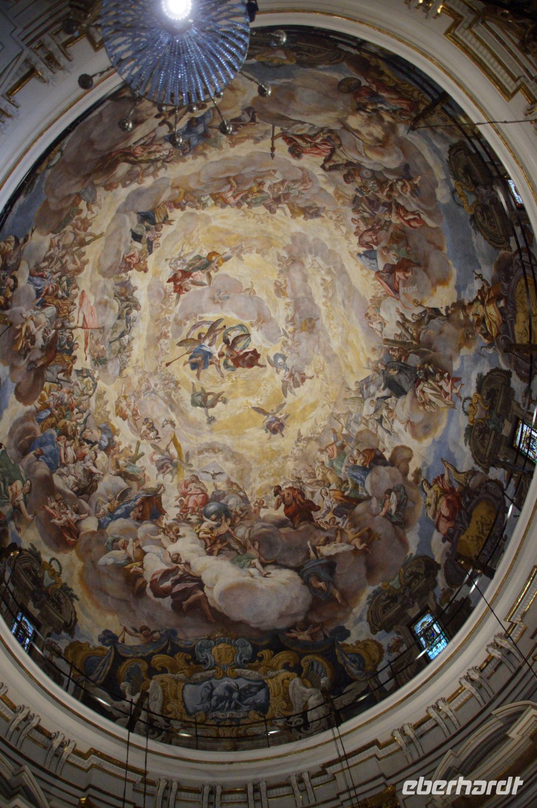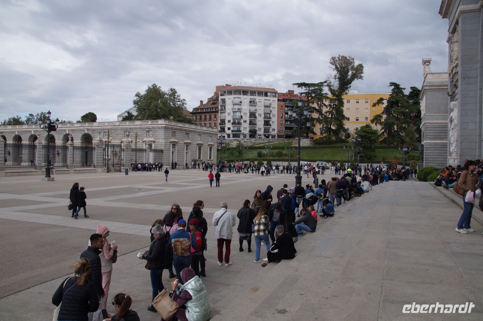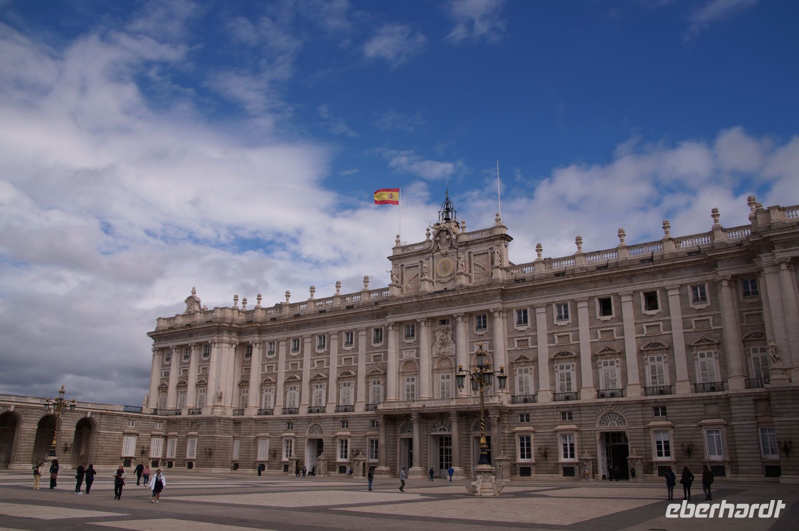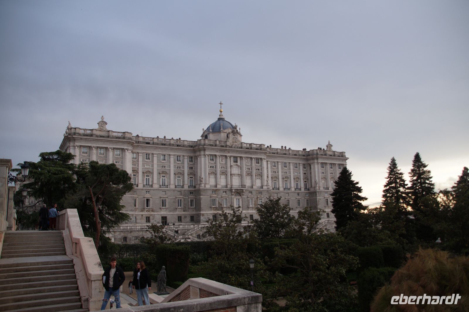Anschließend ging es zum Königspalast, den wir durchwanderten. Wir stiegen die Botschaftertreppe hinauf und begaben uns durch die Repräsentationsräume der spanischen Monarchie. Nun... man spricht von "Madrid de los Austrias", denn es waren die Habsburger (" 'absburgos" für die Spanier, was denen aber nicht so leicht über die Zunge kommt, weshalb sie sich in "los Austrias" flüchten), welche aus dem unbedeutenden Dörflein auf dem Felsen über dem Manzanares mit einer verfallenen arabischen Qasba (Alcazaba) die Hauptstadt ihres Imperiums machten, "in dem die Sonne nicht untergeht". Als Karl V./Carlos I. 1516 die Regierung in Spanien antrat, vollzog sich gerade der Sprung von Kuba auf das mexikanische Festland, sein Reich reichte von Wien bis zum Pazifik, als sein Sohn Philipp an der Macht war, wurde eine Inselgruppe erobert, die in westlichen Sprachen bis heute als die Philippinen firmiert (nur dass Philipp aufgrund der habsburgischen Teilung nicht mehr über die österreichischen Gebiete regierte, sondern die Spanischen Niederlande als einzigen Teil im Heiligen Römischen Reich beherrschte, in dem jetzt sein in Spanien geborener Onkel Ferdinand Kaiser war und die habsburgischen Stammlande in Österreich beherrschte.