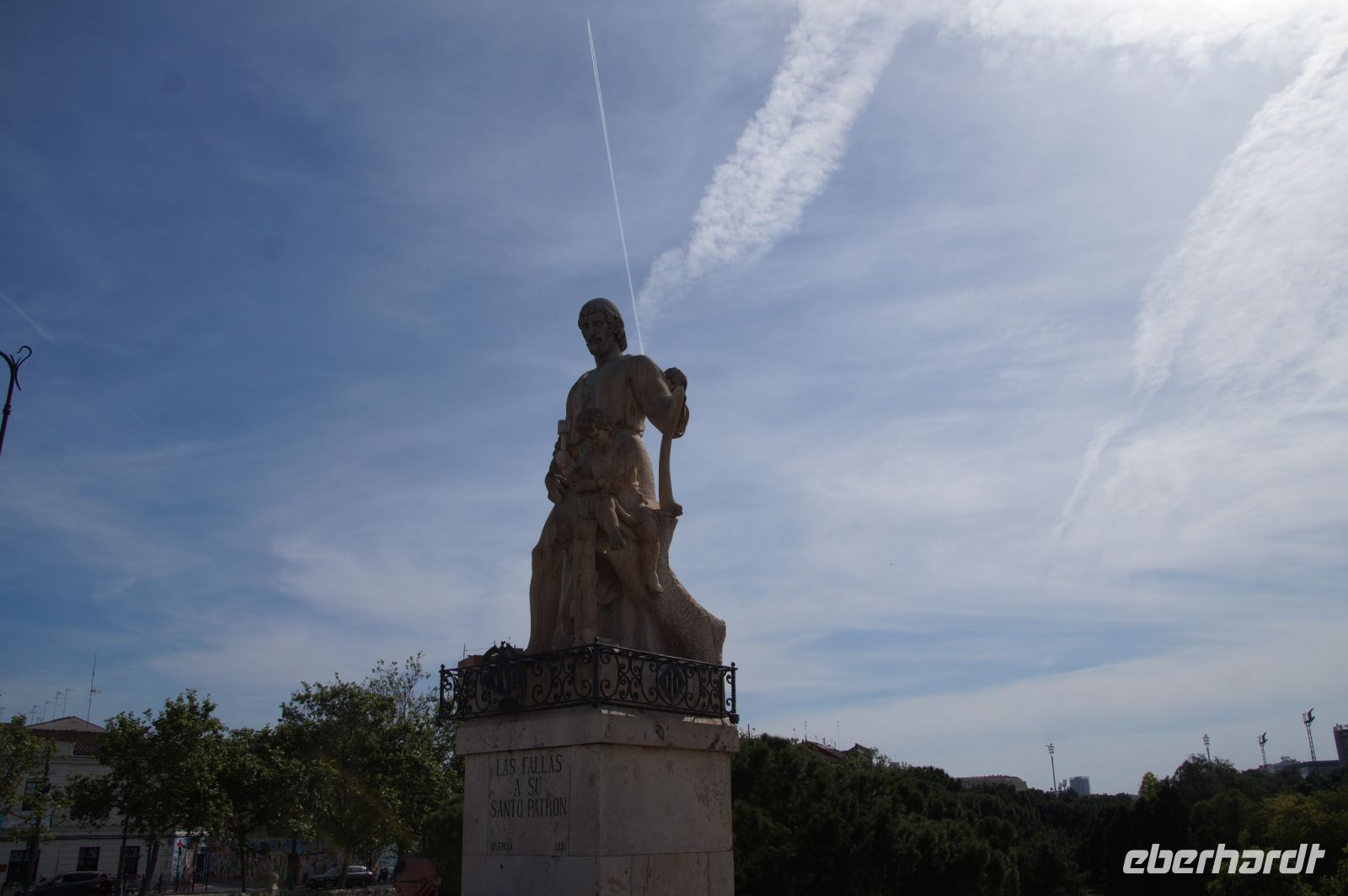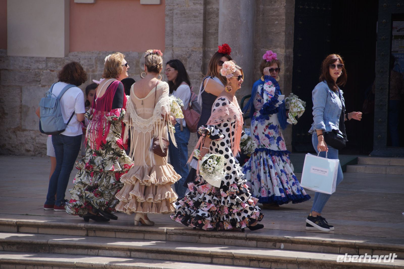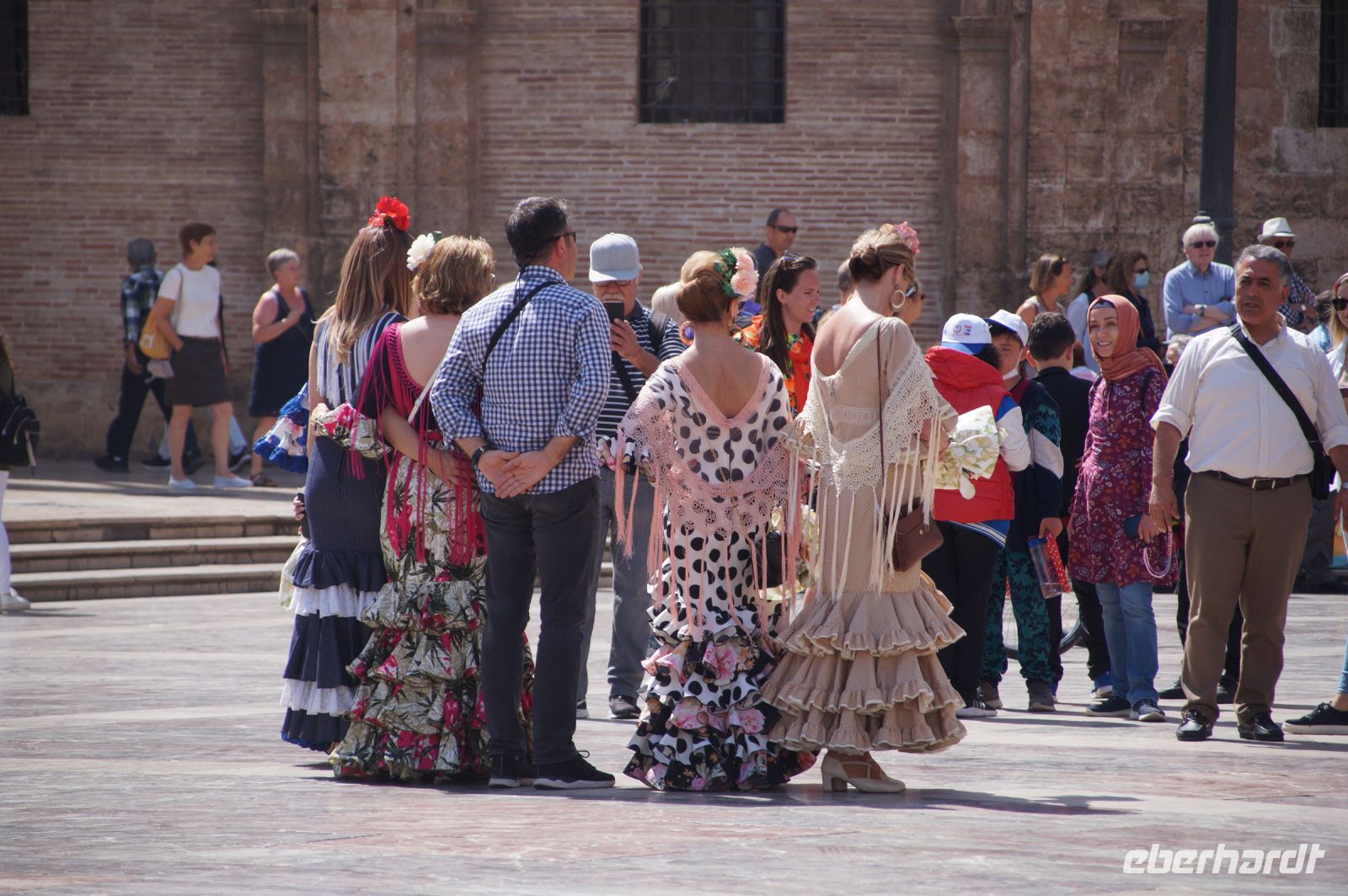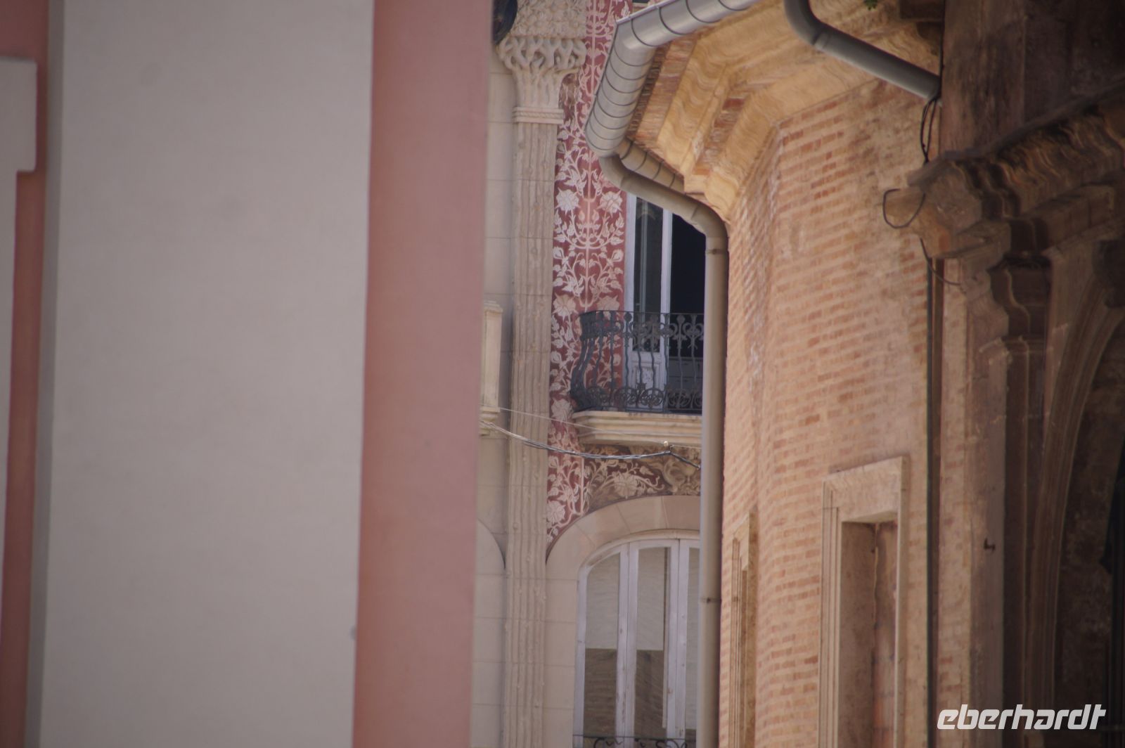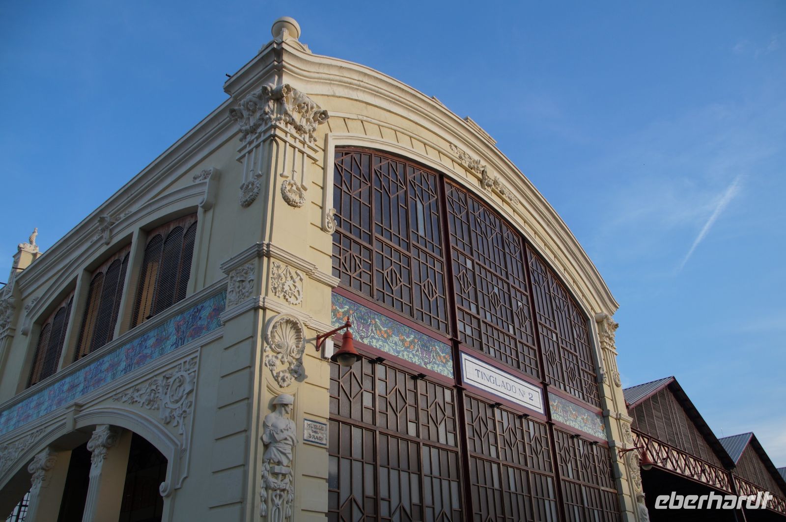 Neben Architektur aus der allerjüngsten Zeit sahen wir rund um den Hafen aber auch Lagerhäuser im Jugendstil, in denen früher die Orangen auf ihre Verschiffung warteten. Wir sahen Jugendstil in der Stadt und dann im Kontrast mittelalterliche Stadttore. An einem solchen, nach seinen beiden flankierenden Türmen Torres de Serranos genannt, stiegen wir aus und erschlossen uns die Stadt von hier aus zu Fuß. Recht schnell standen wir auf dem Jungfrauenplatz (Plaza de la Virgen) mit der barocken Basilika der Virgen de los Desamparados (Heilige Jungfrau der Hilfsbedürftigen), der man römische Inschriftensteine in die Fassade gesetzt hatte und der Kathedrale.