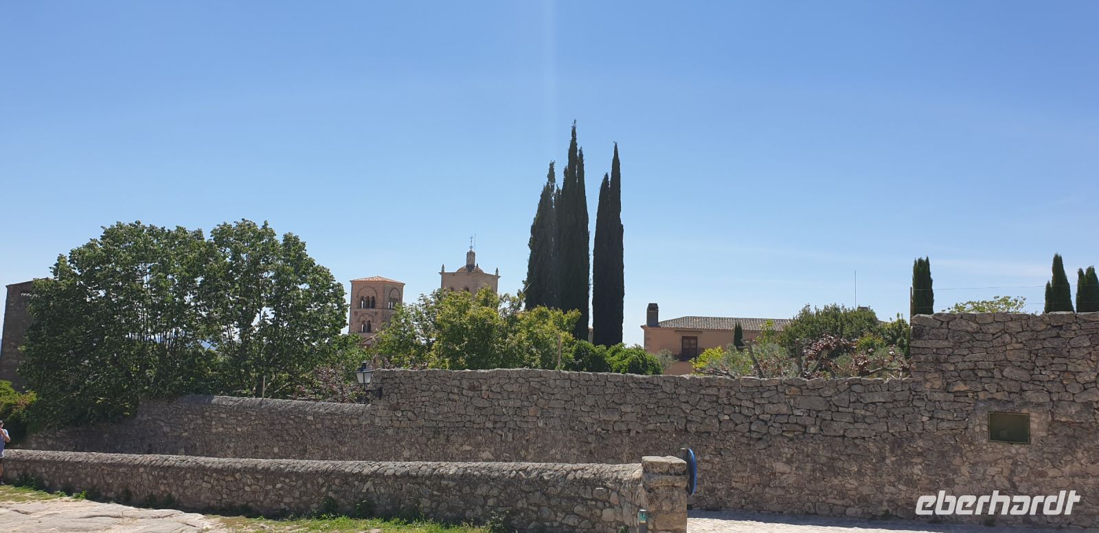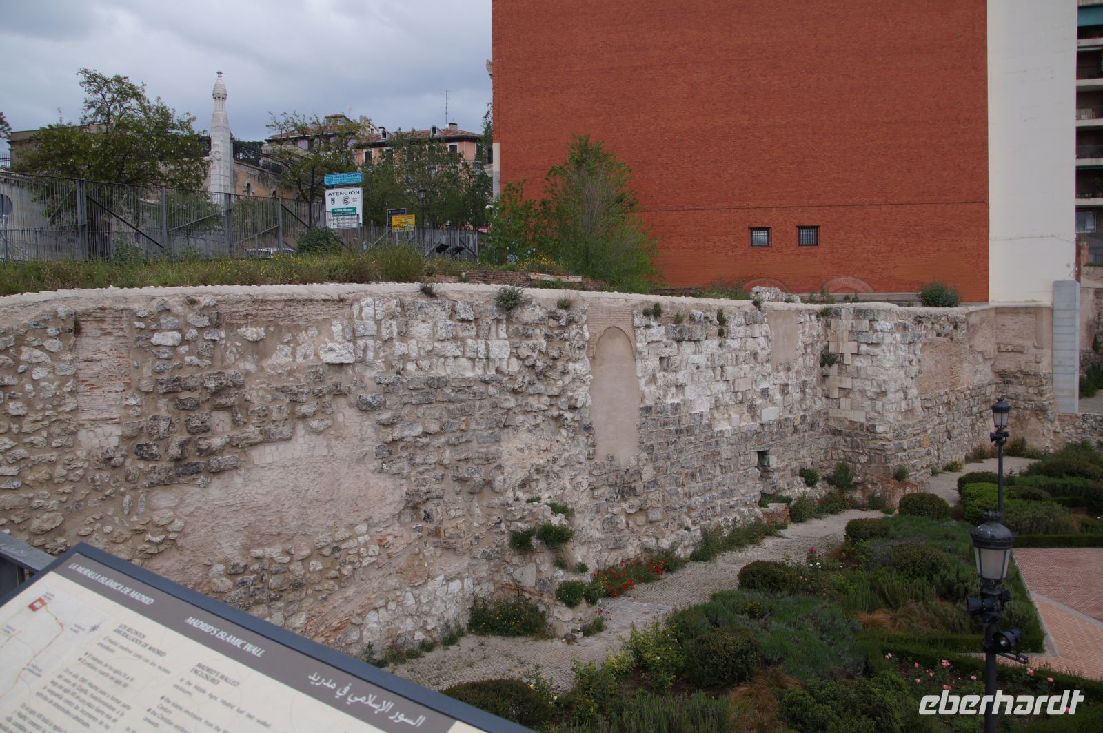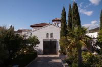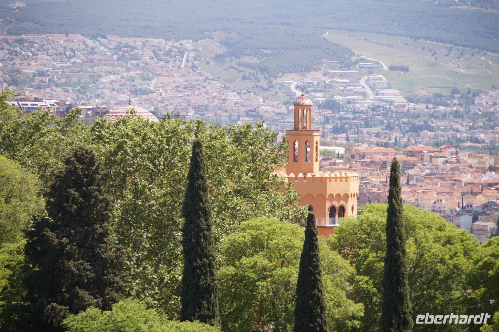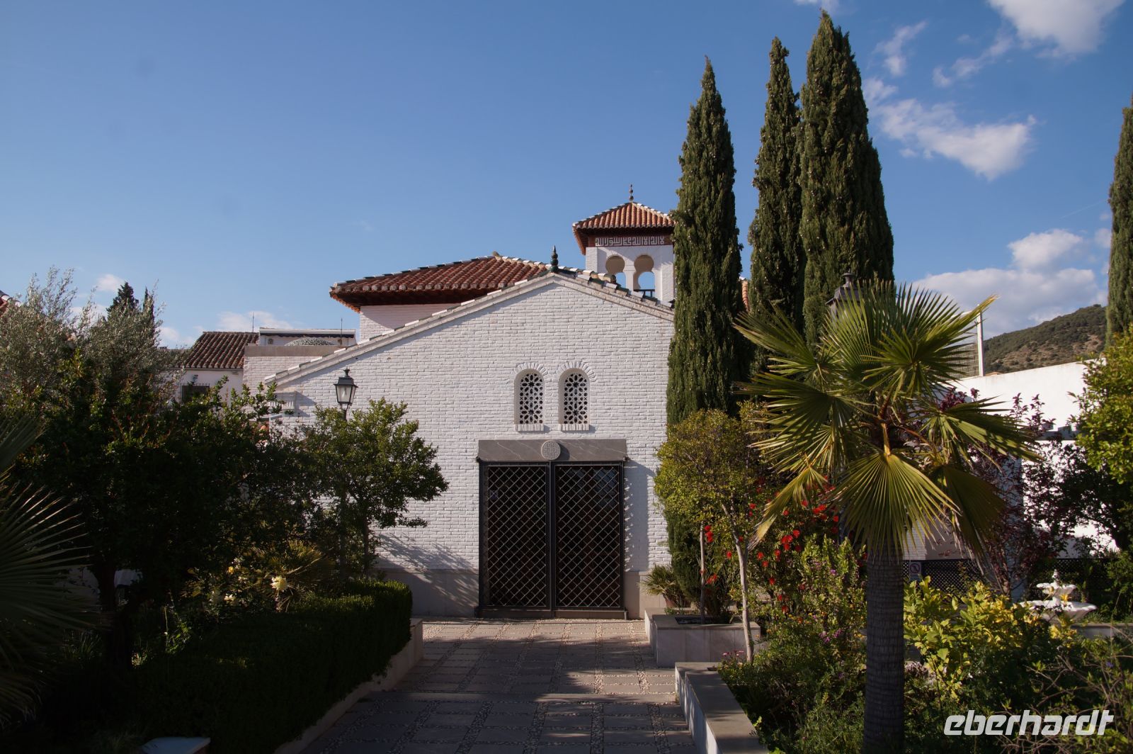 Normalerweise bitte ich die Busfahrer bei Ankunft in Granada am Mirador San Cristobal zu halten. Wir schauen dann von dort über die Altstadt rüber zur Alhambra und schauen uns noch den Aljibe (Brunnen) und die gleichnamige Kirche an, die teilweise aus Grabsteinen gemauert ist. Diesmal lag es nahe, dies bei der Abfahrt zu tun. Vom Aussichtspunkt selbst entfernten wir uns recht schnell, damit ein Hochzeitspaar sich ungestört fotografieren lassen konnte.