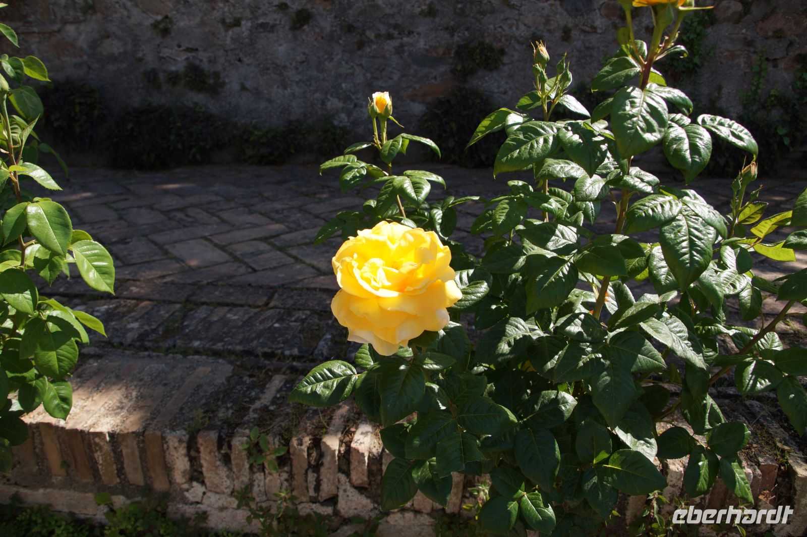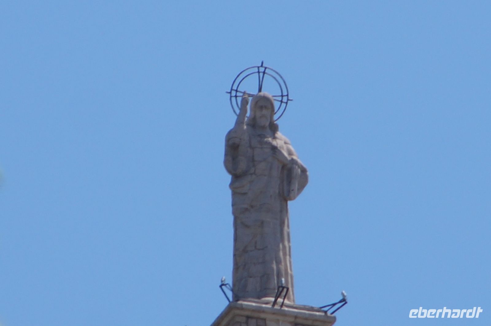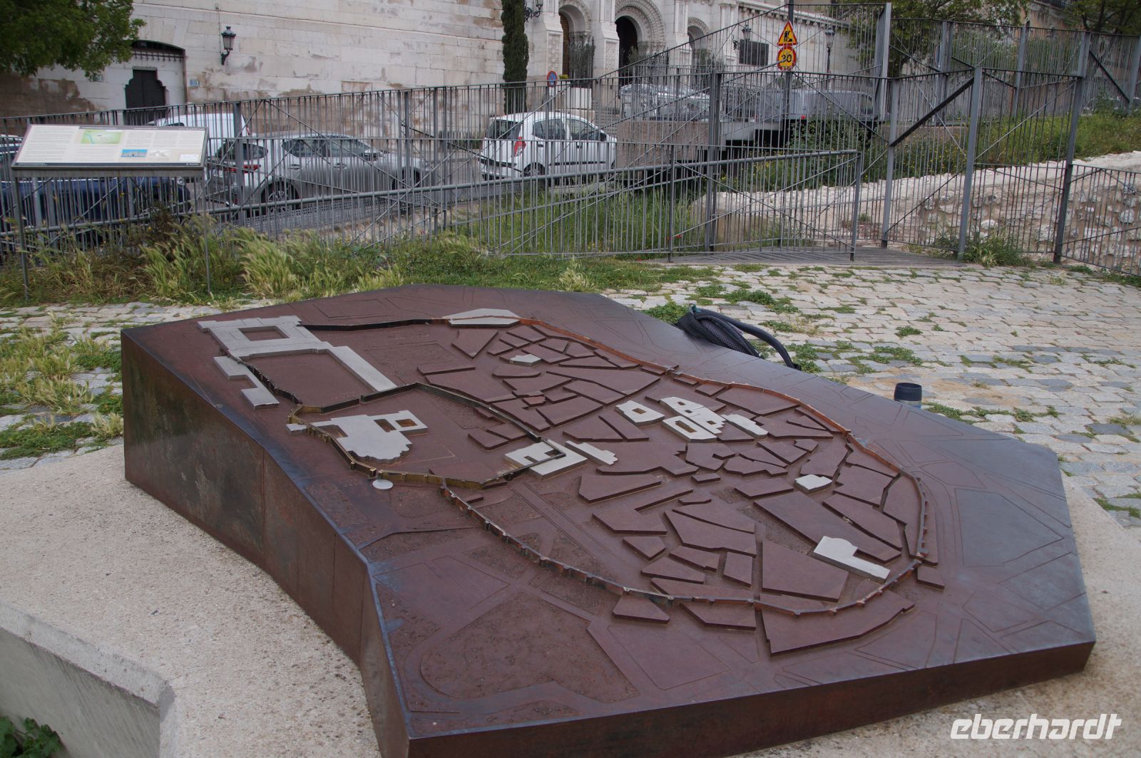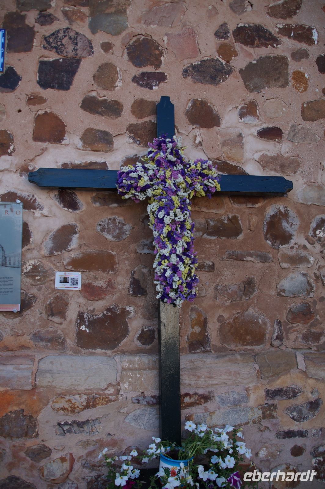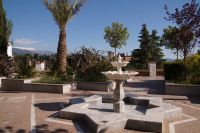 Normalerweise bitte ich die Busfahrer bei Ankunft in Granada am Mirador San Cristobal zu halten. Wir schauen dann von dort über die Altstadt rüber zur Alhambra und schauen uns noch den Aljibe (Brunnen) und die gleichnamige Kirche an, die teilweise aus Grabsteinen gemauert ist. Diesmal lag es nahe, dies bei der Abfahrt zu tun. Vom Aussichtspunkt selbst entfernten wir uns recht schnell, damit ein Hochzeitspaar sich ungestört fotografieren lassen konnte.