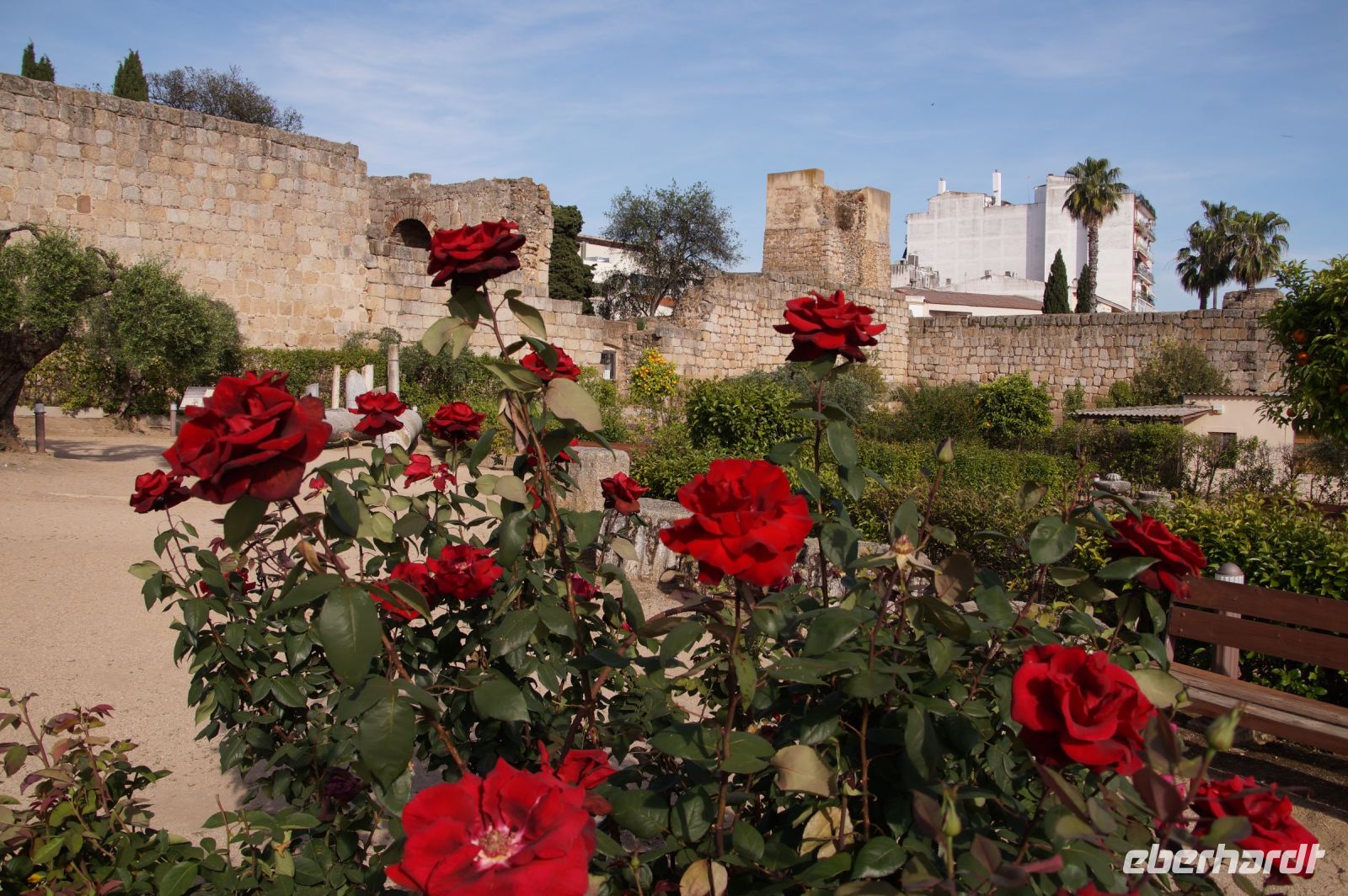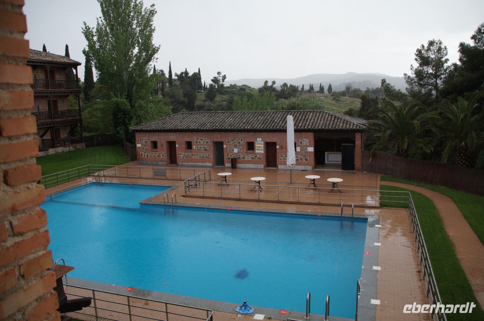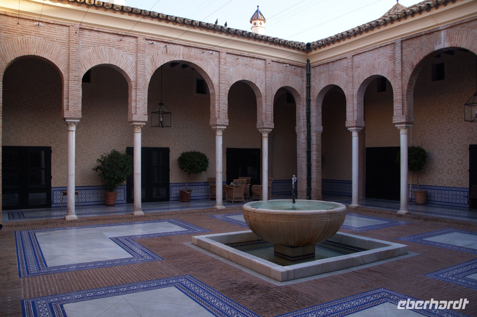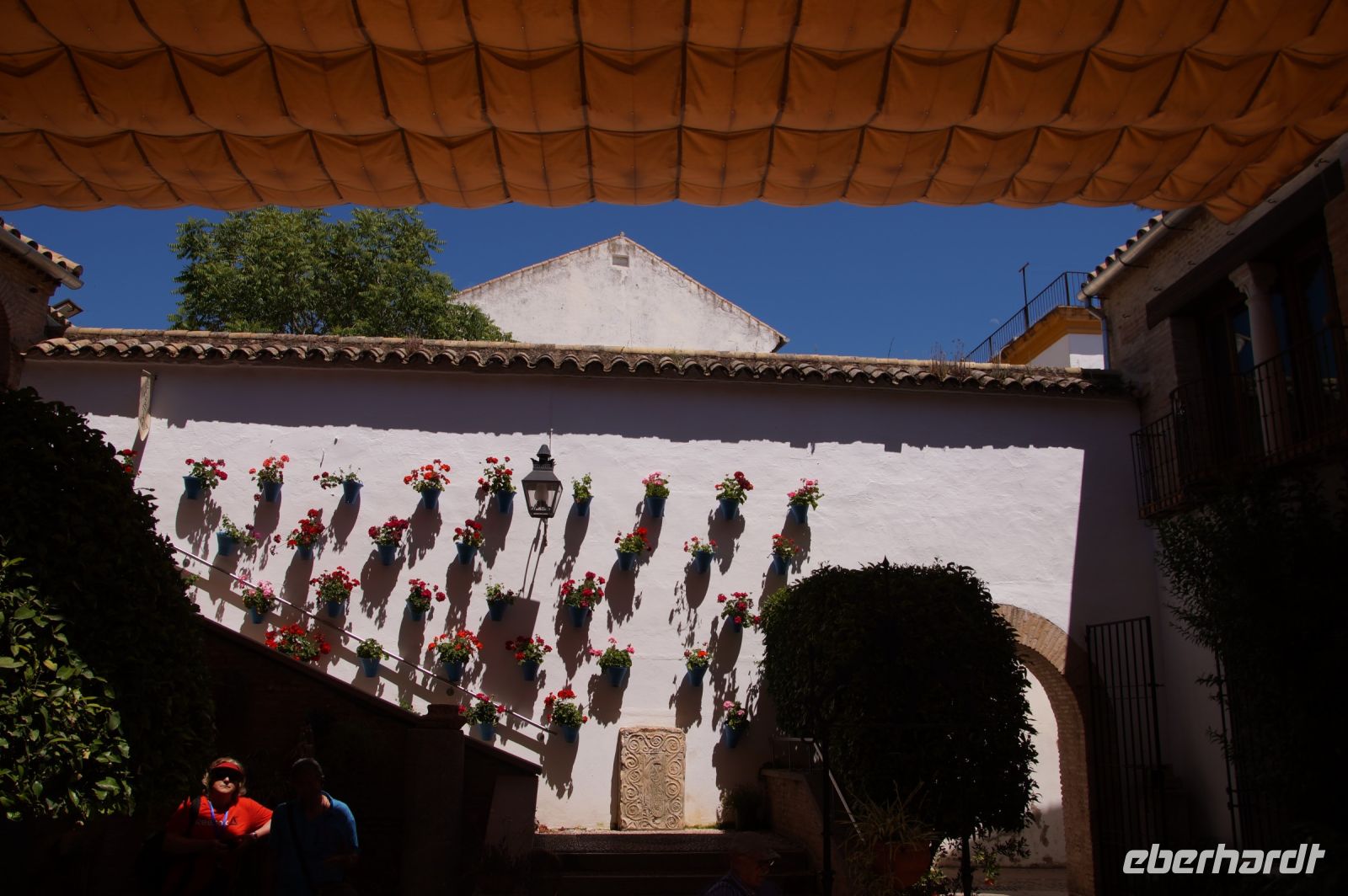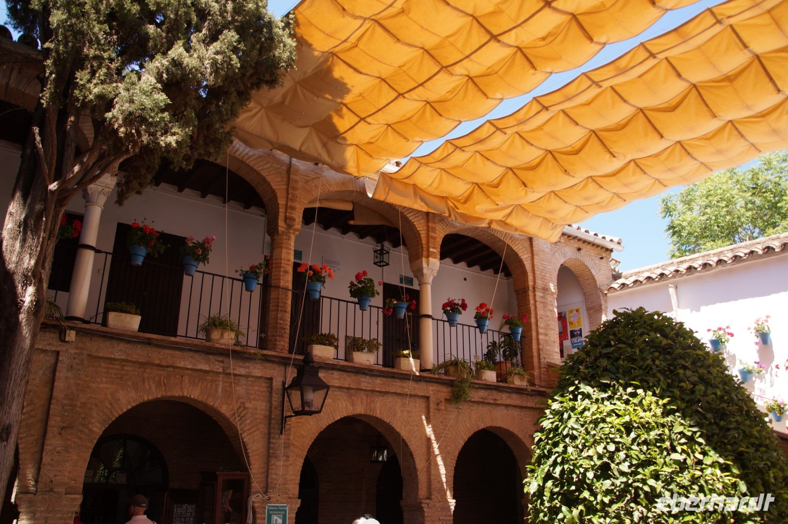 Nachdem wir uns von Inés verabschiedet hatten, überlegten wir kurz, was die weitere Planung sei, ob wir noch ein wenig Freizeit in Córdoba verbringen wollten oder lieber weiter nach Carmona fahren sollten. Nun, ein Thermometer zeigte 38° an (ein anderes "nur" 34°), kurz gesagt: Es war ein heißer Tag und so lautete der ziemlich einvernehmliche Gruppenentscheid: Auf zum Parador.