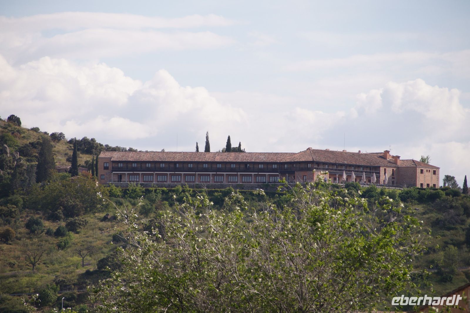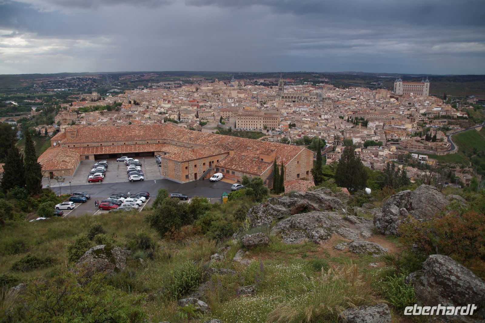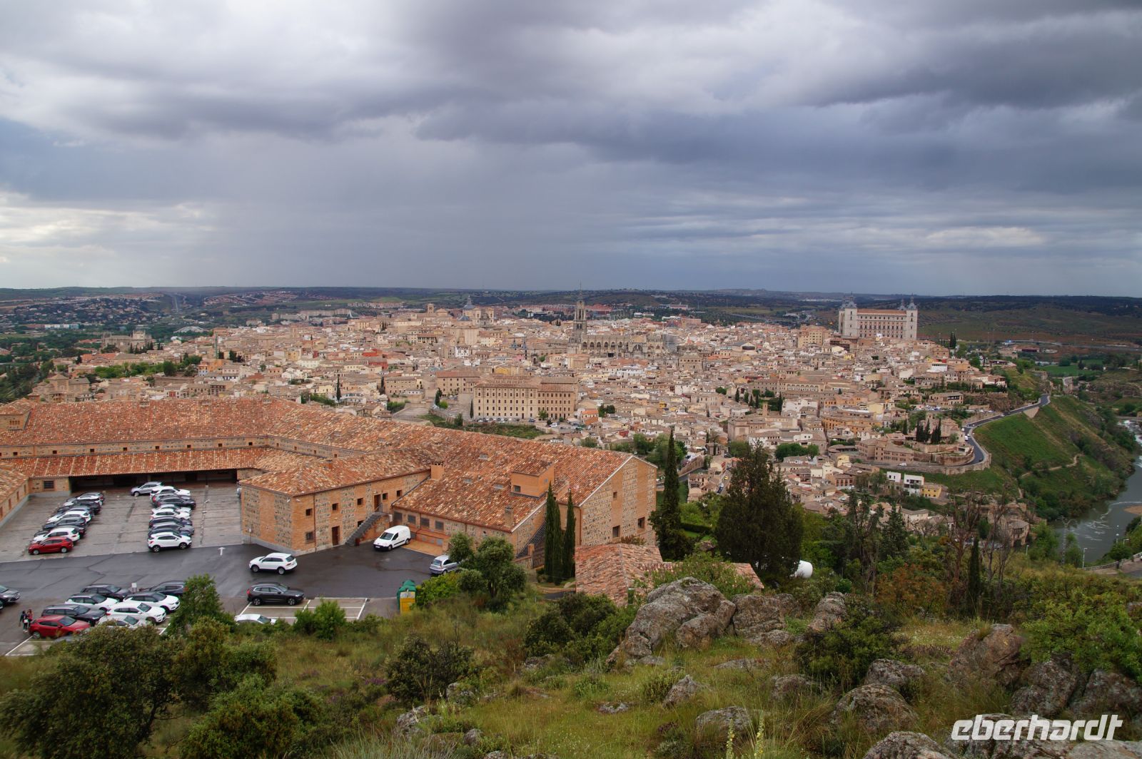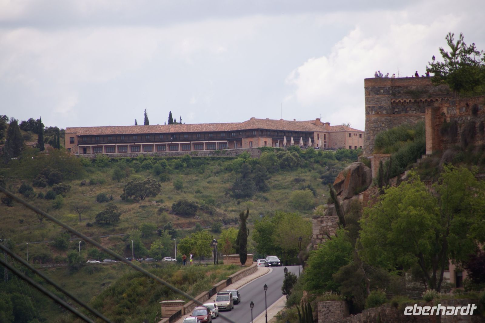 Der Parador von Toledo liegt über dem berühmten Mäander, der Toledo von drei Seiten umschließt. Man kann sich gut vorstellen, dass Domínikos Theotokópoulos - bekannter als "El Greco" - bei einer seiner Stadtansichten von Toledo hier mit seiner Staffelei gesessen und das imposante Panorama genossen hat (dem ist natürlich nicht so, denn er malte die Stadt von Osten und nicht von Süden gesehen). Von ihm sind im Parador Jesus und die zwölf Apostel zu bewundern.