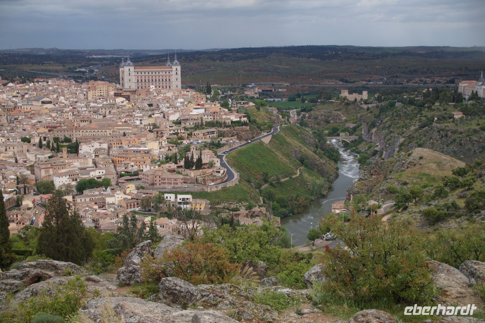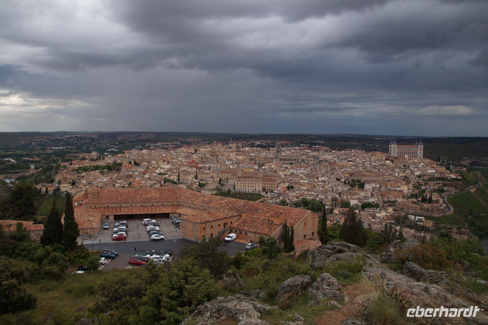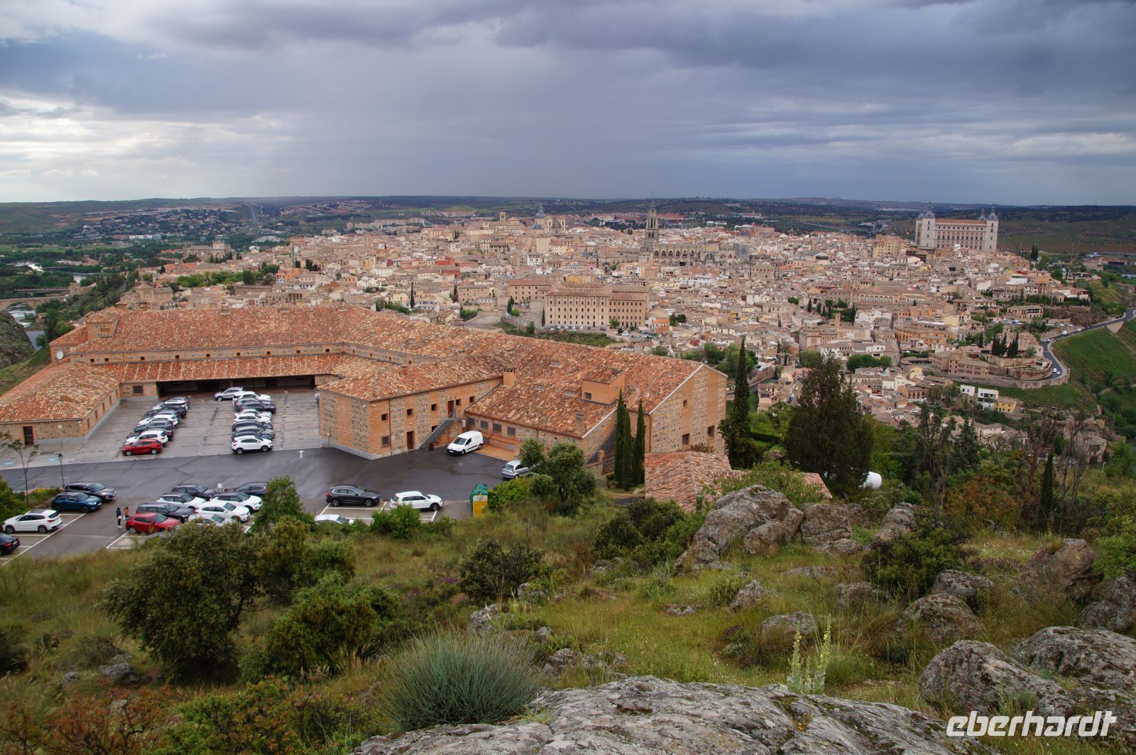 Der Parador von Toledo liegt über dem berühmten Mäander, der Toledo von drei Seiten umschließt. Man kann sich gut vorstellen, dass Domínikos Theotokópoulos - bekannter als "El Greco" - bei einer seiner Stadtansichten von Toledo hier mit seiner Staffelei gesessen und das imposante Panorama genossen hat (dem ist natürlich nicht so, denn er malte die Stadt von Osten und nicht von Süden gesehen). Von ihm sind im Parador Jesus und die zwölf Apostel zu bewundern.