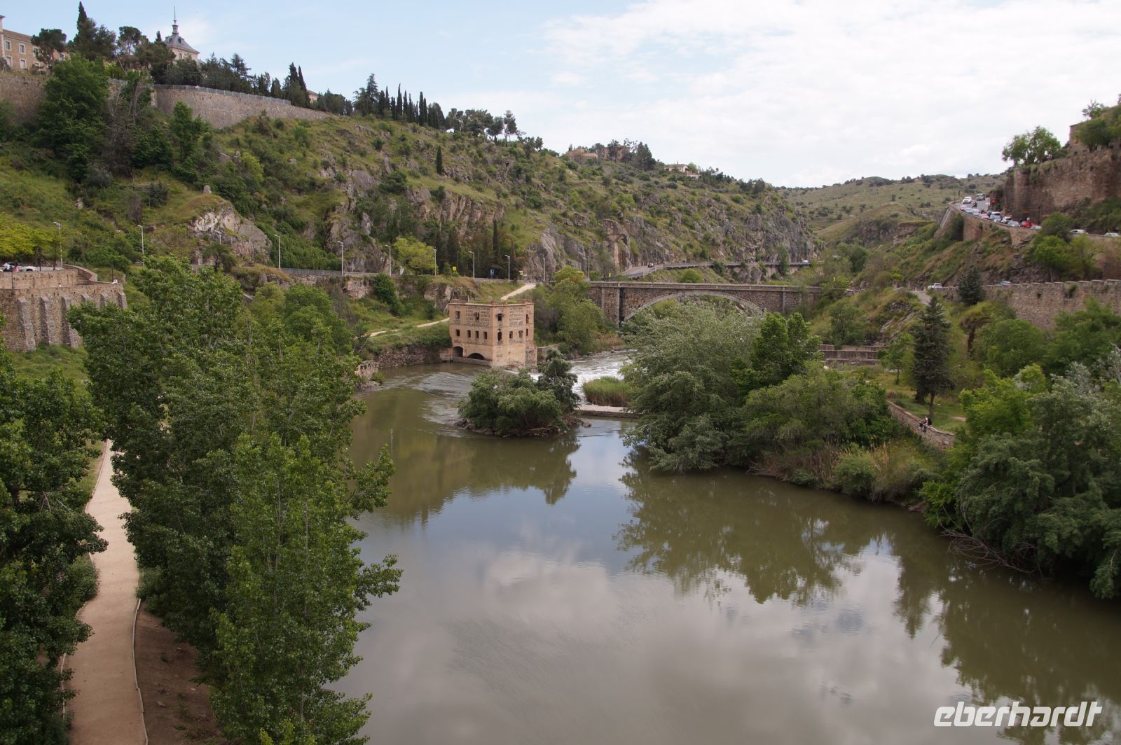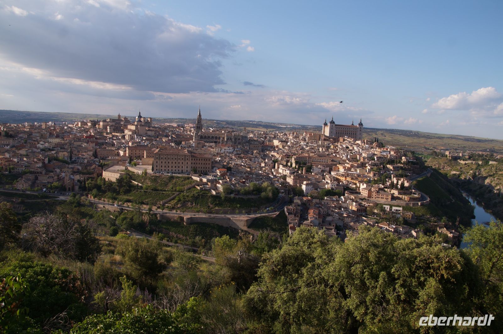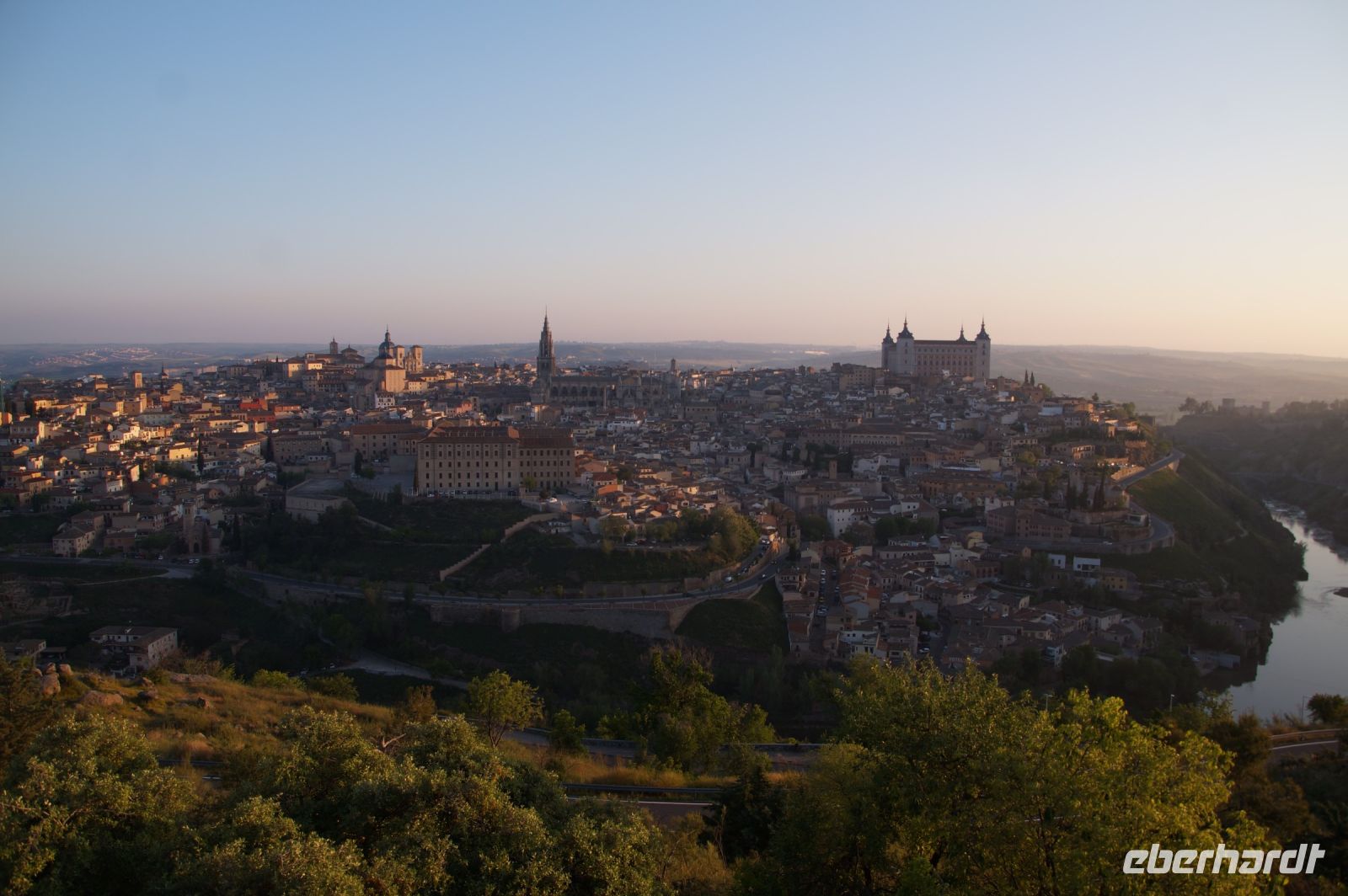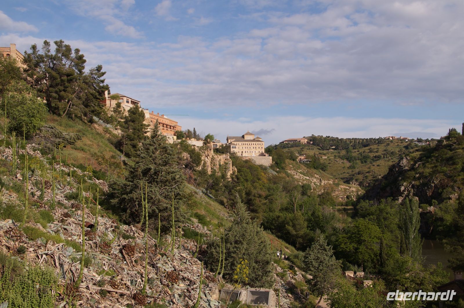Der Parador von Toledo liegt über dem berühmten Mäander, der Toledo von drei Seiten umschließt. Man kann sich gut vorstellen, dass Domínikos Theotokópoulos - bekannter als "El Greco" - bei einer seiner Stadtansichten von Toledo hier mit seiner Staffelei gesessen und das imposante Panorama genossen hat (dem ist natürlich nicht so, denn er malte die Stadt von Osten und nicht von Süden gesehen). Von ihm sind im Parador Jesus und die zwölf Apostel zu bewundern.