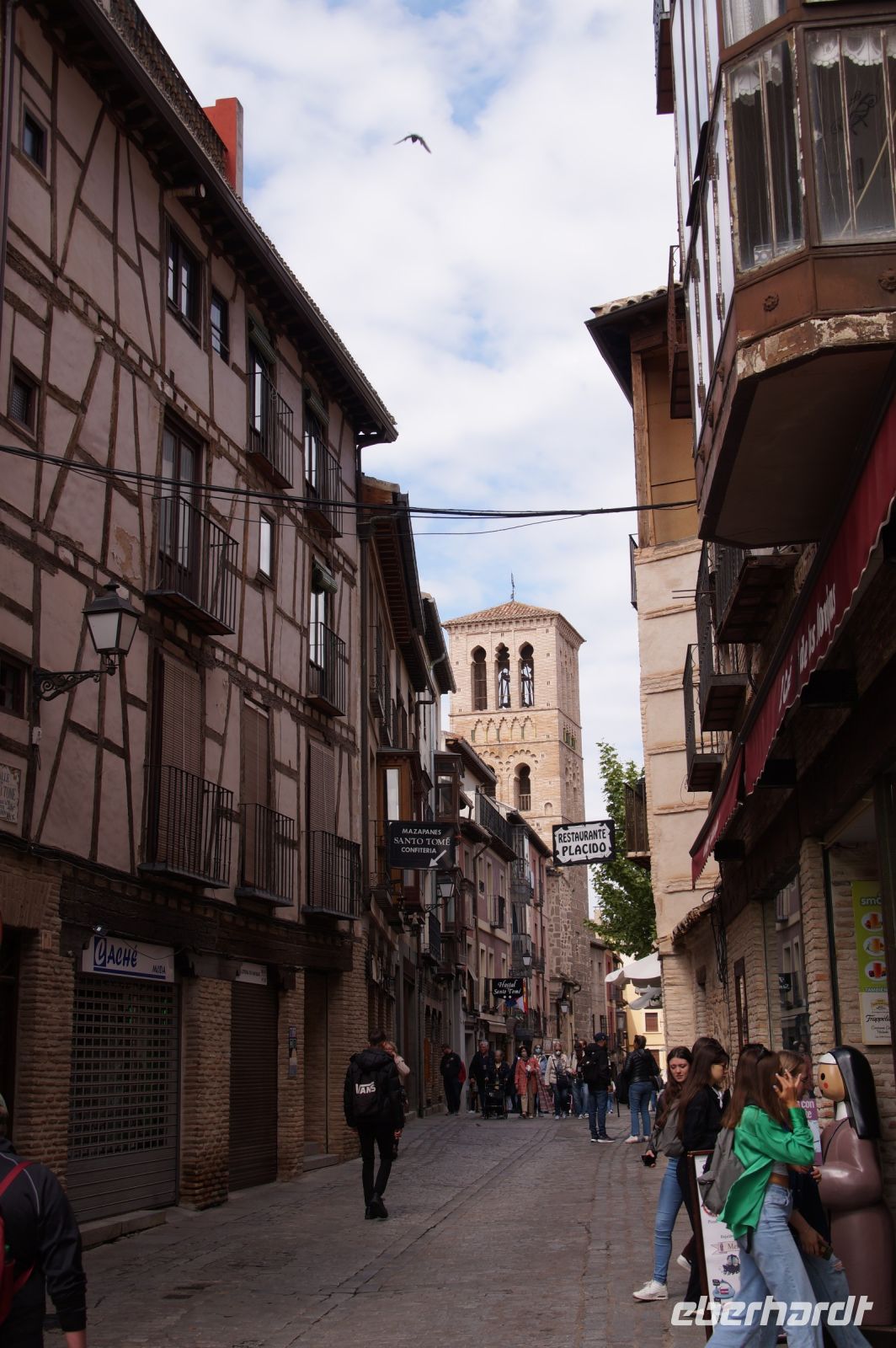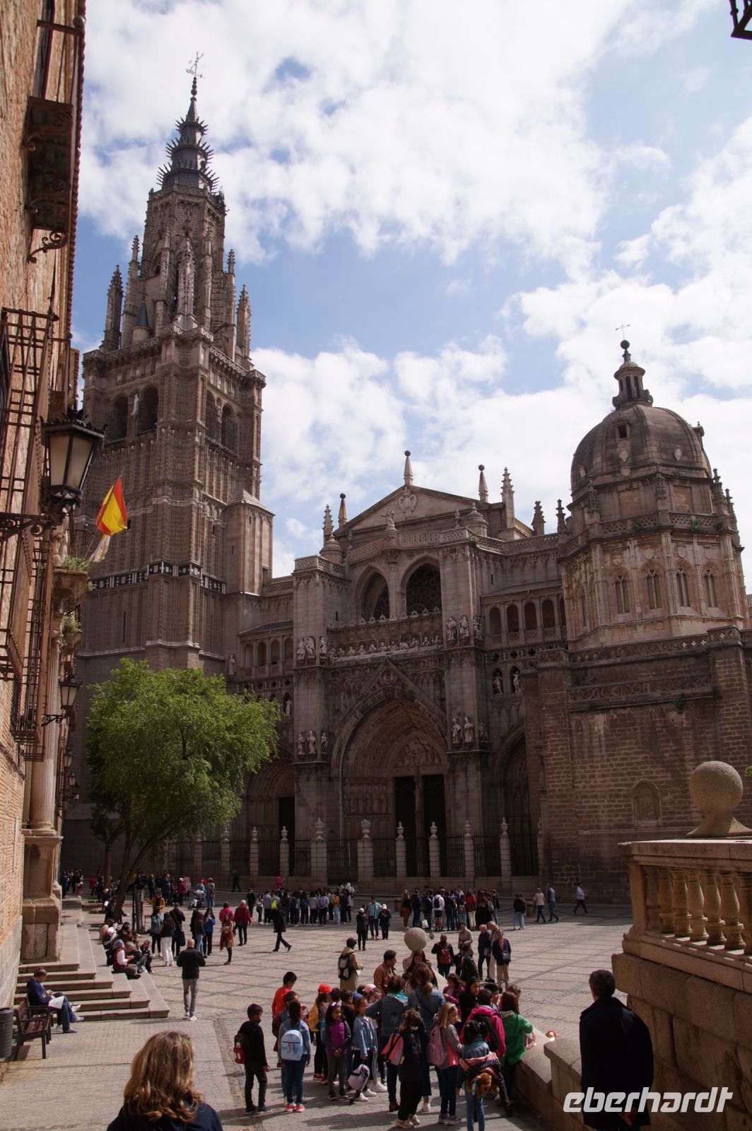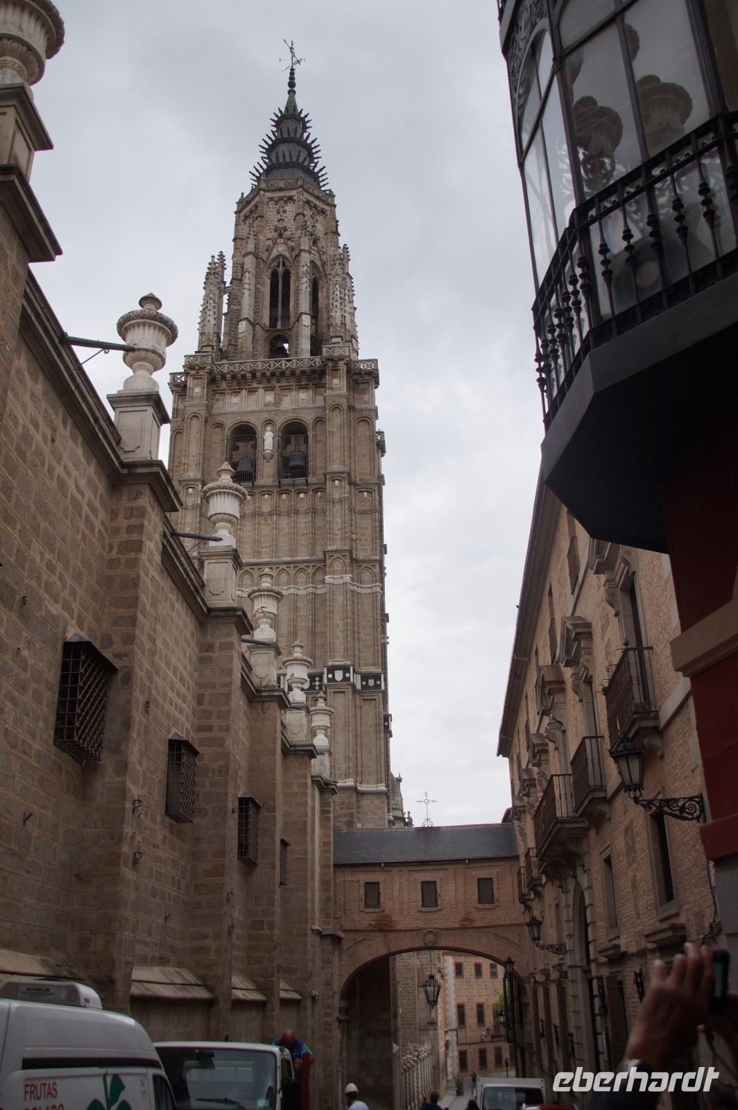Wir folgten nun der Calle Ancha ('Breite Straße') bis zur Kathedrale, immer begleitet von Mazapán-Läden (ja klar, Marzipan) und Läden mit Messern sowie Hieb- und Stichwaffen angeblich aus toledanischem Stahl - leider macht die Verkitschung selbst hiervor nicht halt und man hätte leicht ein Schwert oder eine Streitaxt für die nächste "Herr der Ringe"-Party oder "Game of Thrones"-Fete erwerben können. Aber bitte nicht im Handgepäck mit nach Deutschland nehmen, das könnte Probleme am Flughafen geben und beim Zoll zu erheblicher Nervosität führen.