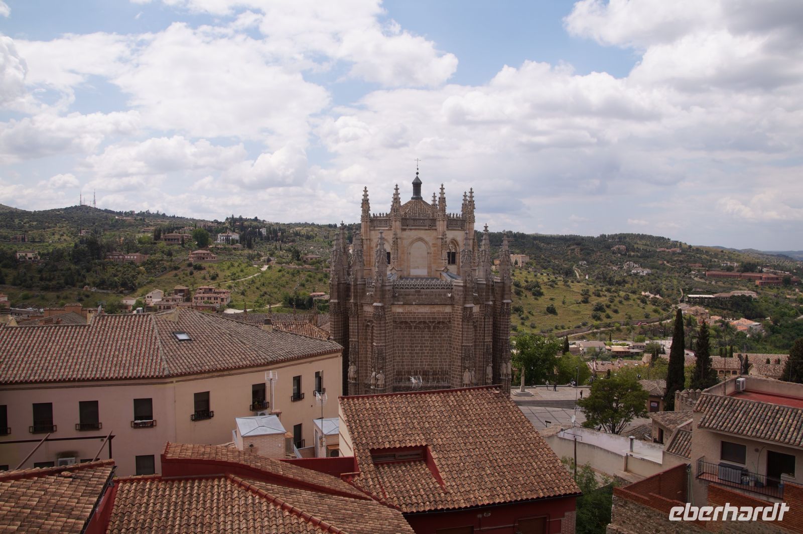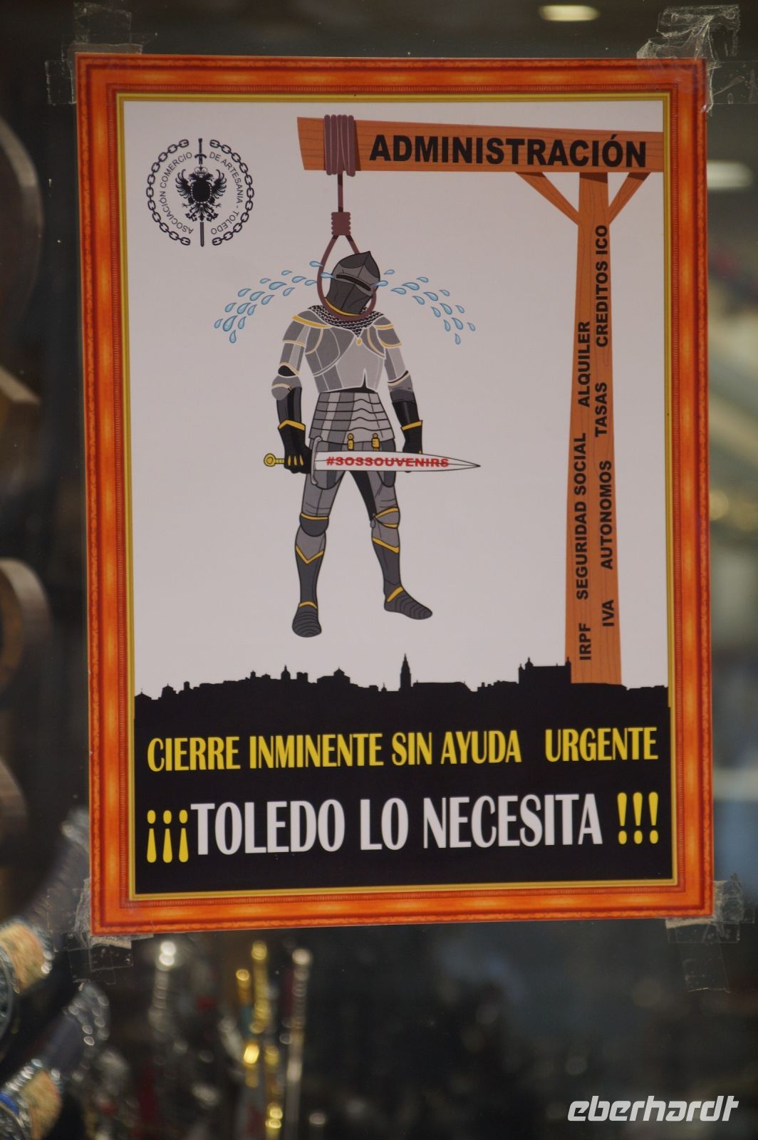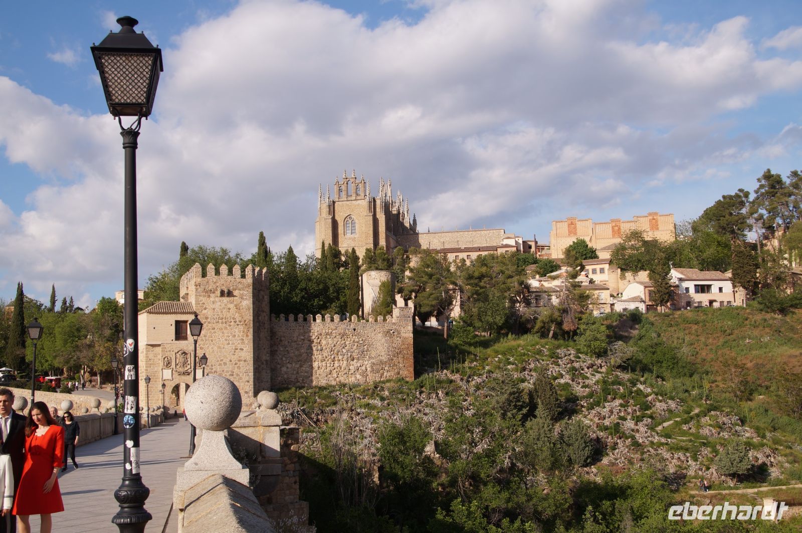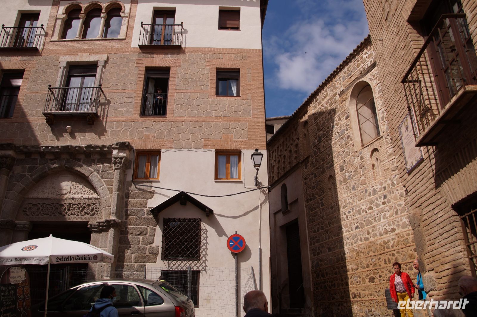 Wir folgten nun der Calle Ancha ('Breite Straße') bis zur Kathedrale, immer begleitet von Mazapán-Läden (ja klar, Marzipan) und Läden mit Messern sowie Hieb- und Stichwaffen angeblich aus toledanischem Stahl - leider macht die Verkitschung selbst hiervor nicht halt und man hätte leicht ein Schwert oder eine Streitaxt für die nächste "Herr der Ringe"-Party oder "Game of Thrones"-Fete erwerben können. Aber bitte nicht im Handgepäck mit nach Deutschland nehmen, das könnte Probleme am Flughafen geben und beim Zoll zu erheblicher Nervosität führen.