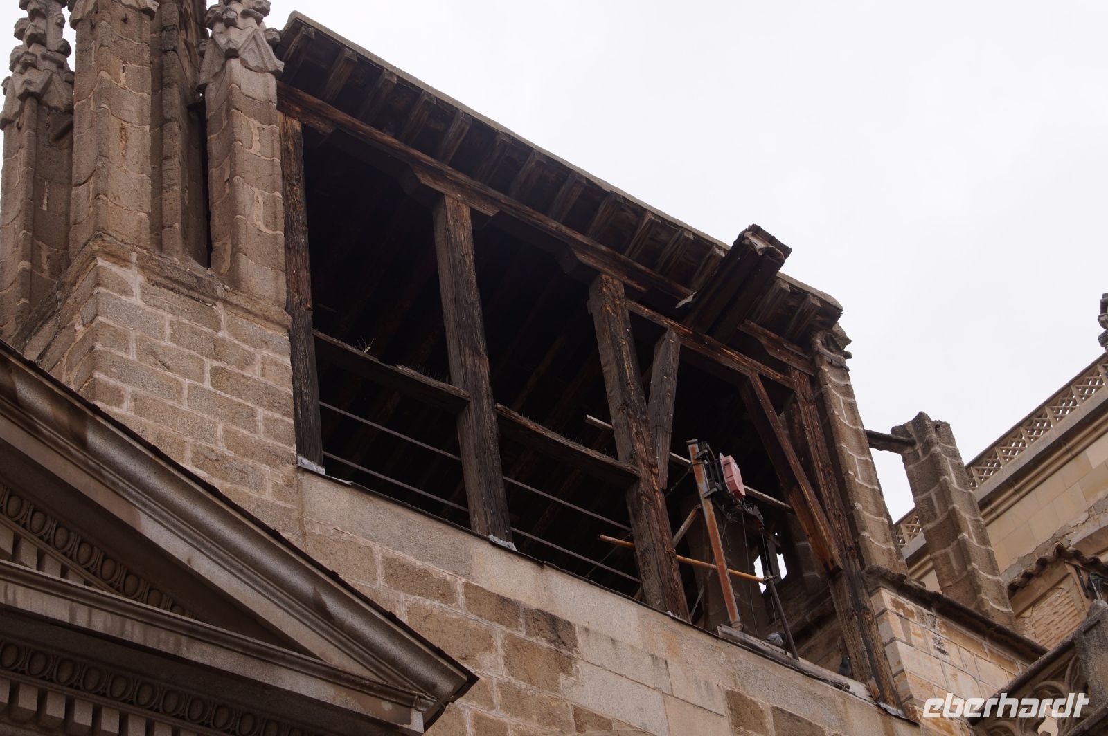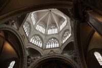 Von der Kathedrale erfuhren wir aus ihrer Baugeschichte, dass sie zu den ältesten gotischen Kathedralen in Spanien gehöre und eine von zwei gotischen Kathedralen in Spanien gewesen sei im normannischen Stil. Dann sei ihre Fassade aber im Renaissance-Stil neu errichtet und schließlich barockisiert worden. Als es 1903 zu einem Unglück kam - der schon oft vom Blitz getroffenen Glockenturm stürzte ein - bedingte sich der für den Wiederaufbau engagierte Stararchitekt aus, die ursprüngliche gotische Fassade im normannischen Stil wiederaufzubauen. Die Alte Fassade wurde abgerissen und eine neogotische wieder aufgezogen, aber nie vollendet. Das auch an der Stelle des Glockenturms nach wie vor eine Lücke klafft, versteht sich da fast von selbst.