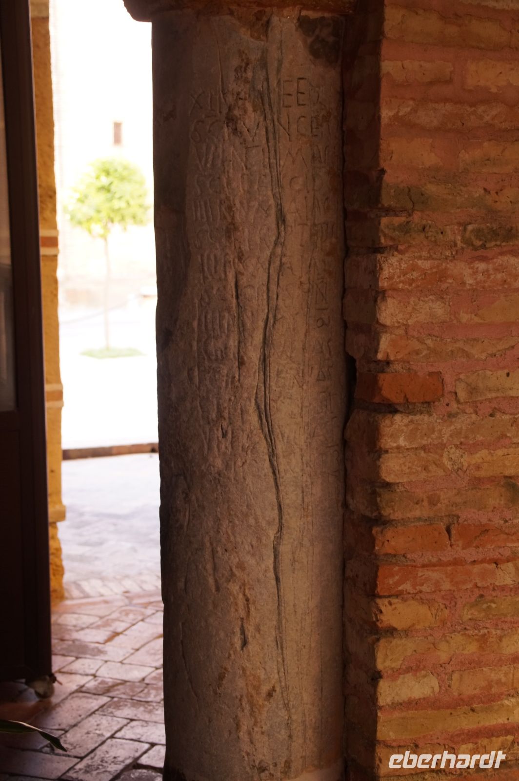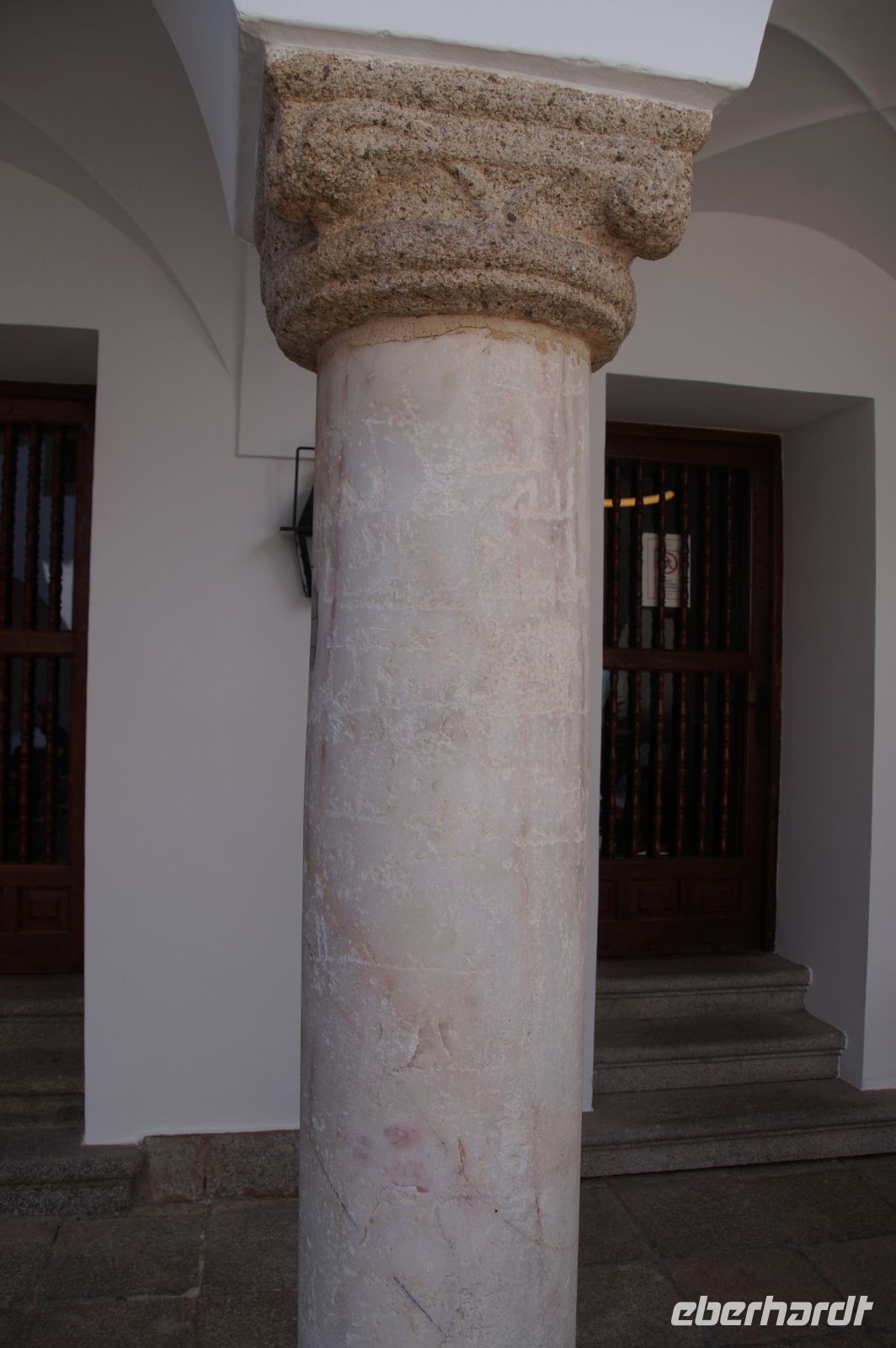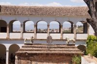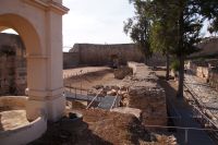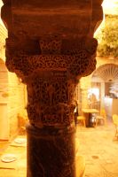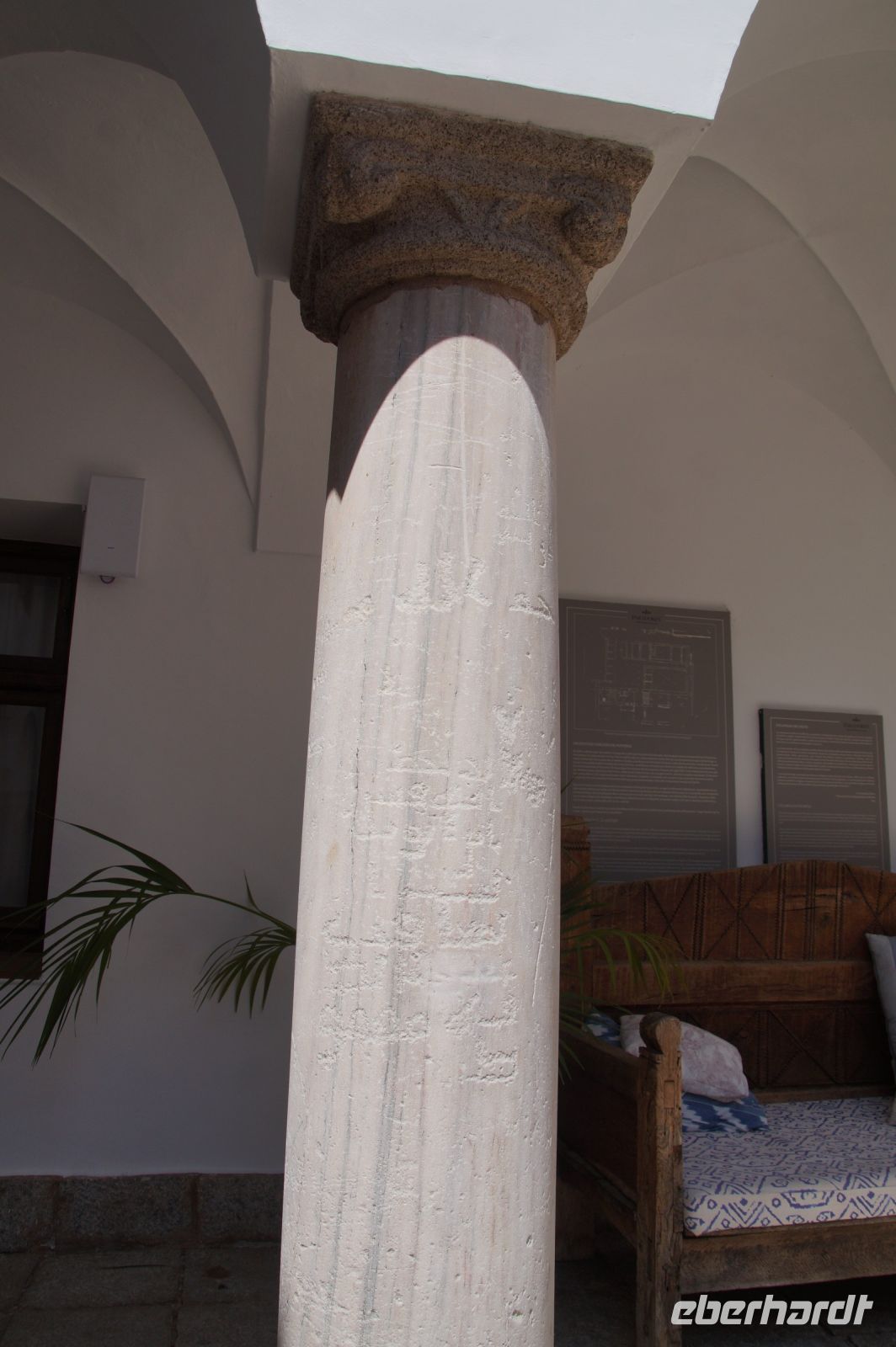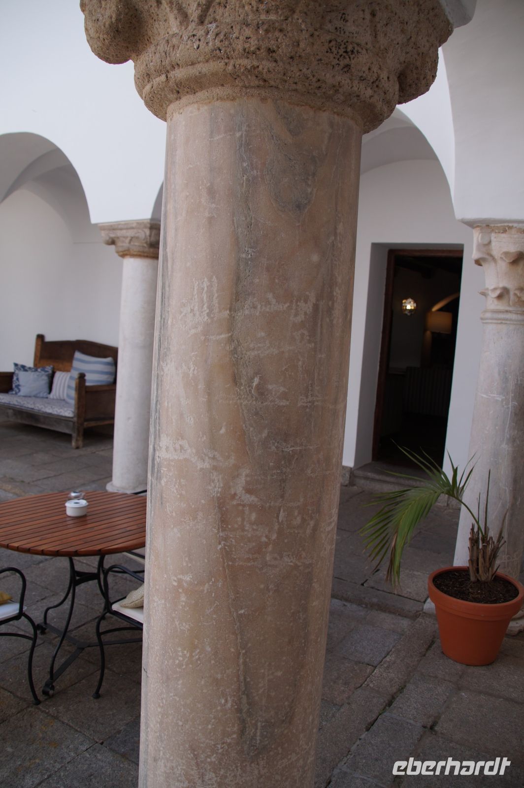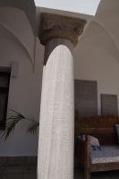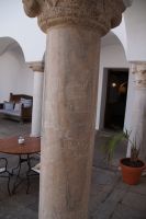 In diesem Innenhof waren - vermutlich alte römische - Säulen verbaut, die arabische (teils auf dem Kopf) und auch frühneuzeitliche Inschriften trugen, sie sind also offenbar zwei Mal als Spolien (archäologischer Begriff für bearbeitete Baumaterialen in Zweitverwendung) gebraucht worden, einmal in einem Kontext vielleicht von Grabdenkmälern, dann wieder in dem kleinen Atrium des Konvents.