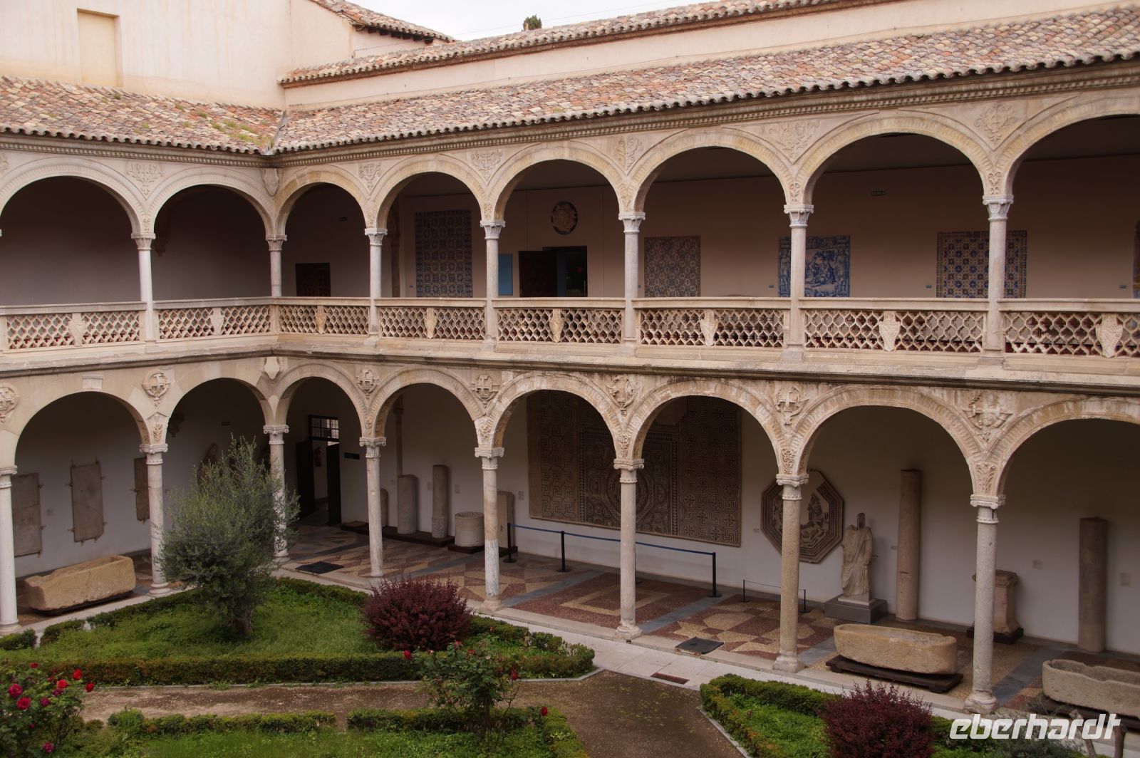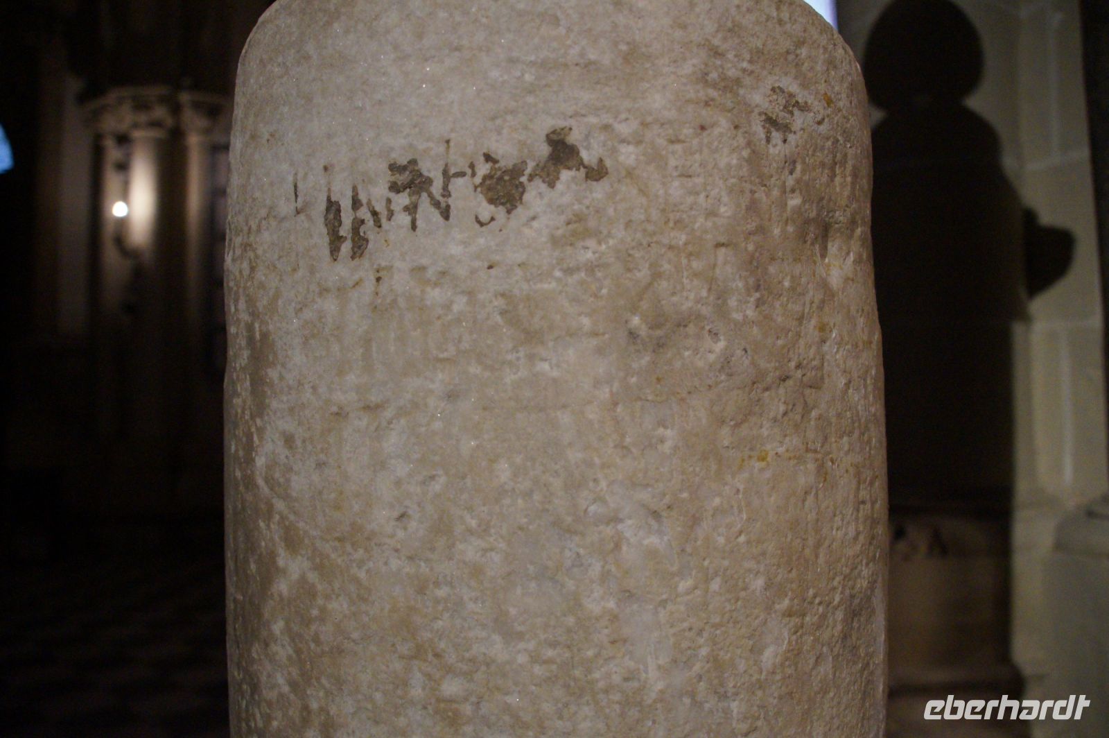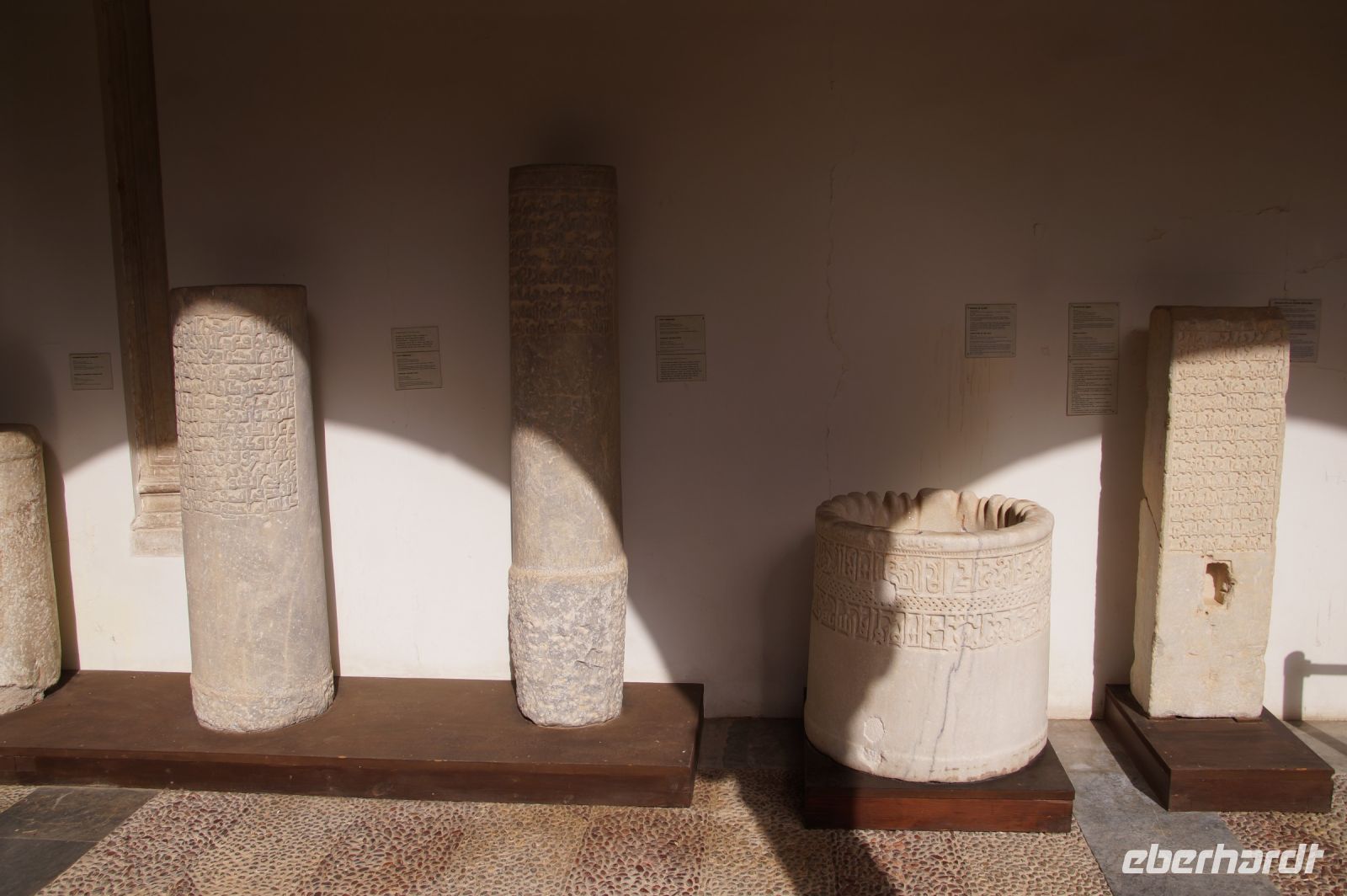 In diesem Innenhof waren - vermutlich alte römische - Säulen verbaut, die arabische (teils auf dem Kopf) und auch frühneuzeitliche Inschriften trugen, sie sind also offenbar zwei Mal als Spolien (archäologischer Begriff für bearbeitete Baumaterialen in Zweitverwendung) gebraucht worden, einmal in einem Kontext vielleicht von Grabdenkmälern, dann wieder in dem kleinen Atrium des Konvents.