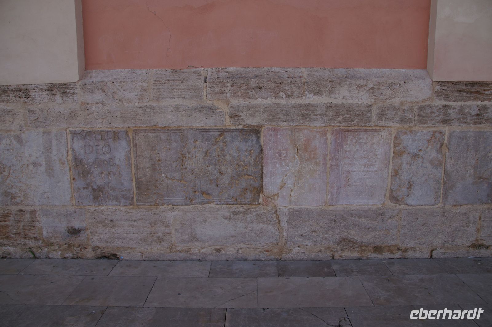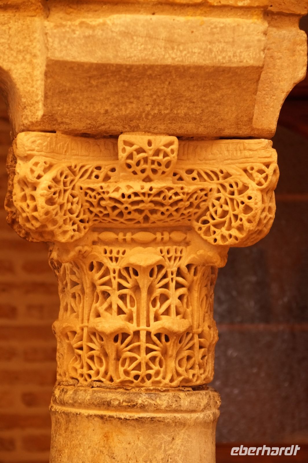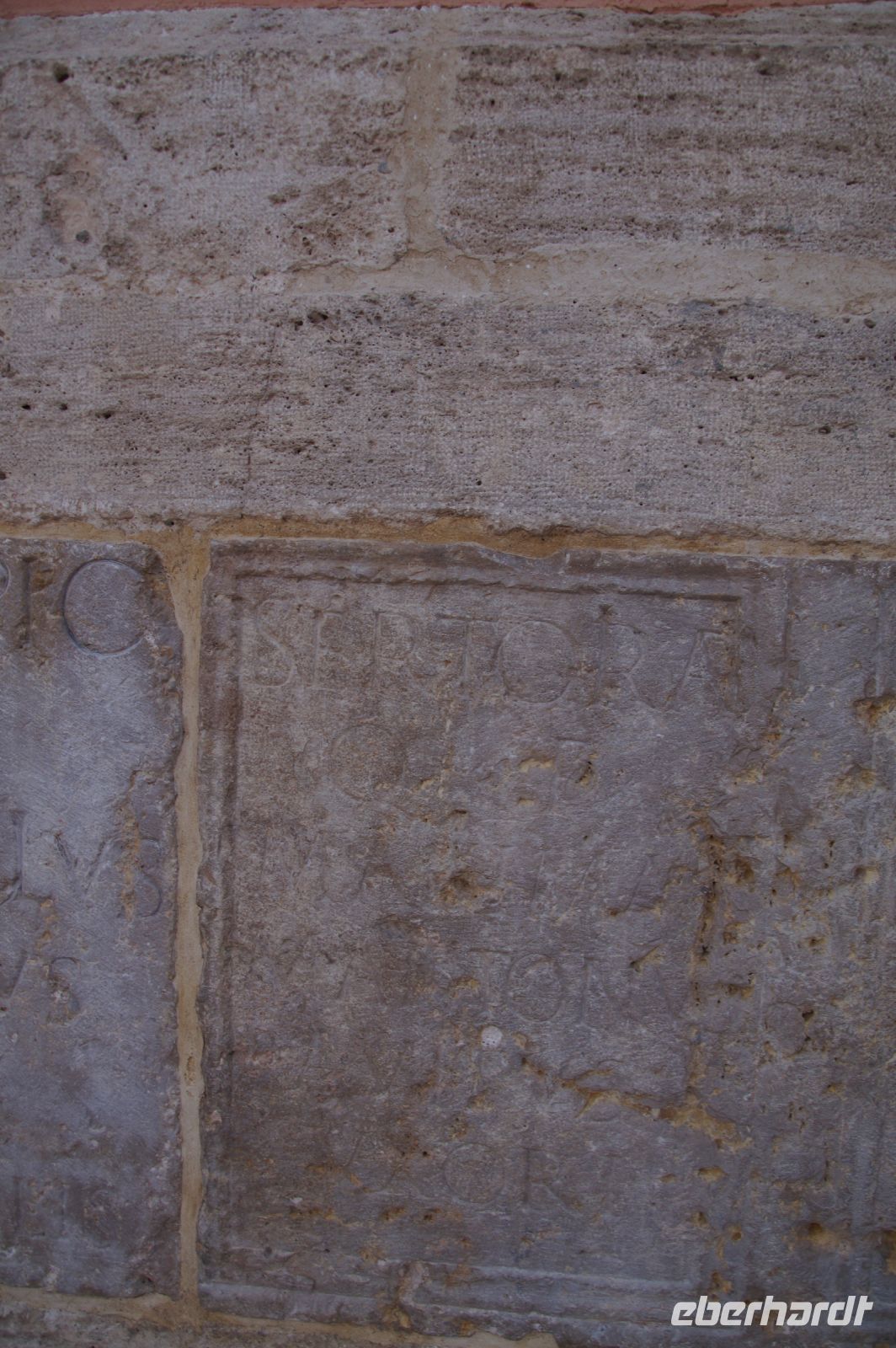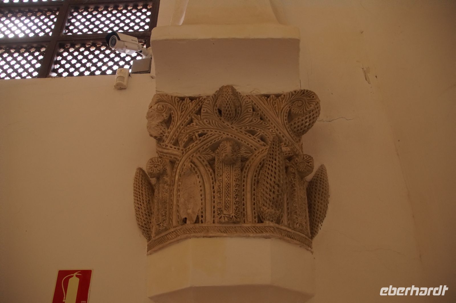 In diesem Innenhof waren - vermutlich alte römische - Säulen verbaut, die arabische (teils auf dem Kopf) und auch frühneuzeitliche Inschriften trugen, sie sind also offenbar zwei Mal als Spolien (archäologischer Begriff für bearbeitete Baumaterialen in Zweitverwendung) gebraucht worden, einmal in einem Kontext vielleicht von Grabdenkmälern, dann wieder in dem kleinen Atrium des Konvents.