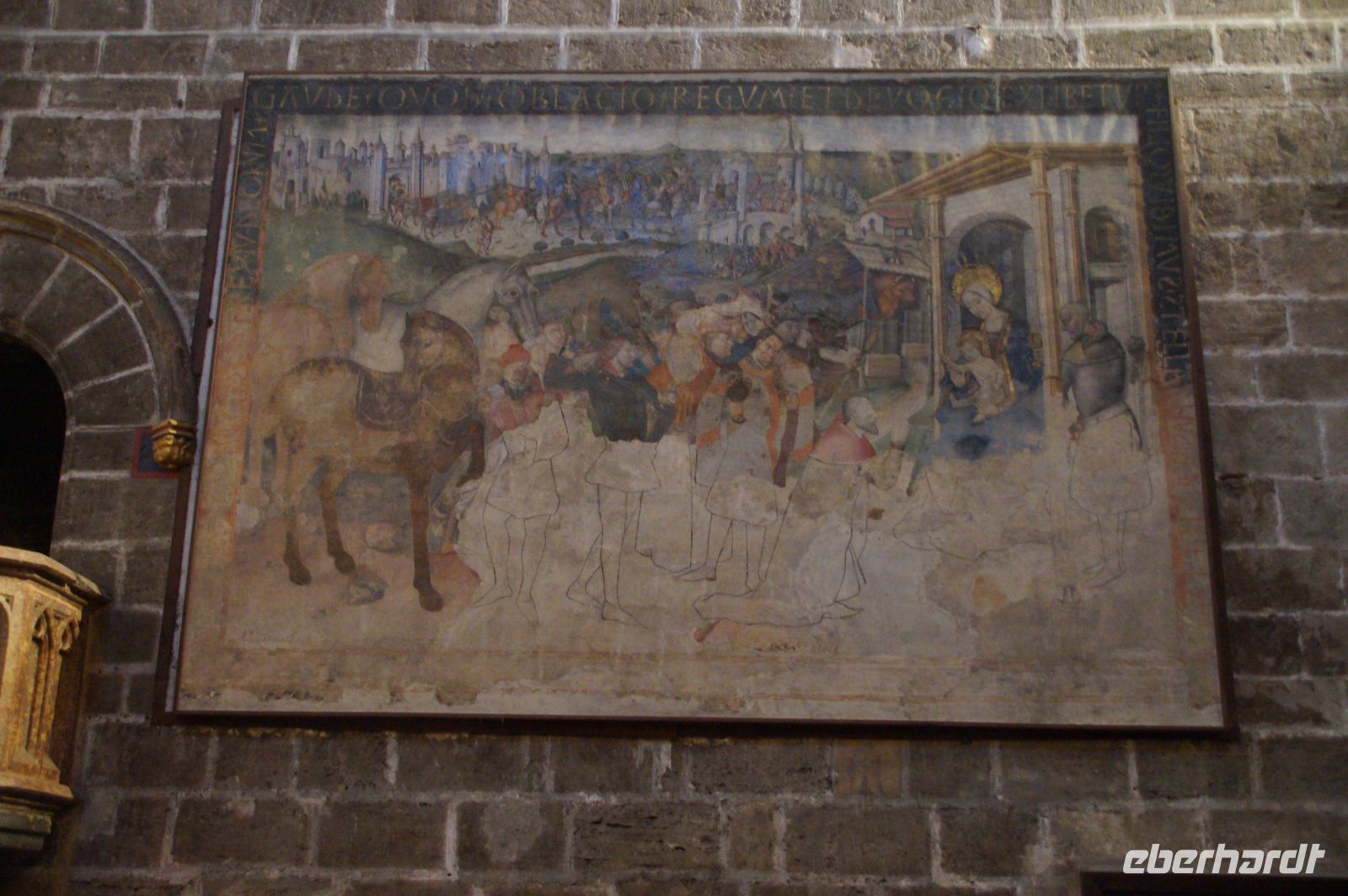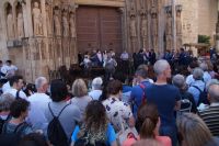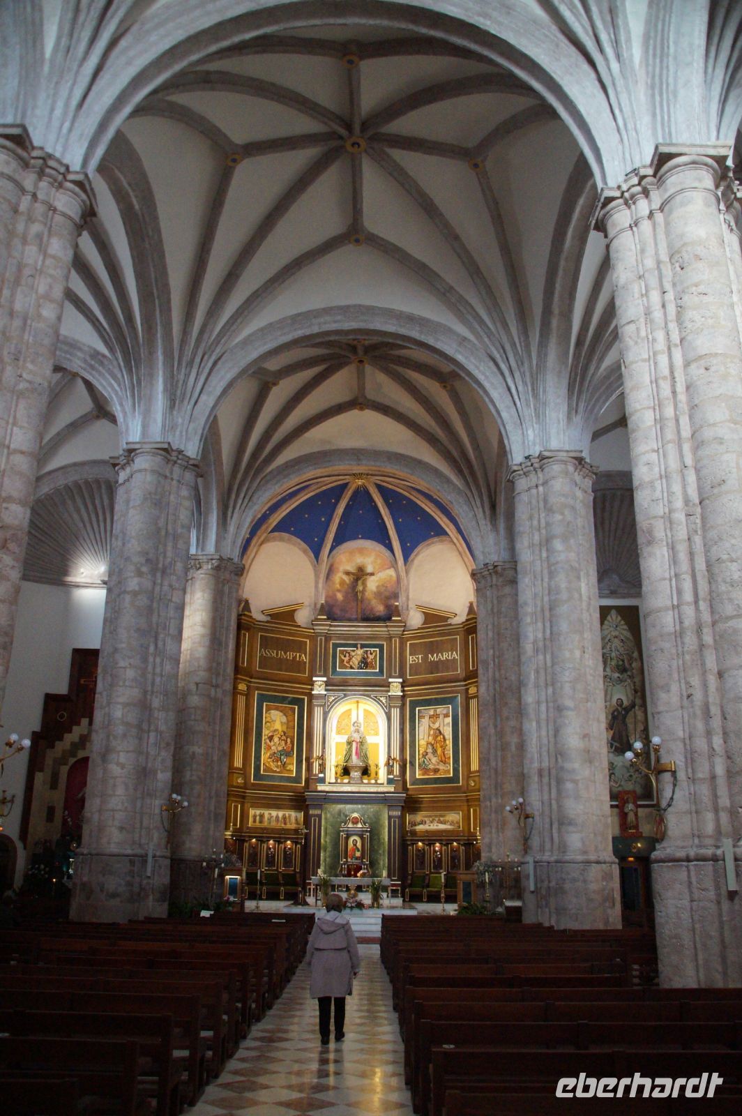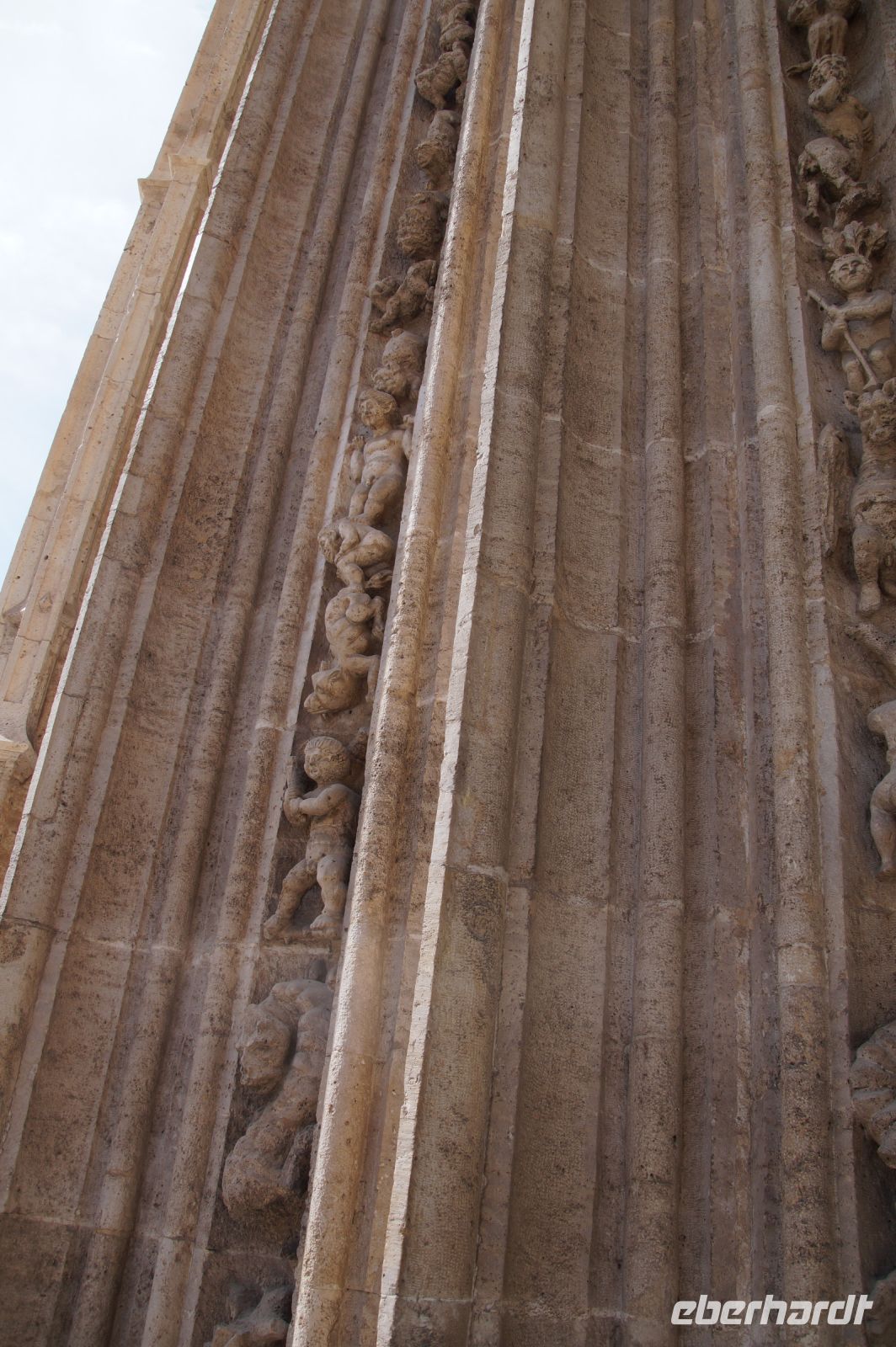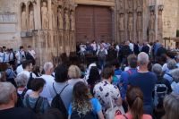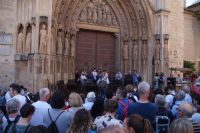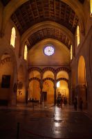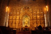 Mit den letzten Laufwilligen machte ich vor dem Abendessen noch einen kleinen Sonntagsspaziergang durch die Stadt, wobei wir auch an Santa María la Mayor vorbeikamen, deren Nebeneingang unüblicher Weise offen stand. Es wurde gerade die Messe zelebriert und so umrundeten wir die Kirche und betraten den ehemaligen Sa-h-n, wo ich eine gotische Kalendersäule zeigen konnte. Eintritt mussten wir keinen bezahlen, das Kassenhäuschen war unbesetzt. Und jetzt war die Messe auch schon zu Ende, der Abschlusssegen gesprochen und wir konnten, ohne zu stören, die Kirche betreten.