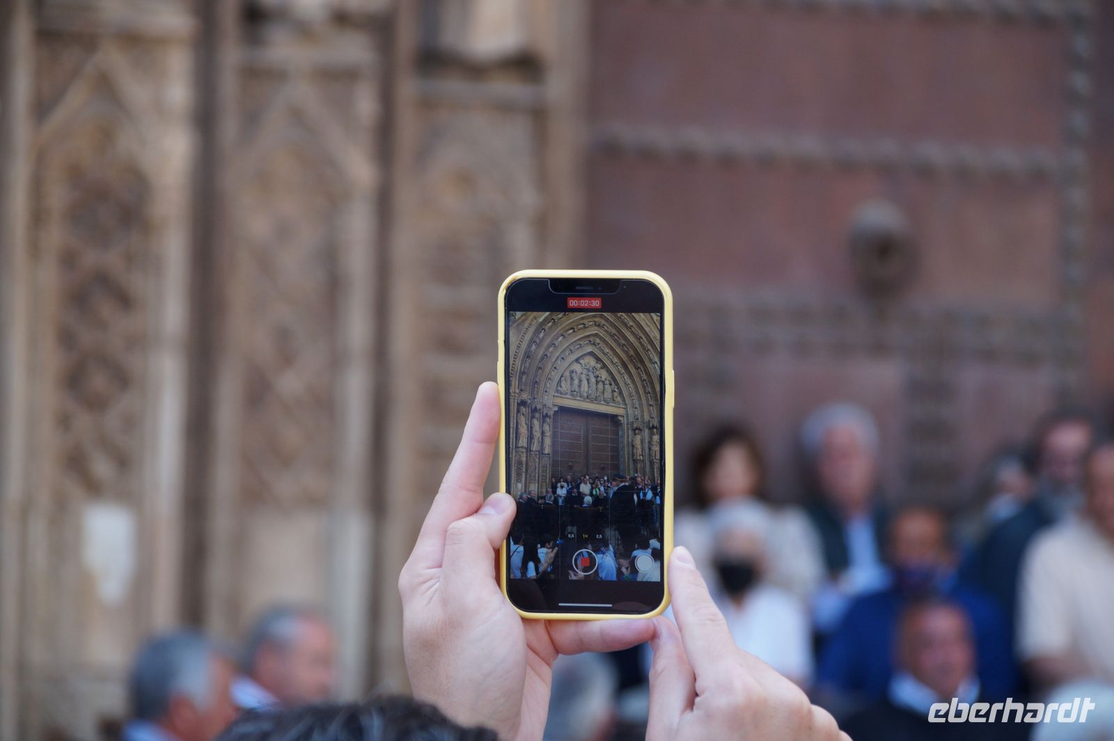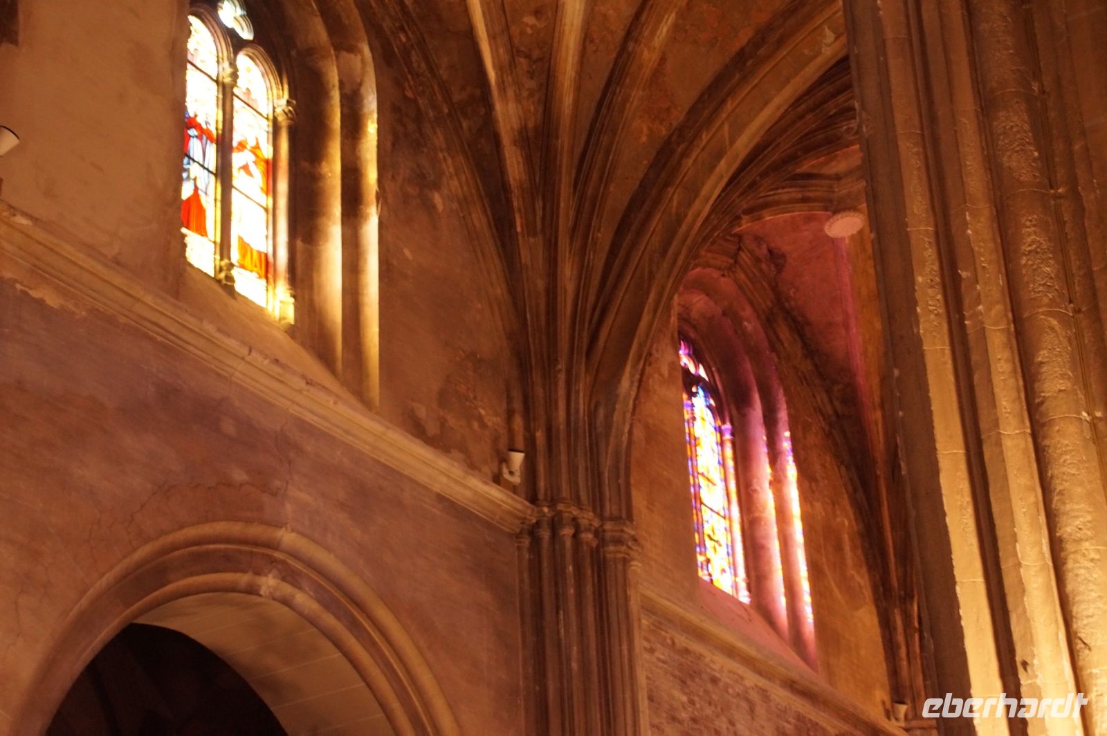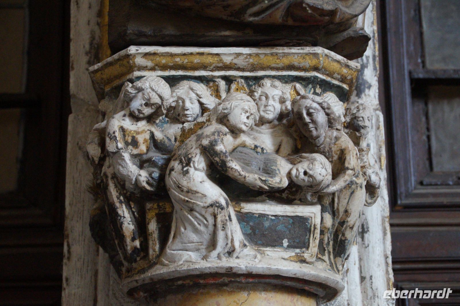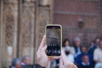 Mit den letzten Laufwilligen machte ich vor dem Abendessen noch einen kleinen Sonntagsspaziergang durch die Stadt, wobei wir auch an Santa María la Mayor vorbeikamen, deren Nebeneingang unüblicher Weise offen stand. Es wurde gerade die Messe zelebriert und so umrundeten wir die Kirche und betraten den ehemaligen Sa-h-n, wo ich eine gotische Kalendersäule zeigen konnte. Eintritt mussten wir keinen bezahlen, das Kassenhäuschen war unbesetzt. Und jetzt war die Messe auch schon zu Ende, der Abschlusssegen gesprochen und wir konnten, ohne zu stören, die Kirche betreten.