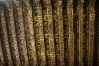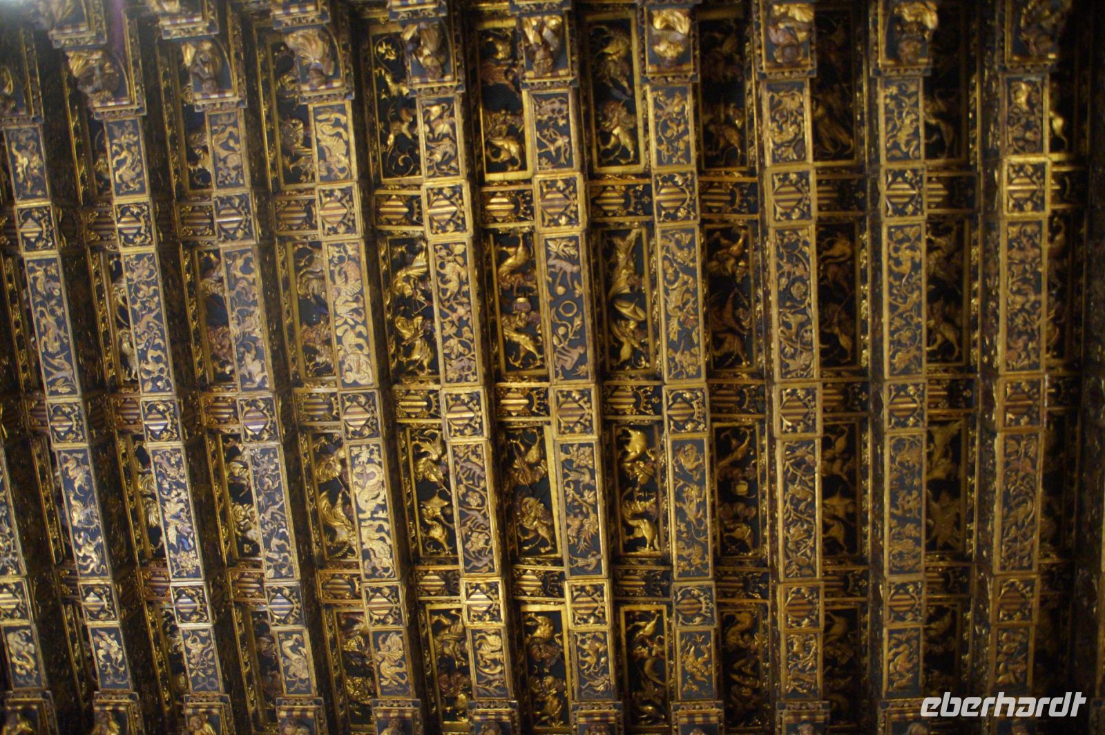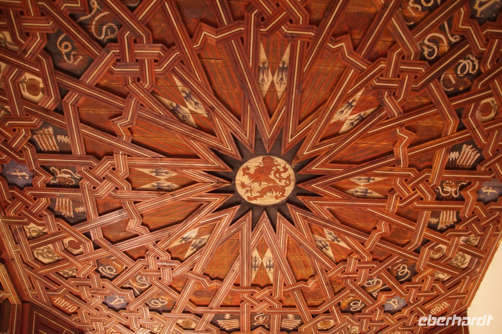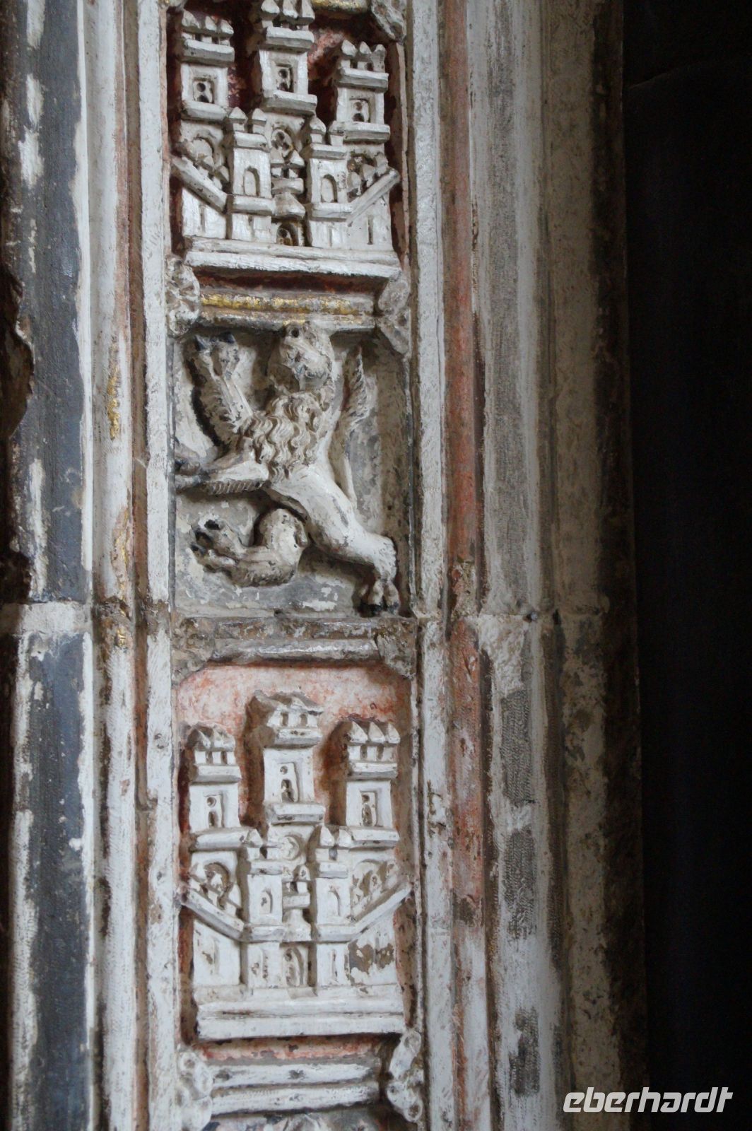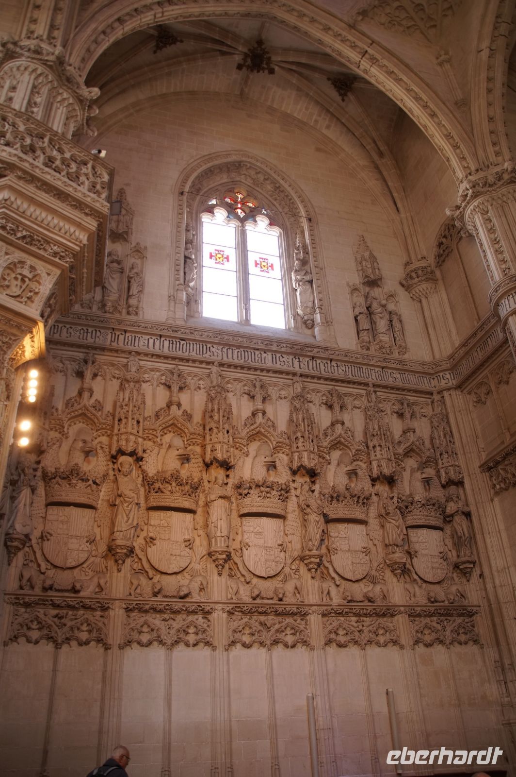 Dass San Juan seit 1476. also vor dem Krieg gegen Granada 1482 - 1492, begonnen wurde, war auch an den vielen im Kirchenschiff zu sehenden Wappen zu erkennen: Es fehlte der Granatapfel, der seit 1492 das Wappen der Katholischen Könige und ihrer Nachfolger bzw. des spanischen Staates zierte.