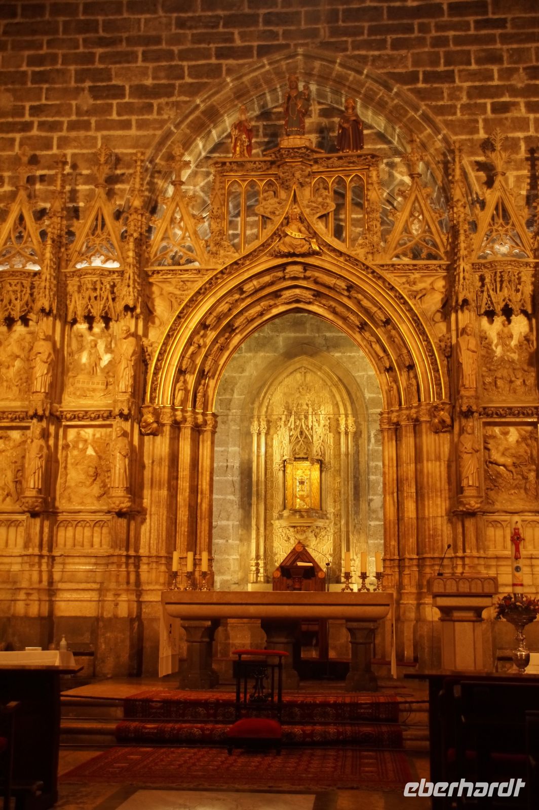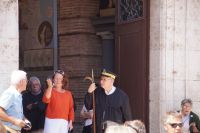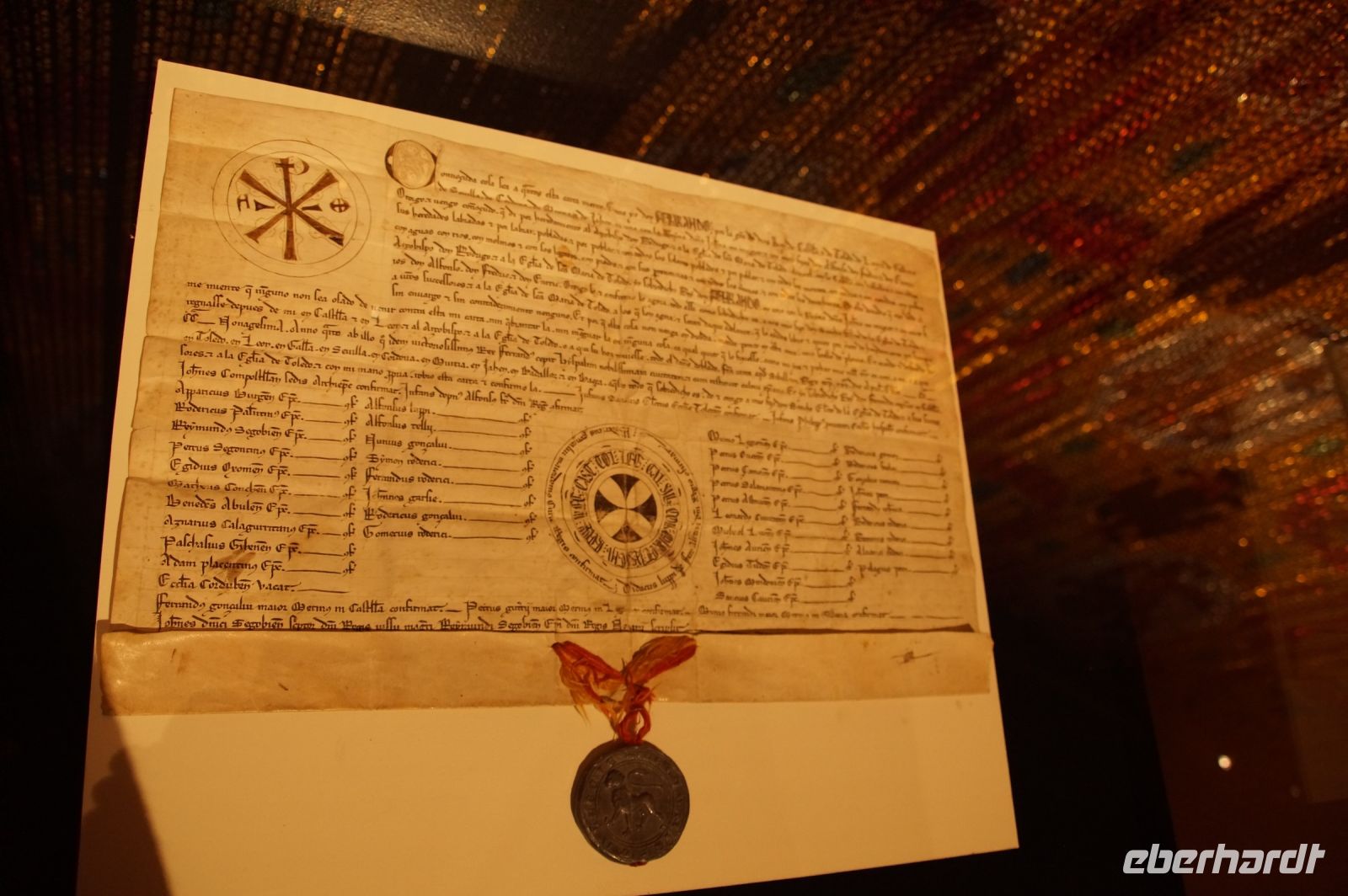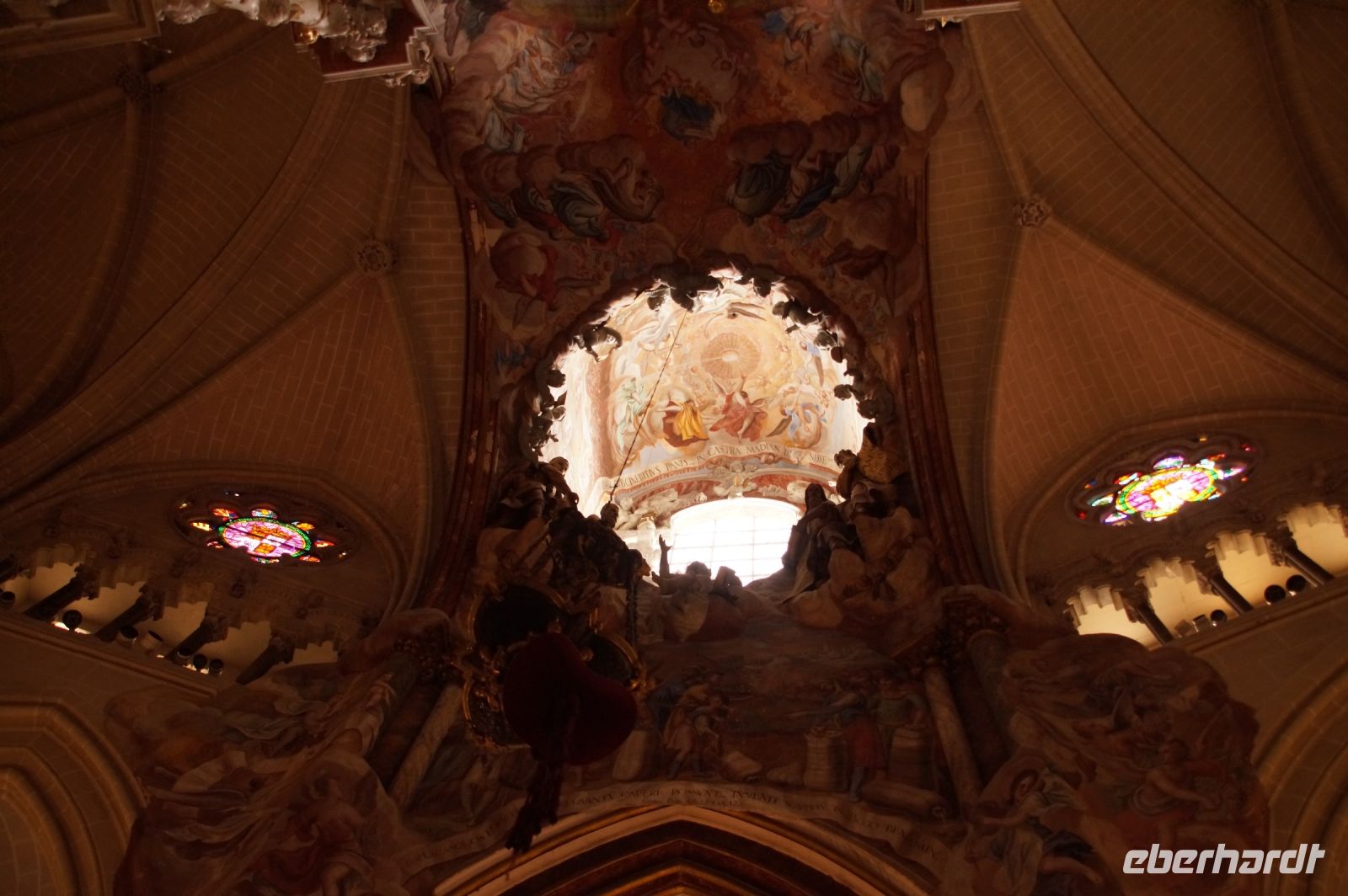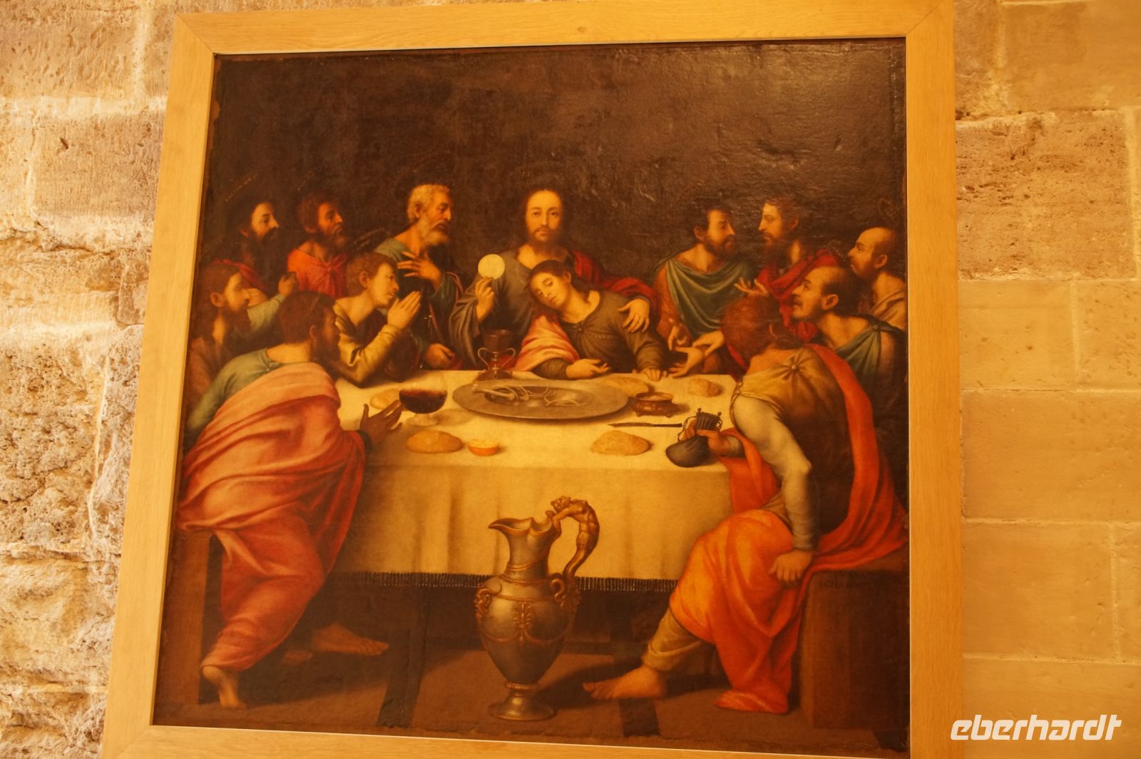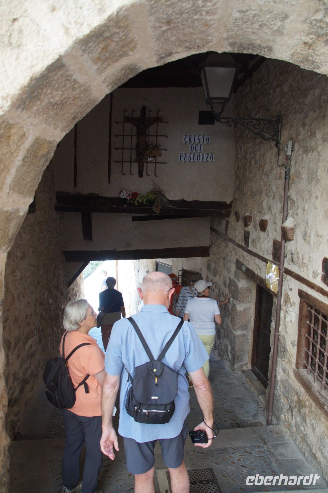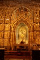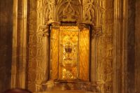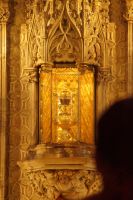 In der Kathedrale besuchten wir nach einem Rundgang durch den Chor - dessen Gestühl Szenen von der Eroberung des Königreichs zeigt - und verschiedenen sehenswerten Punkten in dem Dom die Sakristei mit dem Kathedralmuseum. Nach dem wir immer weiter hindurch gingen und schließlich Francisco in einem kleinen Hof eine Tür öffnete, eilte ich zurück. Herr Q. war nicht mit in die Sakristei gekommen. Ich lief also zu ihm, um ihn mitzunehmen. „Ich dachte, Sie kommen hier wieder heraus...“ - „Hm, offensichtlich nicht. Wir haben einen anderen Ausgang gewählt.“ Also liefen Herr Q. und ich durch Sakristei/Museum, um den Anschluss nicht zu verlieren. Irgendwann verließen wir einen Gang und sahen die Gruppe ... nicht euer Ernst! ... genau dort stehen, wo ich Herrn Q. ein paar Minuten zuvor aufgescheucht hatte.