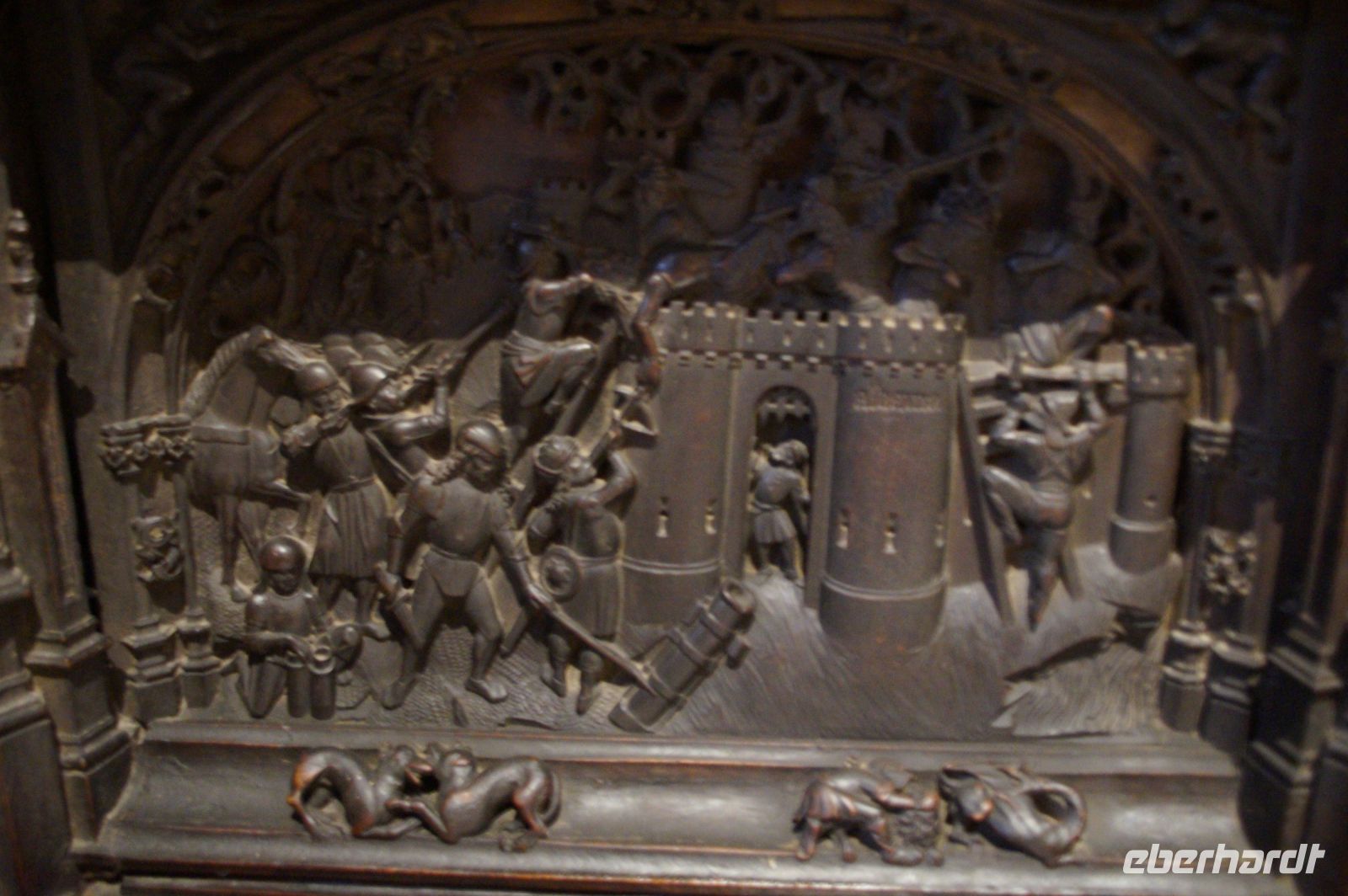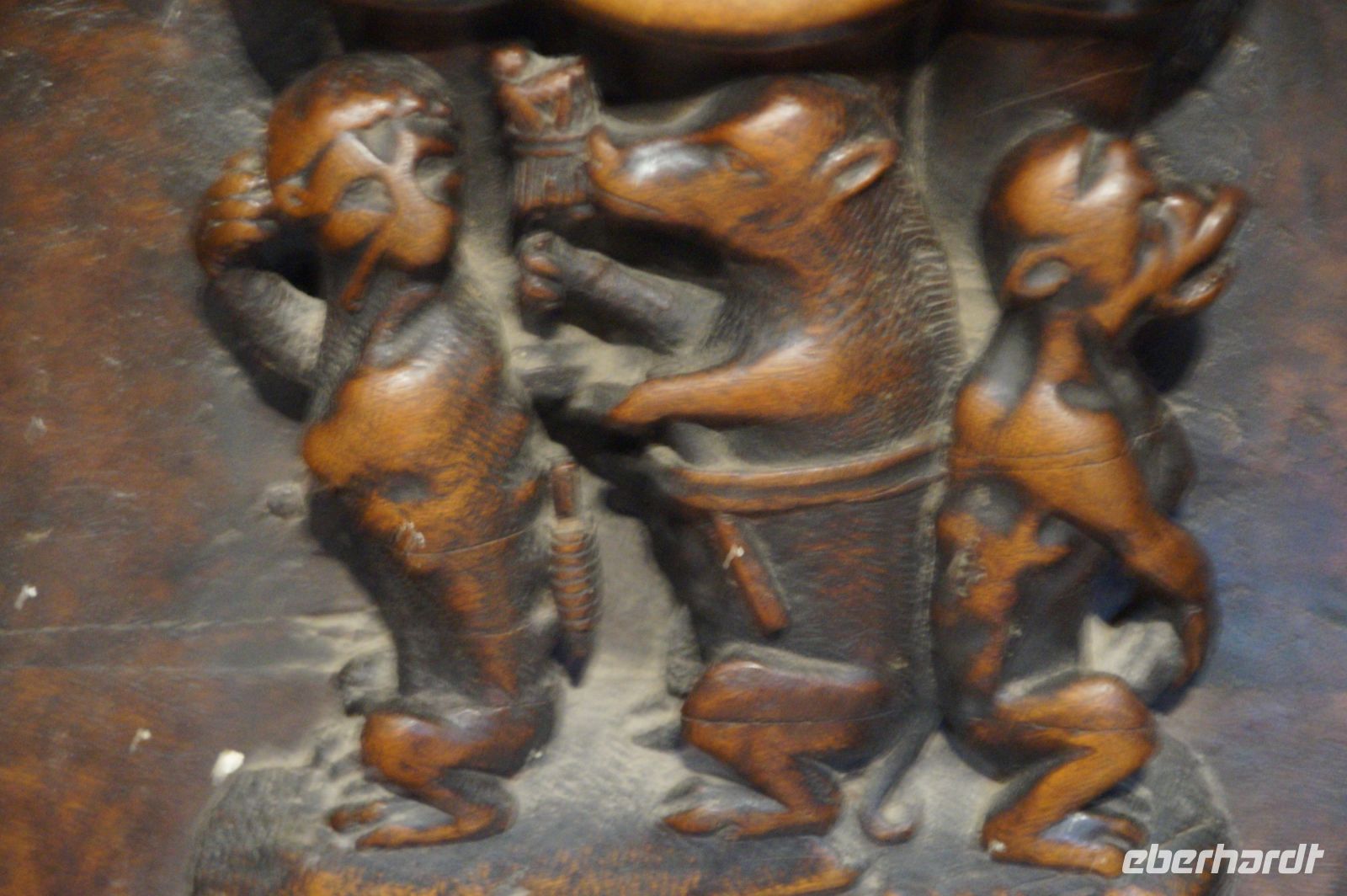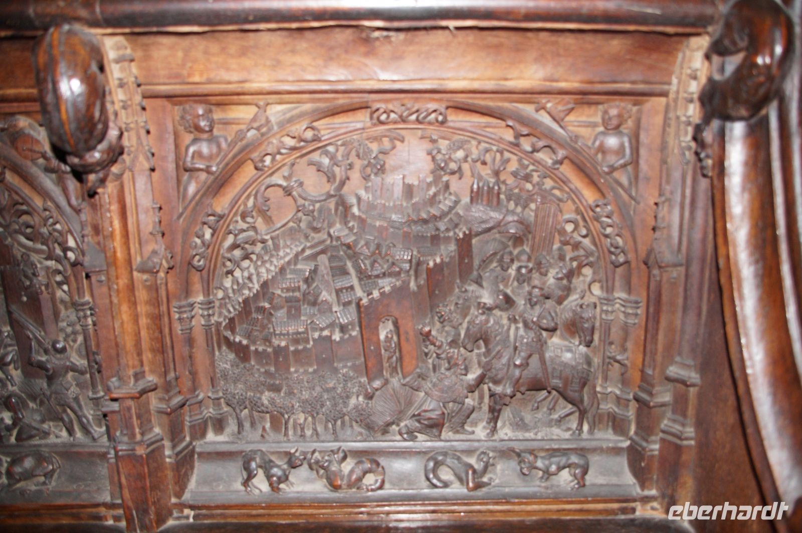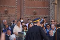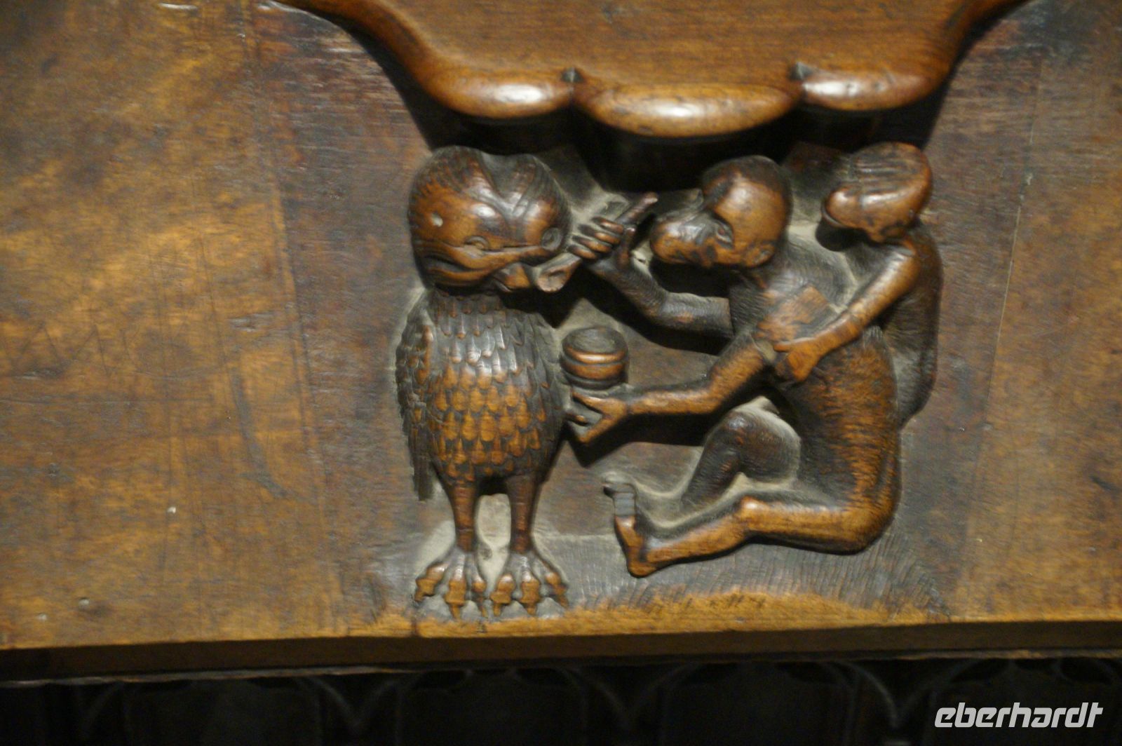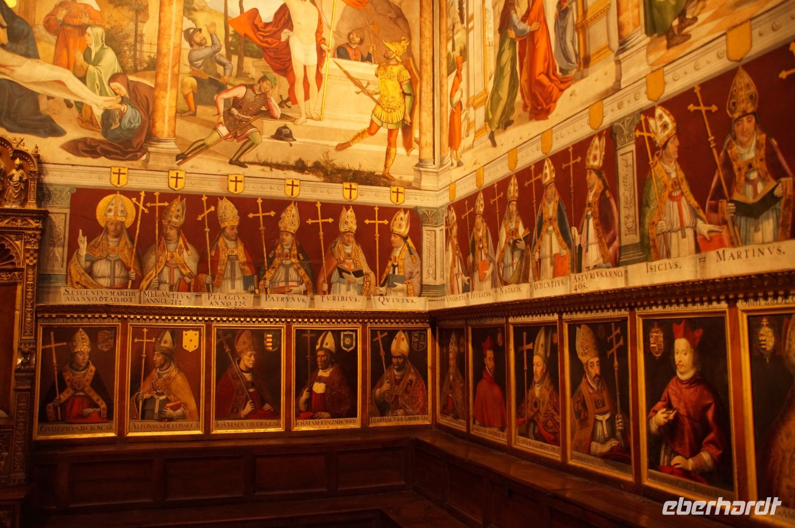In der Kathedrale besuchten wir nach einem Rundgang durch den Chor - dessen Gestühl Szenen von der Eroberung des Königreichs zeigt - und verschiedenen sehenswerten Punkten in dem Dom die Sakristei mit dem Kathedralmuseum. Nach dem wir immer weiter hindurch gingen und schließlich Francisco in einem kleinen Hof eine Tür öffnete, eilte ich zurück. Herr Q. war nicht mit in die Sakristei gekommen. Ich lief also zu ihm, um ihn mitzunehmen. „Ich dachte, Sie kommen hier wieder heraus...“ - „Hm, offensichtlich nicht. Wir haben einen anderen Ausgang gewählt.“ Also liefen Herr Q. und ich durch Sakristei/Museum, um den Anschluss nicht zu verlieren. Irgendwann verließen wir einen Gang und sahen die Gruppe ... nicht euer Ernst! ... genau dort stehen, wo ich Herrn Q. ein paar Minuten zuvor aufgescheucht hatte.