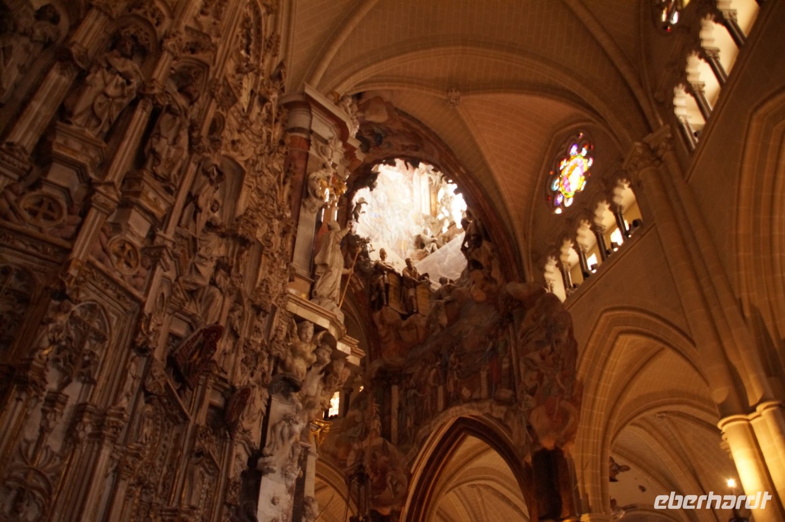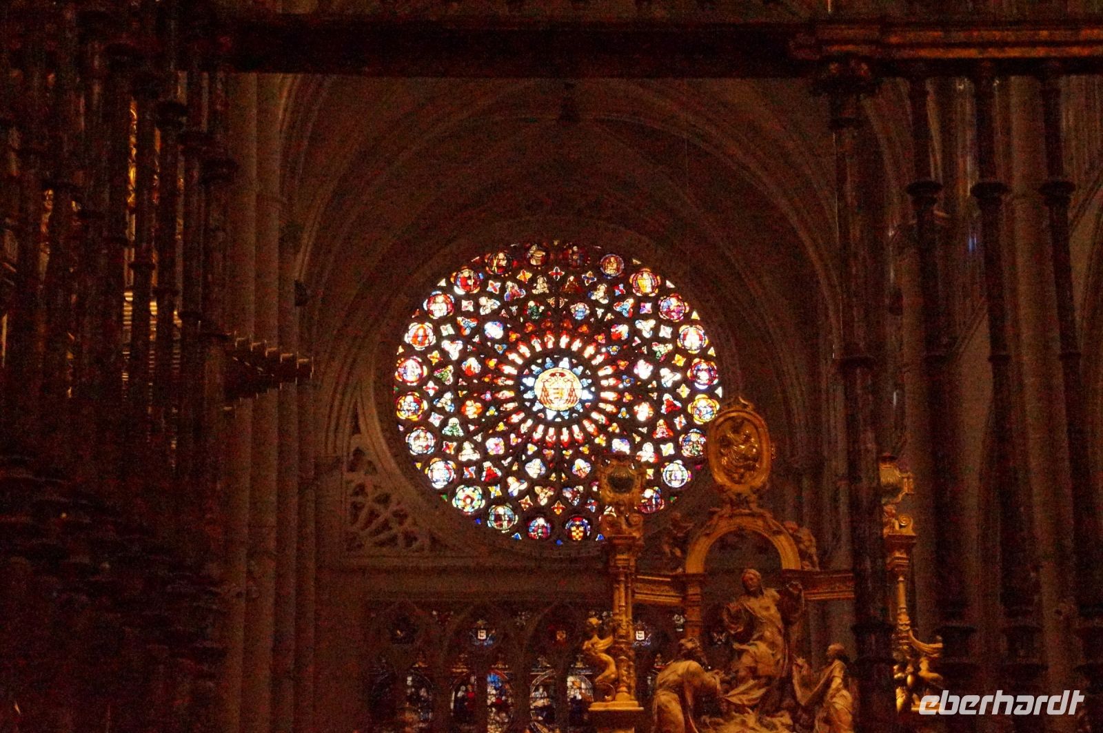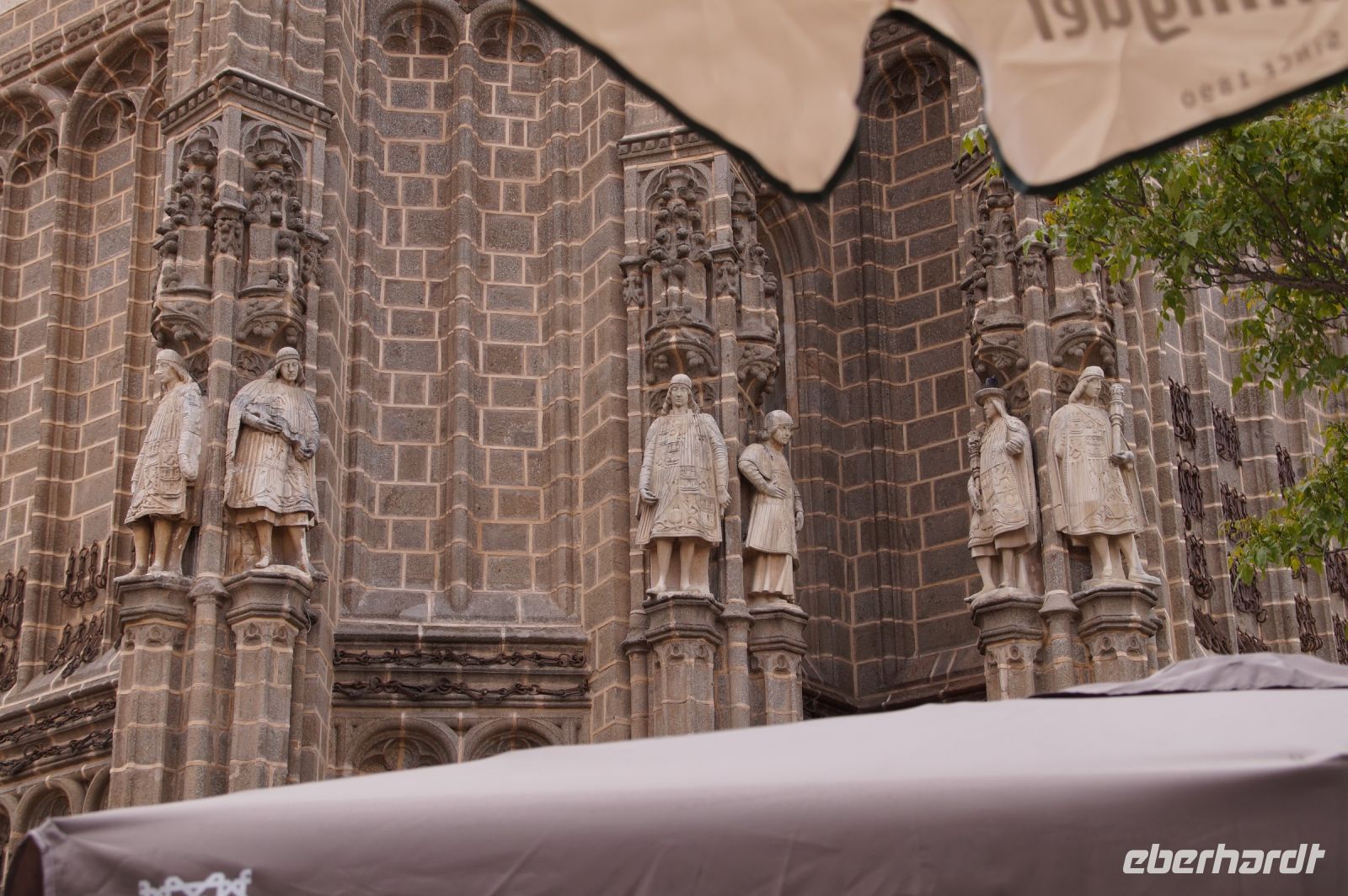 Wir betraten Toledos Kathedrale nicht durch die Puerta del Perdón, denn damit wären wir ja von aller Sünde befreit gewesen. Nein, die Vergebungspforte wird nur zu besonderen Anlässen geöffnet. Kein Kirchendiener reißt dieses Portal für 11+1 bzw. 11+2, Francisco war ja auch noch da, auf. Und so schlichen wir uns durch den Südeingang in die Bischofskirche - ach was sage ich? In die Kirche des Metropoliten von Spanien! Schon ihr Turm, gestaltet wie eine Tiara, soll dem Gläubigen - vor allem aber dem eifersüchtigen Bischof von Santiago - bedeuten, wer der wichtigste Kirchenfürst in den spanischen Herrschaftsgebieten dies- und jenseits der sieben Weltmeere ist.