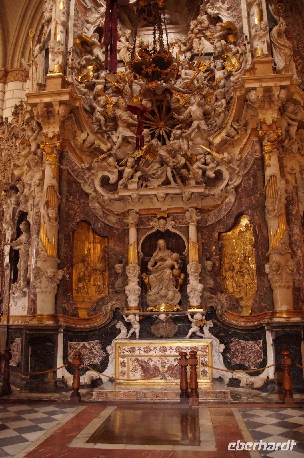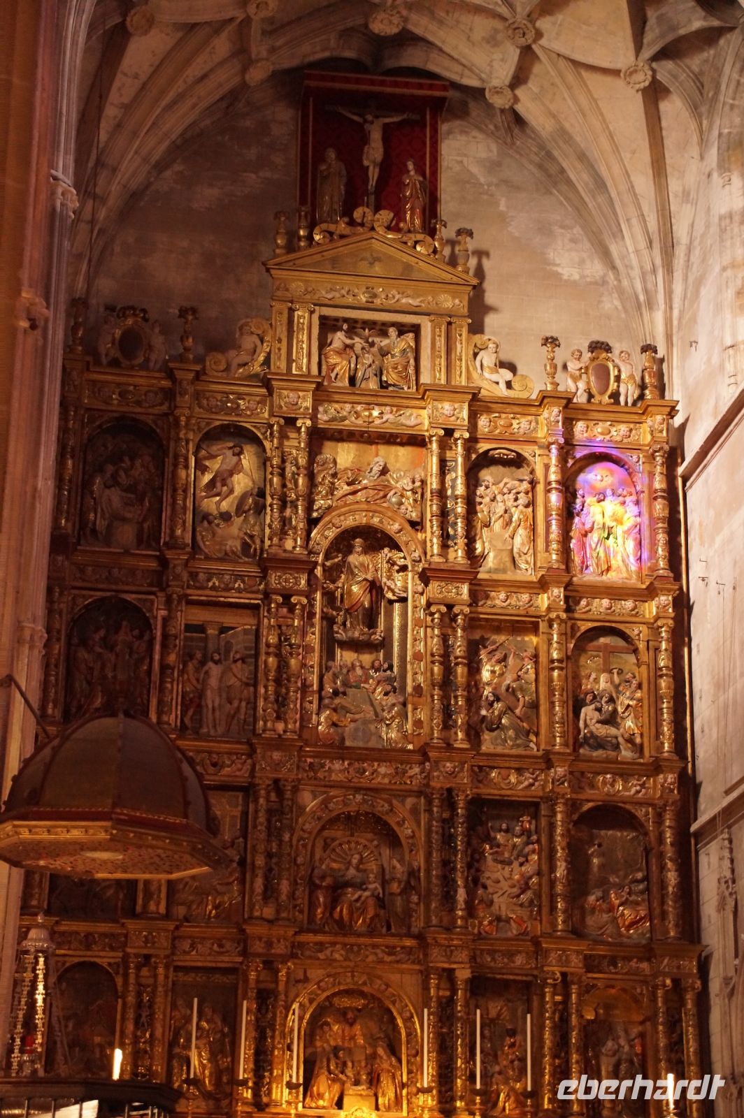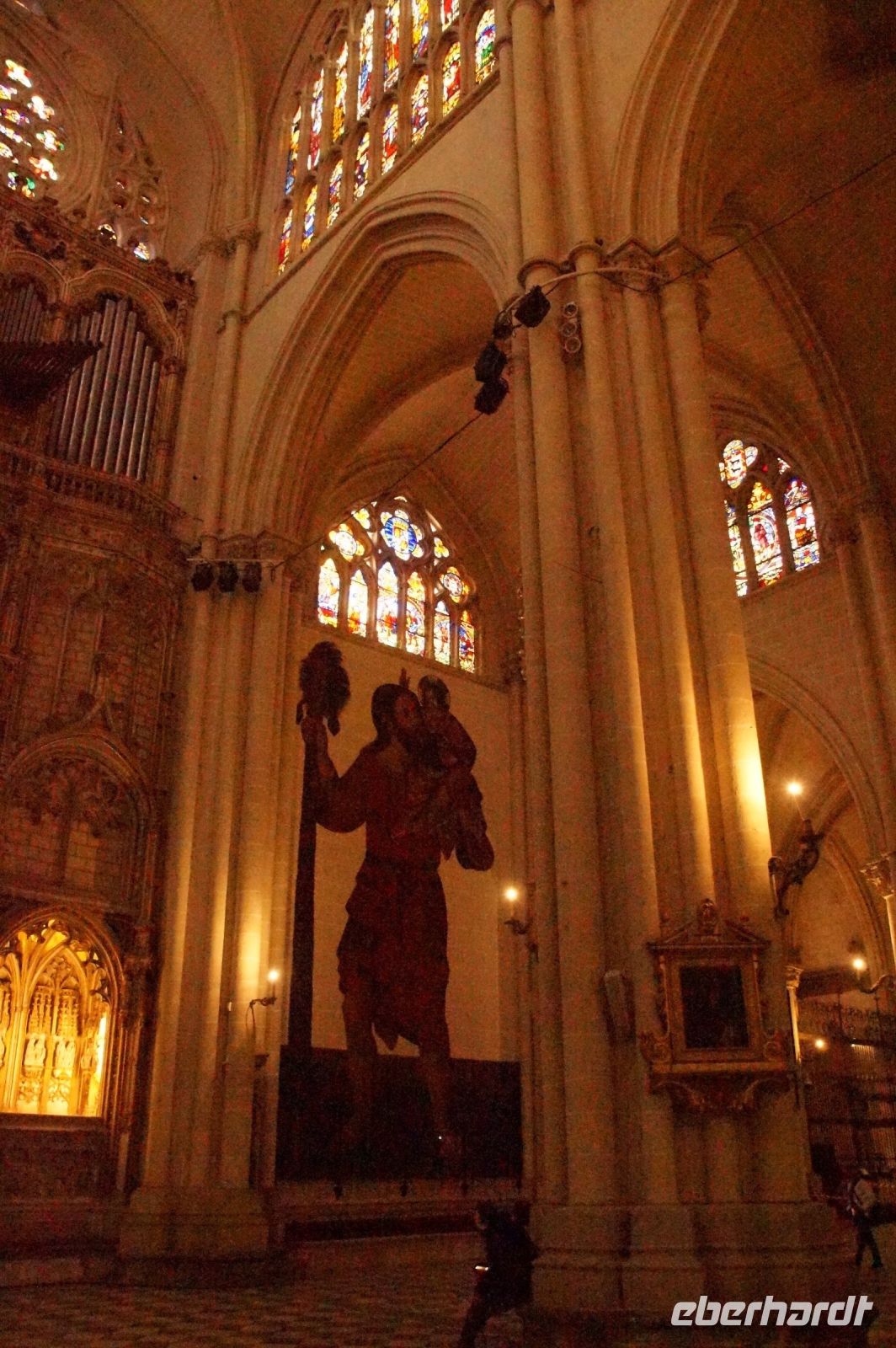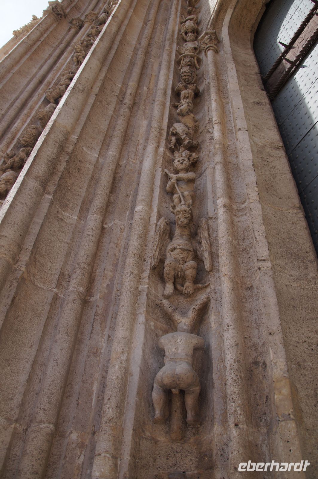 Wir betraten Toledos Kathedrale nicht durch die Puerta del Perdón, denn damit wären wir ja von aller Sünde befreit gewesen. Nein, die Vergebungspforte wird nur zu besonderen Anlässen geöffnet. Kein Kirchendiener reißt dieses Portal für 11+1 bzw. 11+2, Francisco war ja auch noch da, auf. Und so schlichen wir uns durch den Südeingang in die Bischofskirche - ach was sage ich? In die Kirche des Metropoliten von Spanien! Schon ihr Turm, gestaltet wie eine Tiara, soll dem Gläubigen - vor allem aber dem eifersüchtigen Bischof von Santiago - bedeuten, wer der wichtigste Kirchenfürst in den spanischen Herrschaftsgebieten dies- und jenseits der sieben Weltmeere ist.