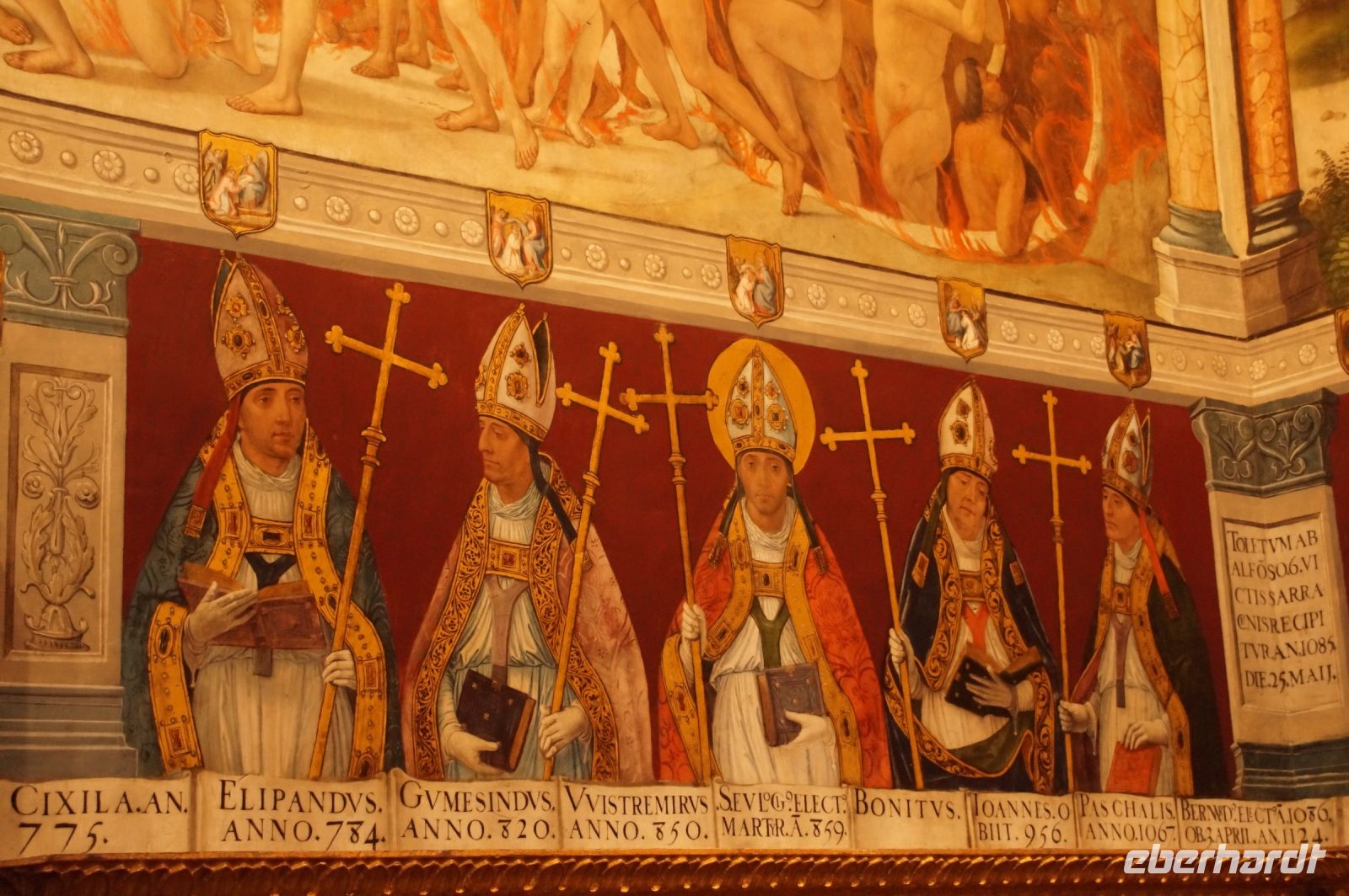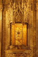 Zum historischen Hintergrund: Toledo - Toletum - war so etwas, wie die Hauptstadt der Westgoten gewesen, hier wählten sie - wenn sie diese denn wählten - ihre Könige. Nach der Eroberung des Westgotenreiches durch die Araber und Berber und der allmählichen Islamisierung des nun al-Andalus genannten Teils von Spanien, war Toledo - Tulaytula - 374 Jahre lang (711-1085), muslimisch beherrscht. Die Reihe der Bischöfe Toledos in der Zeit vom 1. bis 11. Jhdt. - dargestellt in der Sakristei der Kathedrale - ist zum Teil lückenhaft, zum Teil auch eher legendär als historisch. Nach der Eroberung der Stadt durch Alfons VI. und der Installation eines Bischofs dort, brach zwischen den Bischöfen von Toledo und denen von Santiago - die immerhin beanspruchten, die Gebeine des Apostels Jakob (Maioris) zu besitzen - der Konflikt um das Primat in Spanien aus, den letztlich Toledo für sich entscheiden konnte.