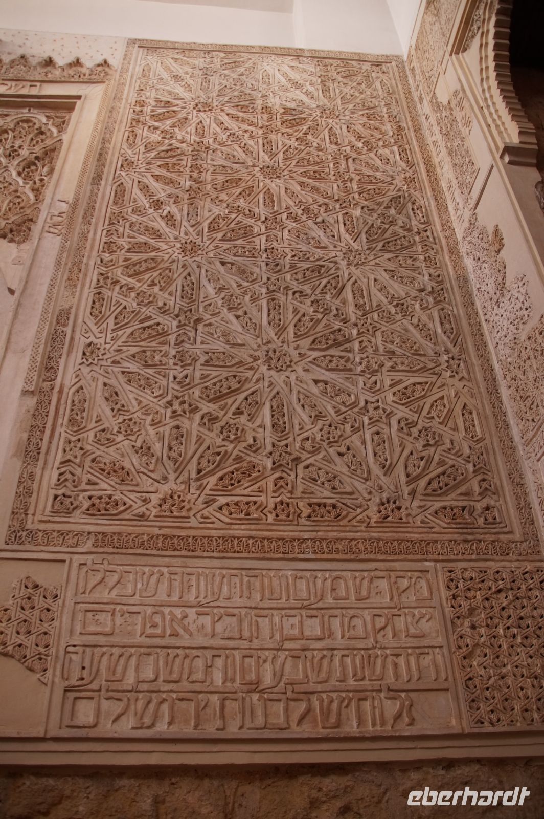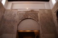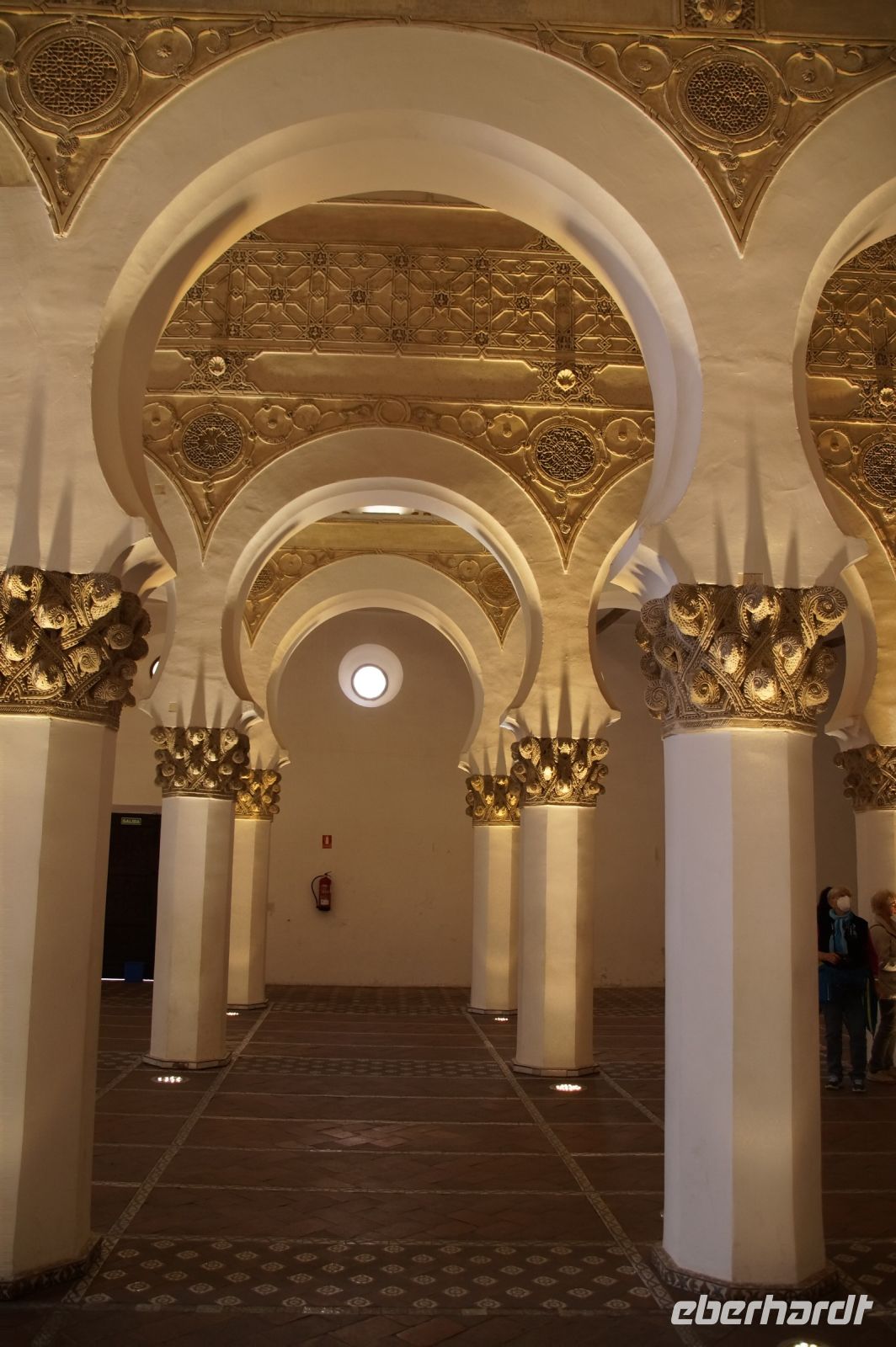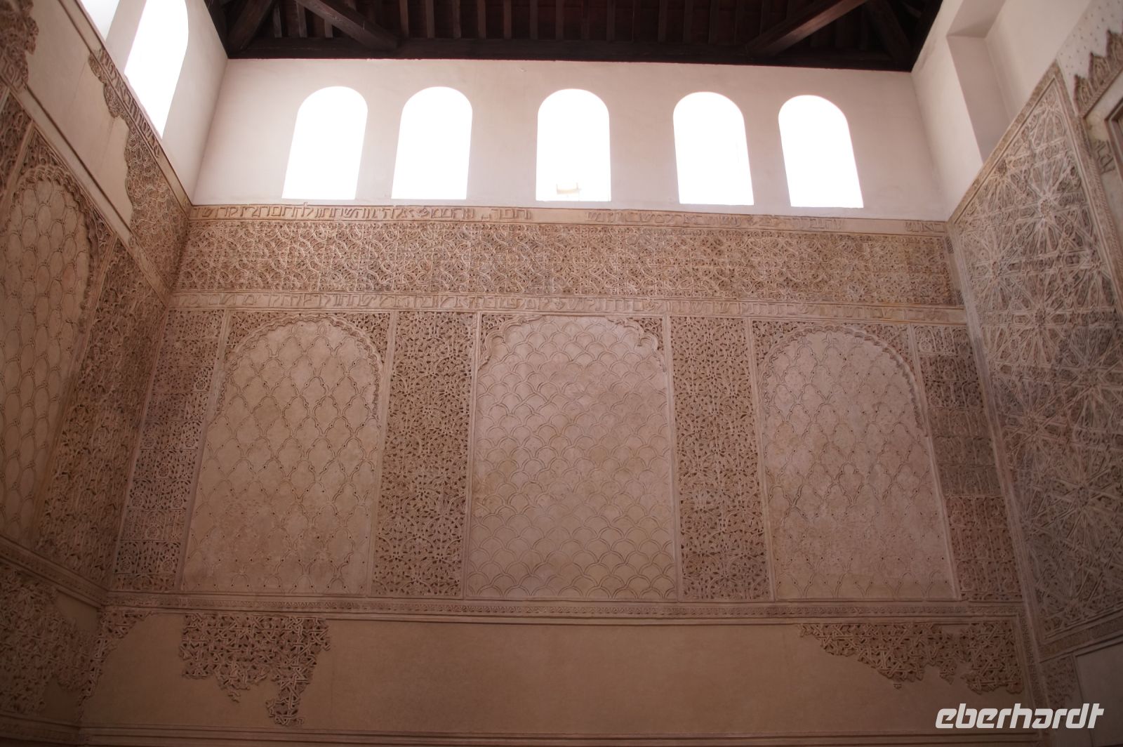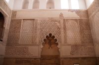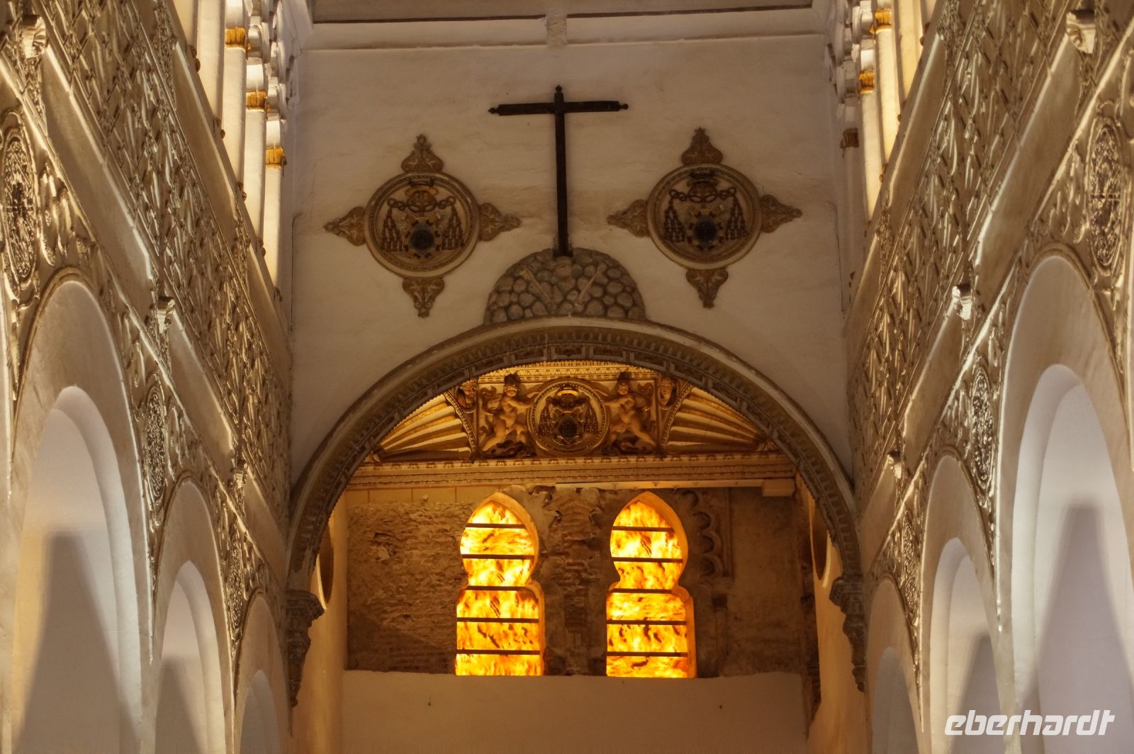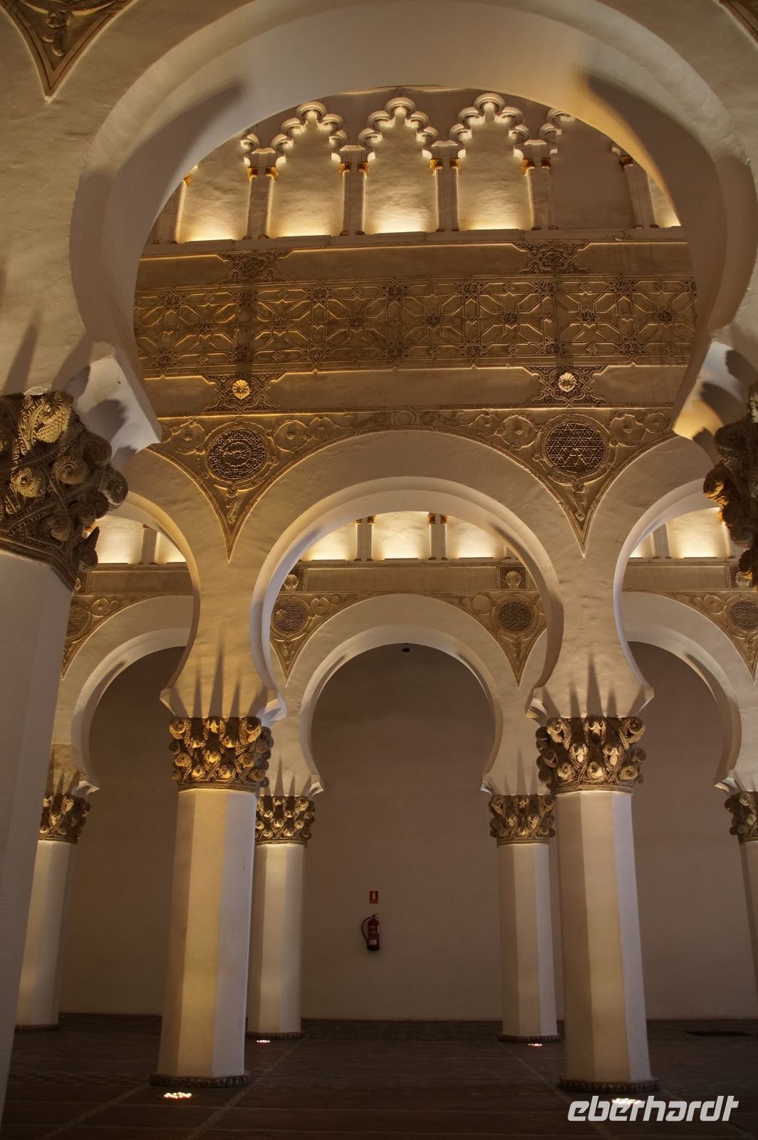 Die als Santa María la Blanca eine Zeit lang als Kirche benutzte Synagoge aus dem 12. Jahrhundert war ein nach außen hin unscheinbarer Bau, der sich im Innern als fünfschiffig erwies, mit meist runden, vorne aber auch spitzzulaufenden Hufeisenbögen. Ein in seiner Schlichtheit sehr schöner Bau, der seine Schönheit erst allmählich offenbarte. Denn man musste schon mit dem Blick den Säulen nach oben folgen, um über den Hufeisenbögen die prächtigsten Verzierungen zu sehen.
