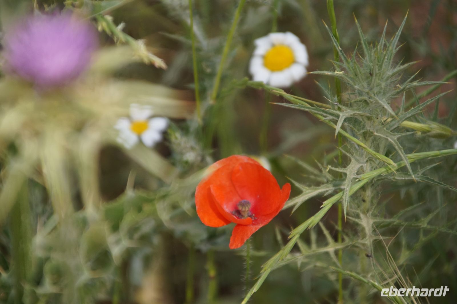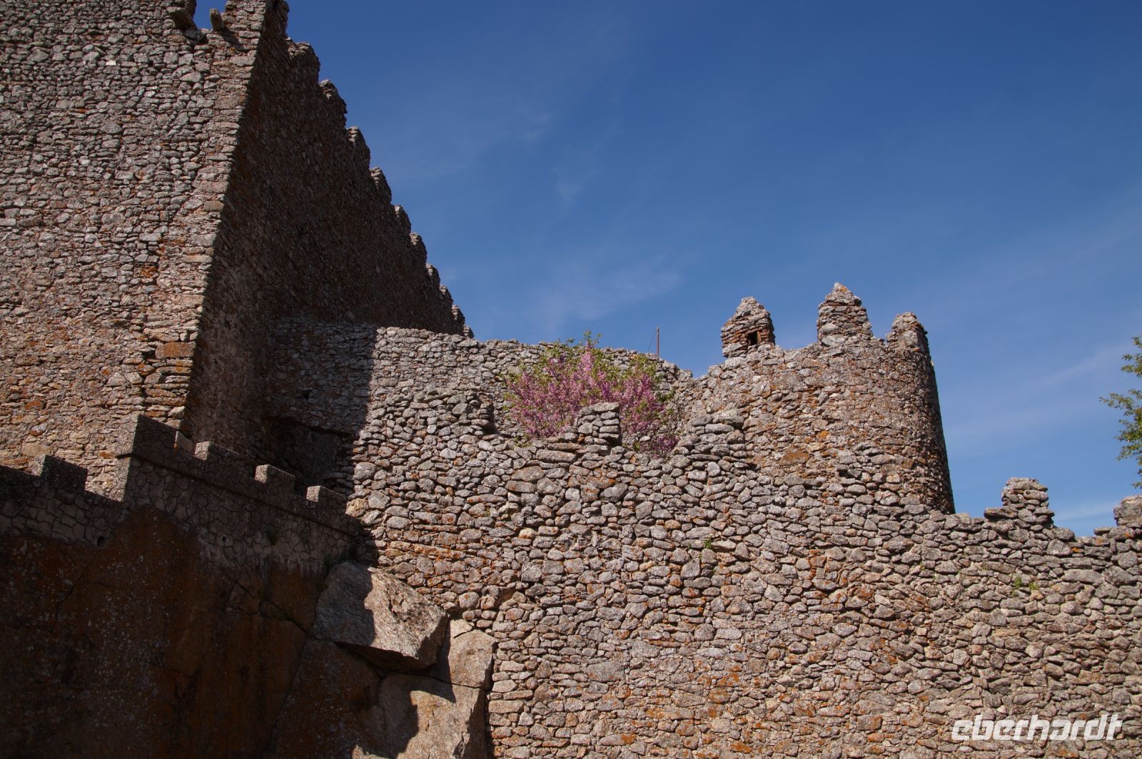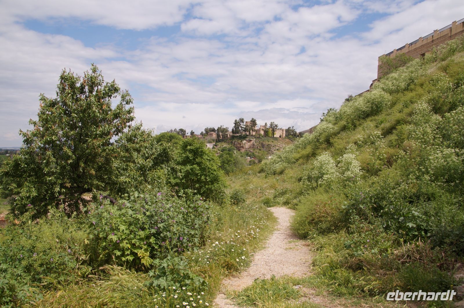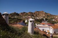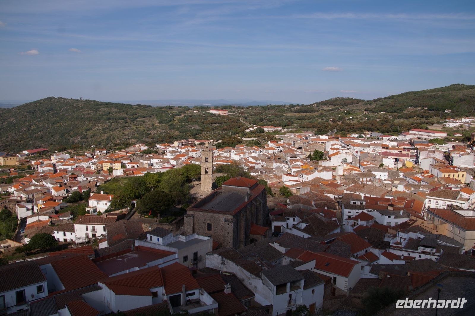 Wir fuhren zunächst einmal von Almagro aus eine durch die niedrigen Gebirge sich windende Straße, an verschiedenen iberischen Eichensorten (Korkeichen, Steineichen, portugiesische Eichen) vorbei und begleitet von wahren Blütenmeeren der weiß mit einem Stich rosa blühenden Zistrosen, welche den roten Mohn und die weiße Hundskamille der Felder in der Mancha abgelöst hatten.