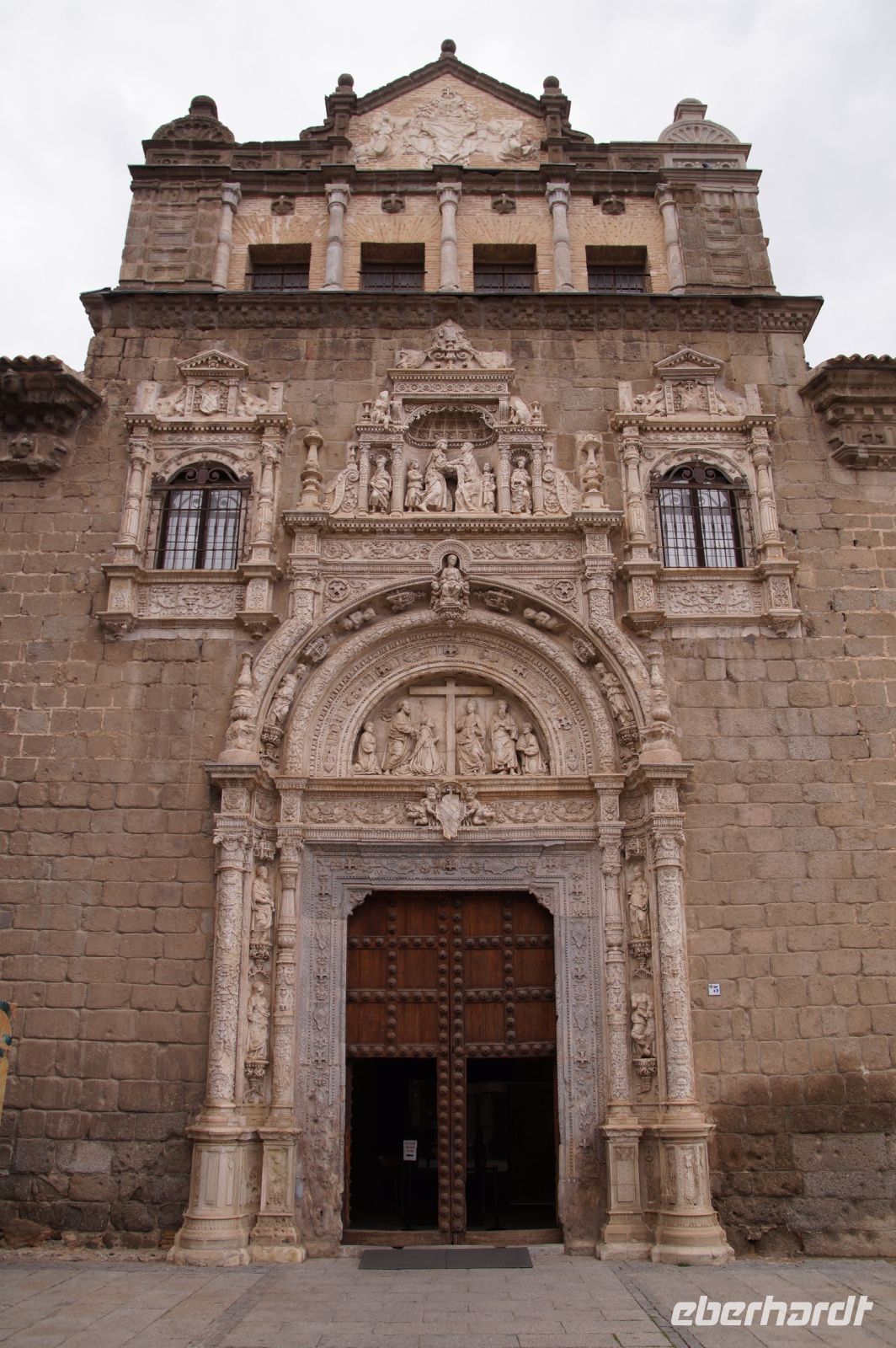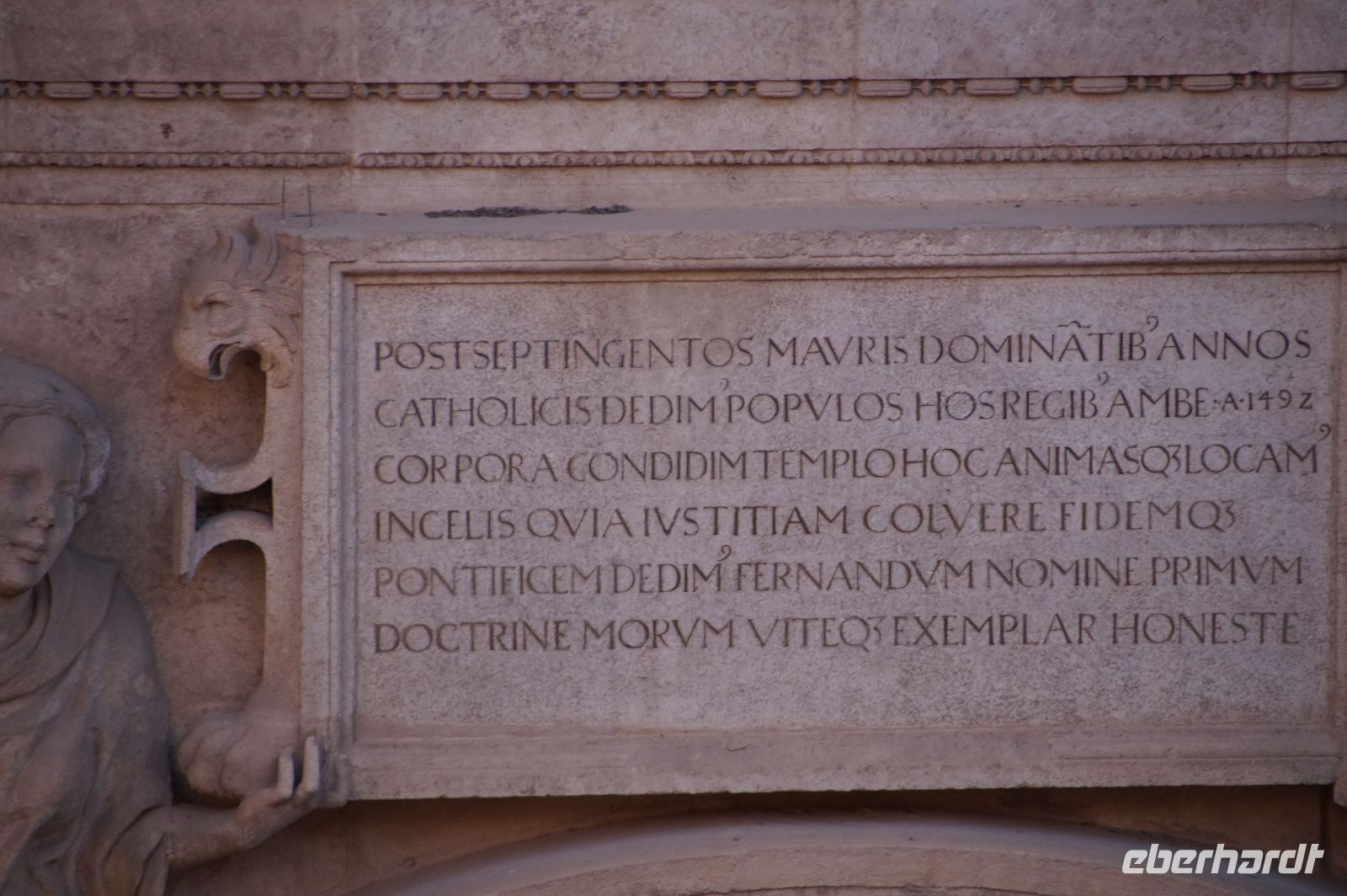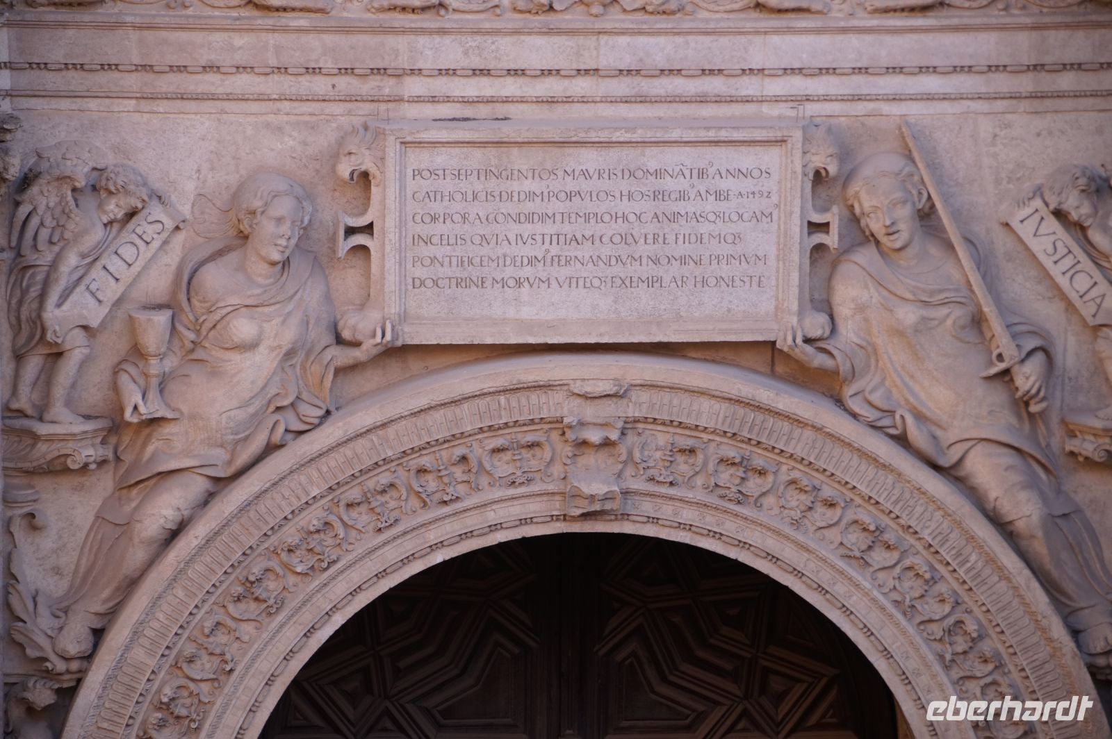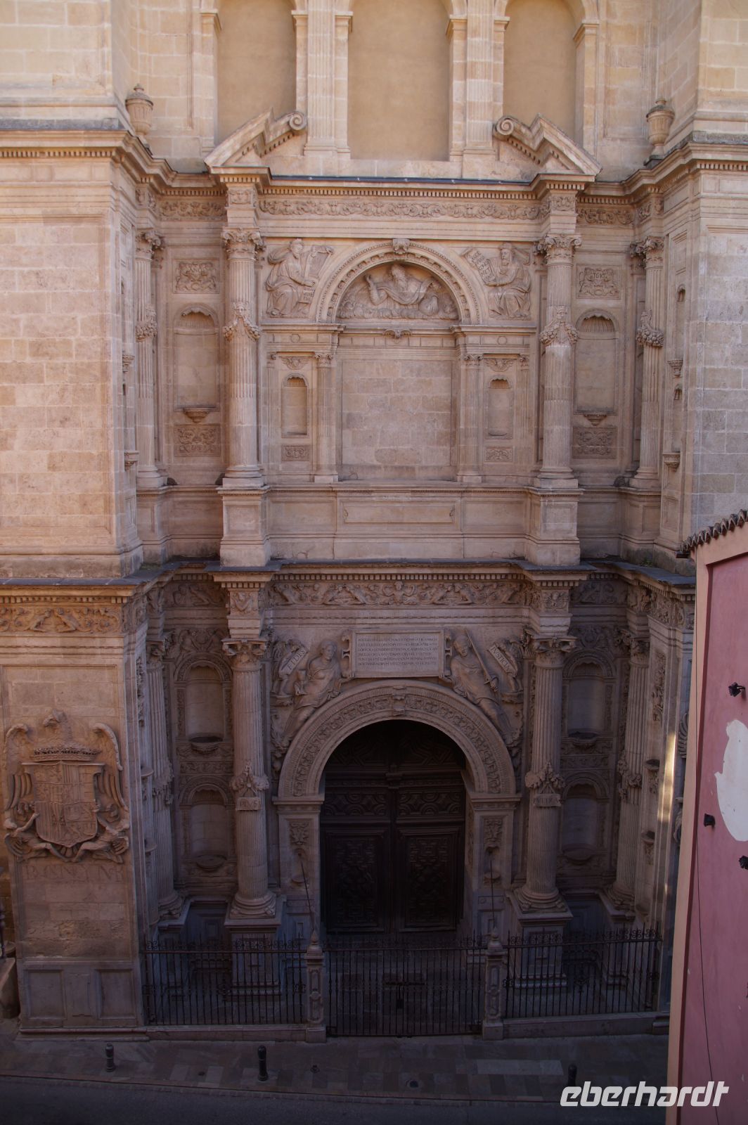 Die Kirche vorwiegend im isabellinischen (spätgotischen) Stil errichtet, erhielt unter dem Engel der Katholischen Könige, Kaiser Karl V. noch einige zusätzliche Renaissance-Elemente. An ihrer Außenfassade sahen wir die Ketten von angeblich aus der Knechtschaft befreiten christlichen Sklaven. Die tatsächliche Grablege der Katholischen Könige wurde dann aber nach der Eroberung Granadas die heutige Capilla Real, dort.