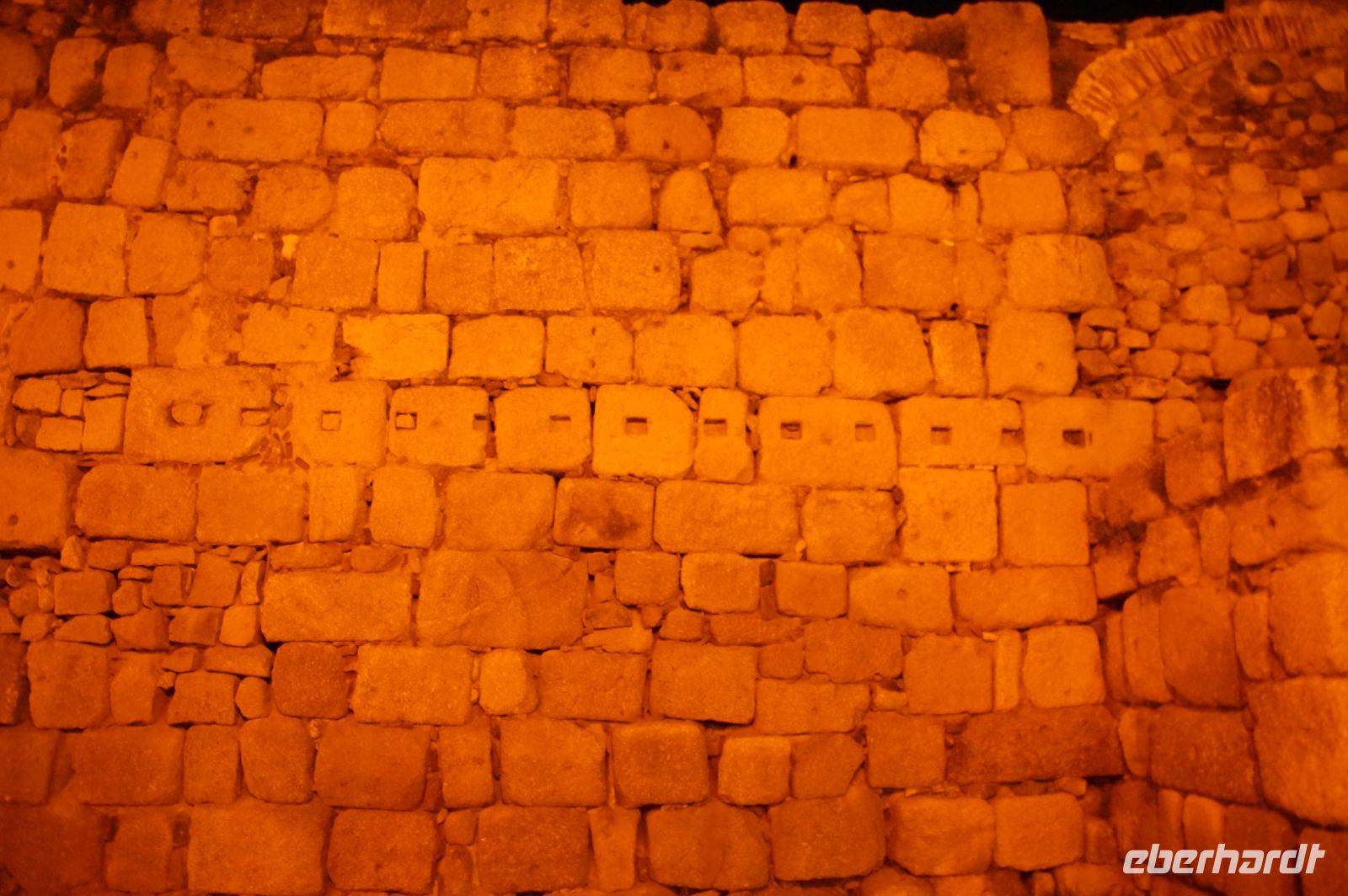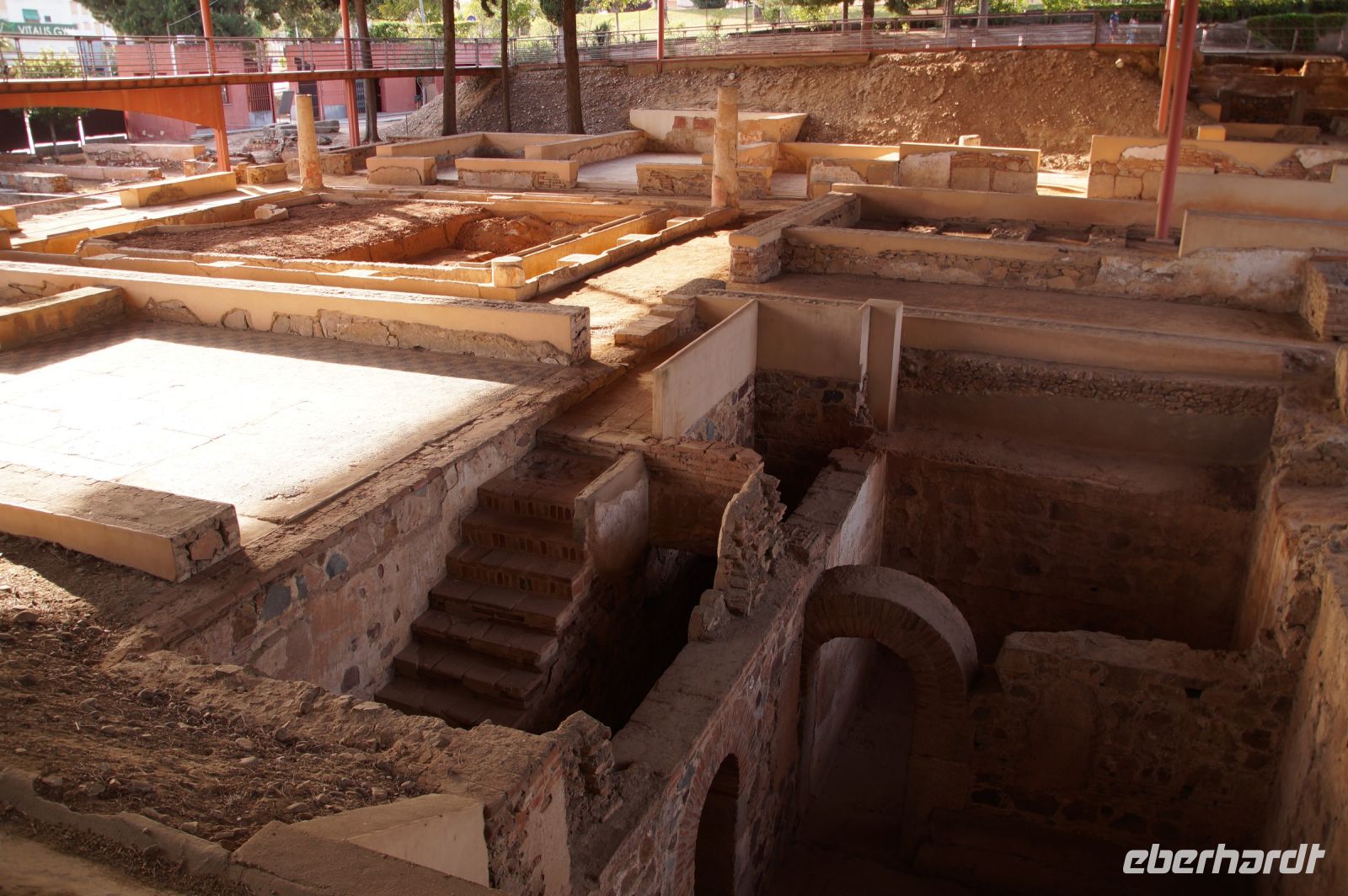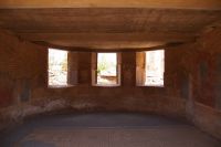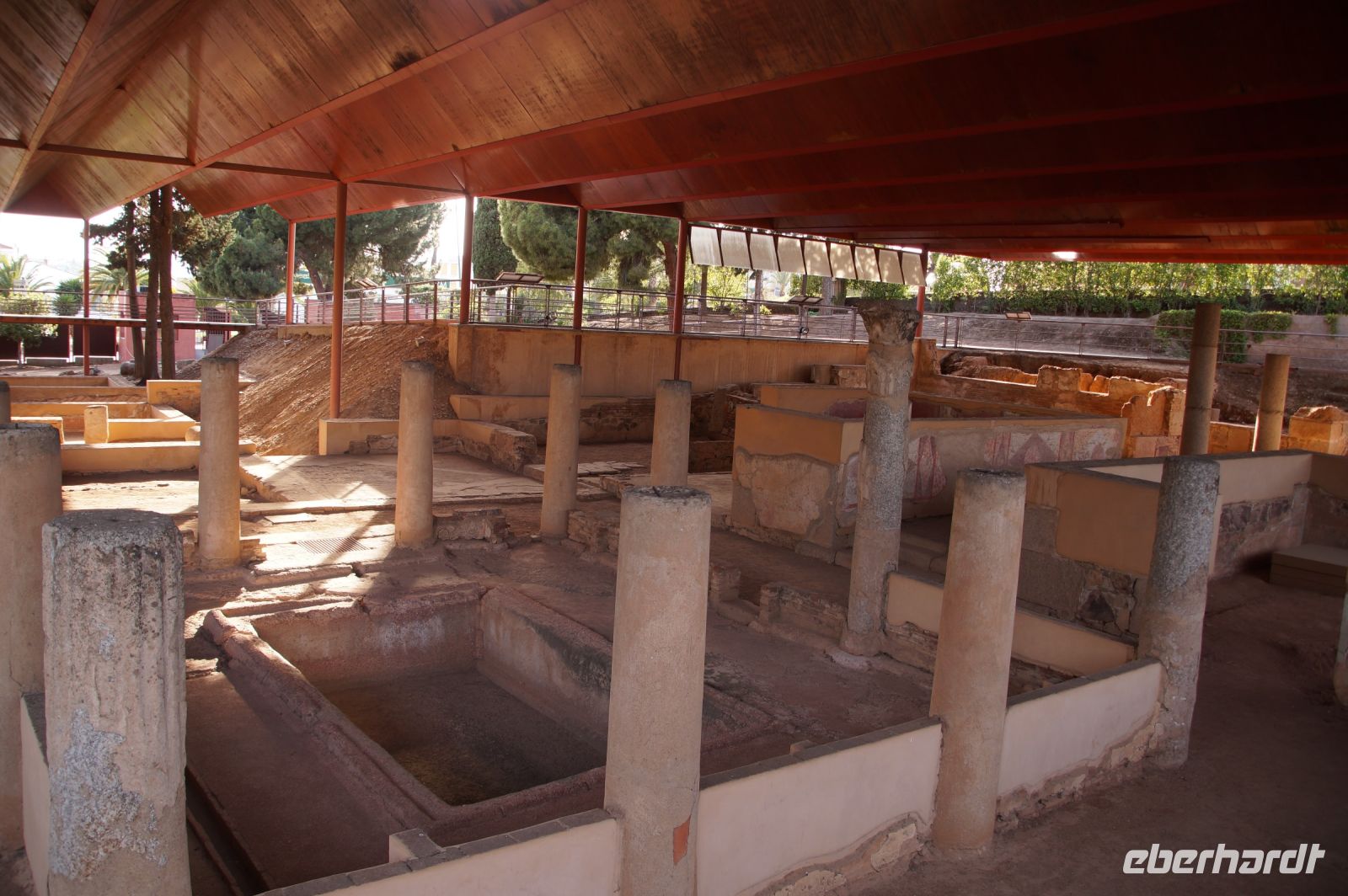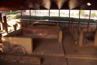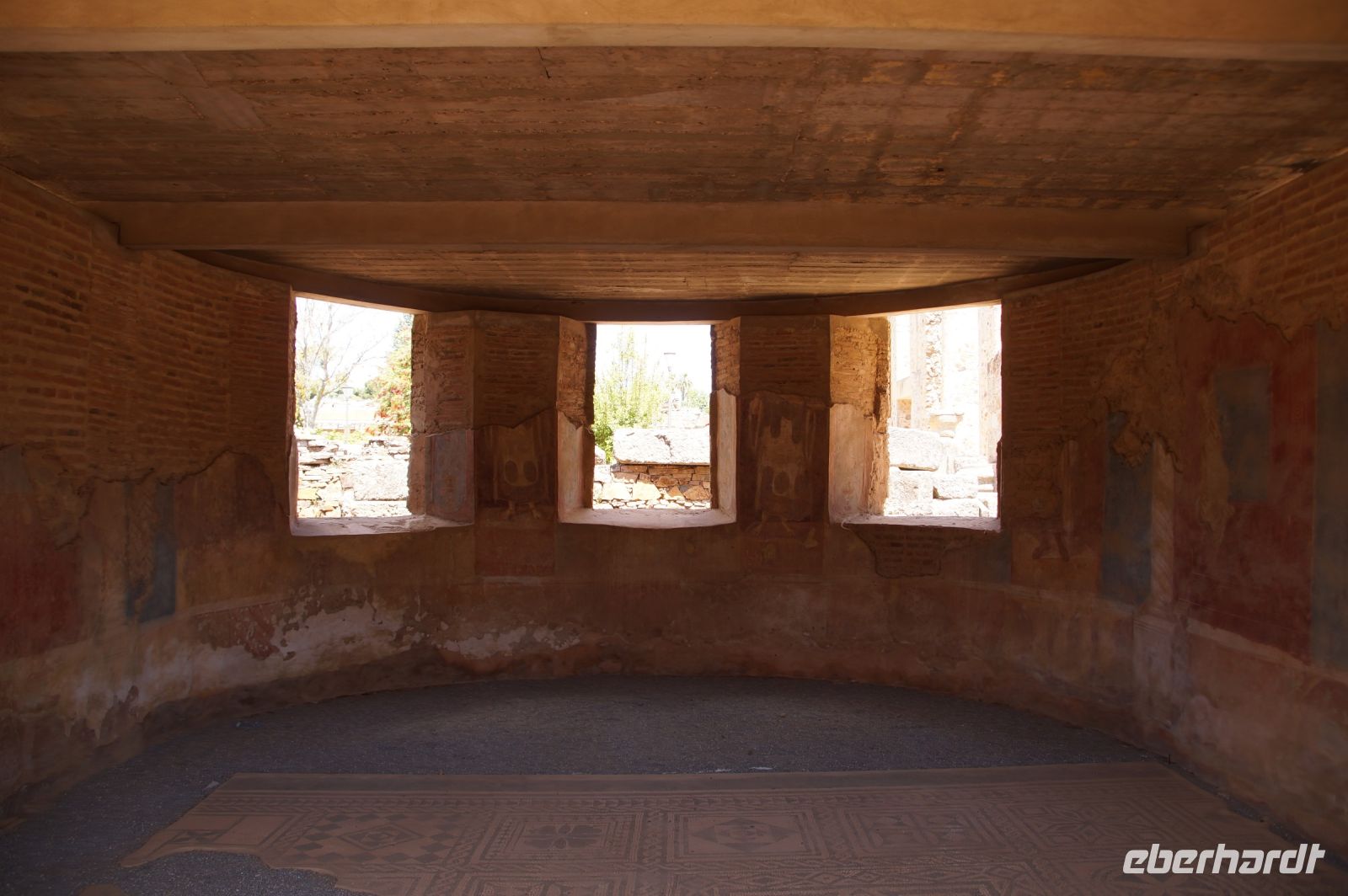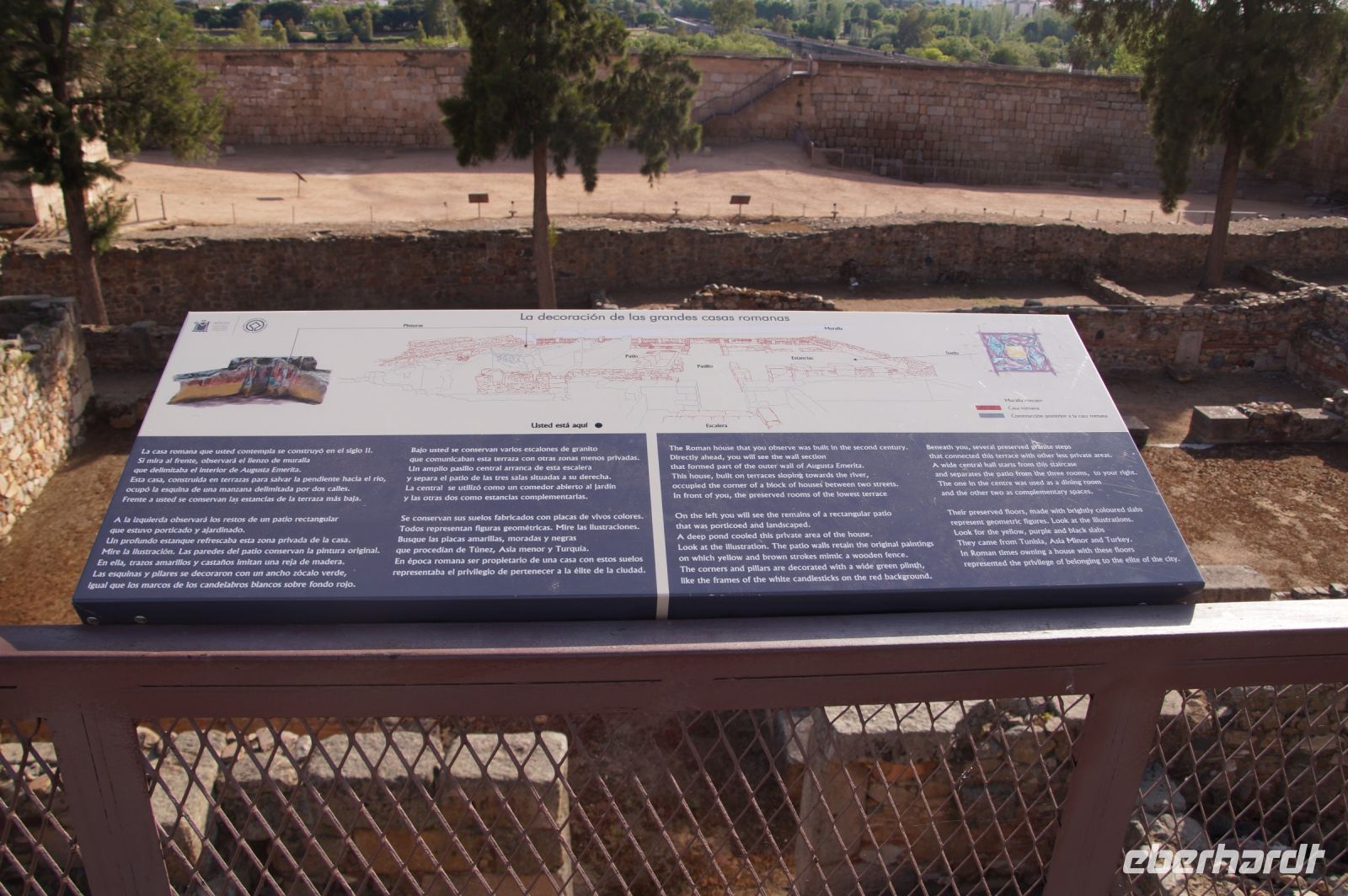 Hier stellt sich nun ein neues Problem: Wenn man den Diana-Tempel als Tempel für den Kaiserkult versteht, kann der Trajansbogen nicht den Eingang zum Provinzialforum darstellen, bzw, der Tempel für den Kaiserkult sollte auf dem Gelände des Provinzialforums gestanden haben. Hier beißen sich die Interpretationen. Mérida ist eine Stadt mit einer nun bereits über 2000jährigen Geschichte, in der durchgängig Menschen leben. Insofern ist es für die Archäologen schwer, ihre Thesen einfach mal zu überprüfen und den ganzen neumodischen Kram, der über den römischen Fundamenten steht, zu entfernen. Aber wir sahen eben auch, was passiert, wenn man heute in Mérida bauen möchte: Javier lud uns ein, mal etwas näher an ein großes, schmuckloses Haus mit dunklen Fenstern heranzutreten: Erst jetzt sahen wir, was sich hinter den Fenstern verbarg, wir wären gnadenlos daran vorbeigelaufen: Römische Fundamente lagen vor uns. Hier war eine Tiefgarage geplant worden - da muss man mit rechnen, dass solche "Überraschungen" auf einen zukommmen, wenn man in historischen Altstädten Großprojekte plant.