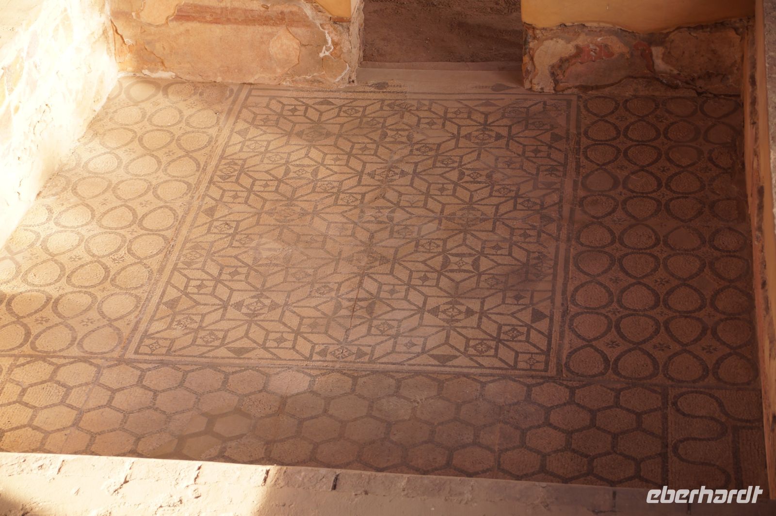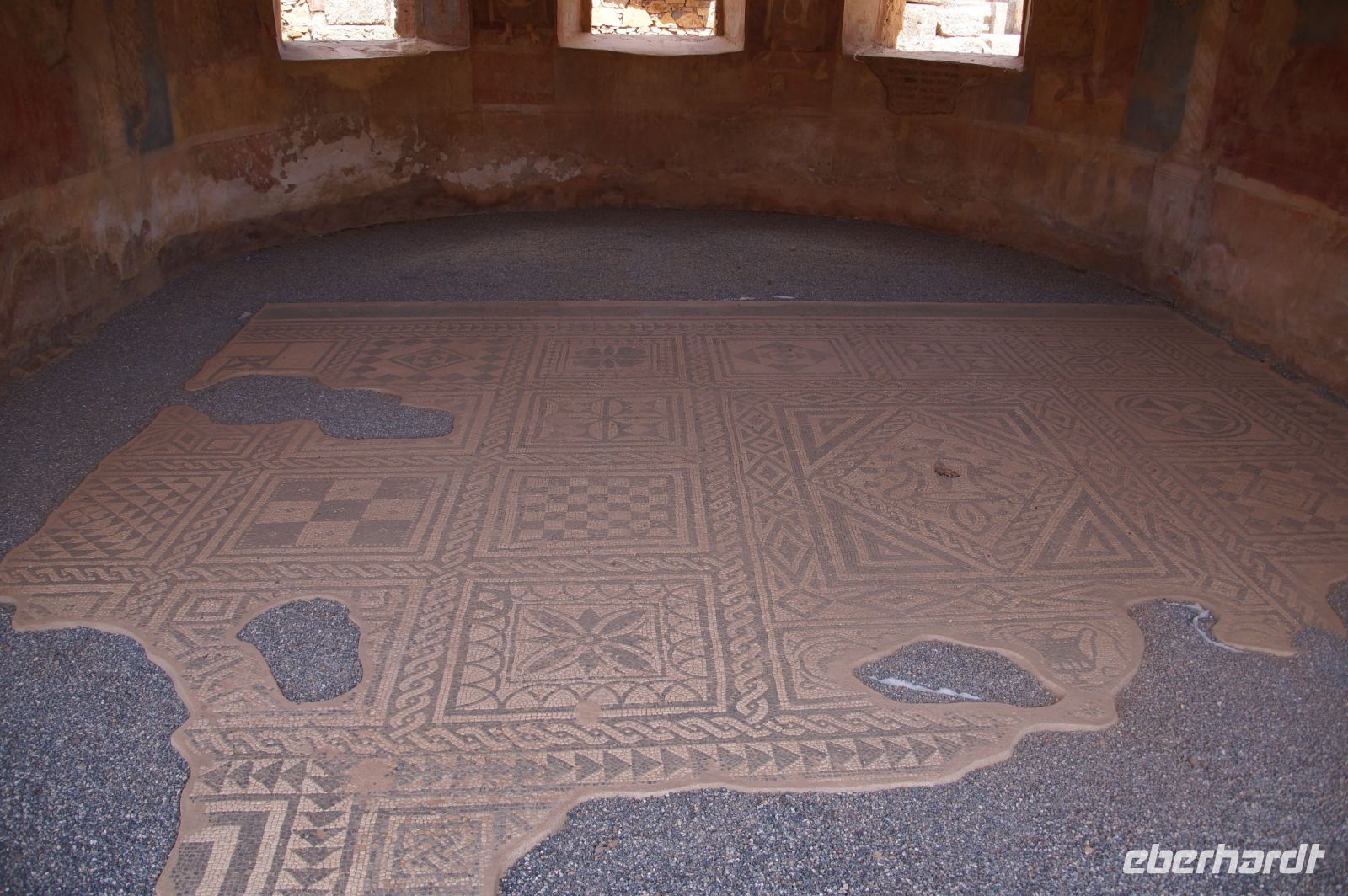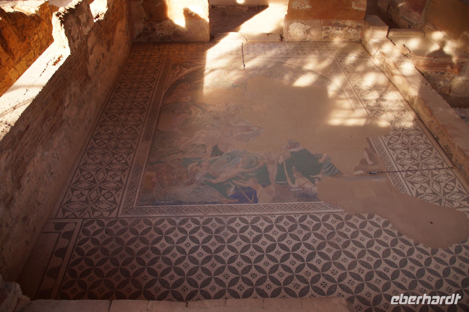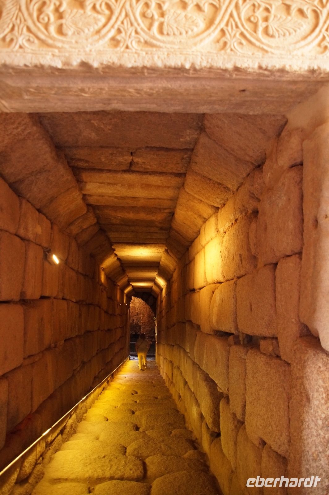 Hier stellt sich nun ein neues Problem: Wenn man den Diana-Tempel als Tempel für den Kaiserkult versteht, kann der Trajansbogen nicht den Eingang zum Provinzialforum darstellen, bzw, der Tempel für den Kaiserkult sollte auf dem Gelände des Provinzialforums gestanden haben. Hier beißen sich die Interpretationen. Mérida ist eine Stadt mit einer nun bereits über 2000jährigen Geschichte, in der durchgängig Menschen leben. Insofern ist es für die Archäologen schwer, ihre Thesen einfach mal zu überprüfen und den ganzen neumodischen Kram, der über den römischen Fundamenten steht, zu entfernen. Aber wir sahen eben auch, was passiert, wenn man heute in Mérida bauen möchte: Javier lud uns ein, mal etwas näher an ein großes, schmuckloses Haus mit dunklen Fenstern heranzutreten: Erst jetzt sahen wir, was sich hinter den Fenstern verbarg, wir wären gnadenlos daran vorbeigelaufen: Römische Fundamente lagen vor uns. Hier war eine Tiefgarage geplant worden - da muss man mit rechnen, dass solche "Überraschungen" auf einen zukommmen, wenn man in historischen Altstädten Großprojekte plant.
